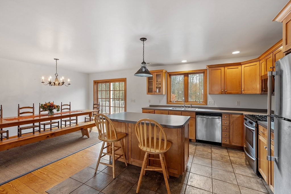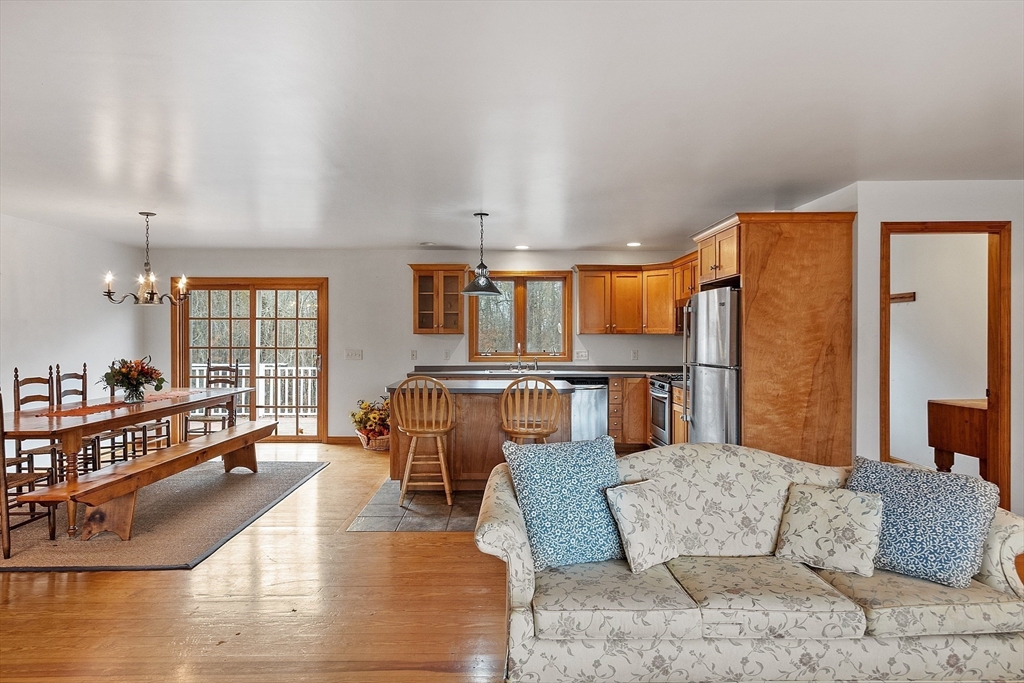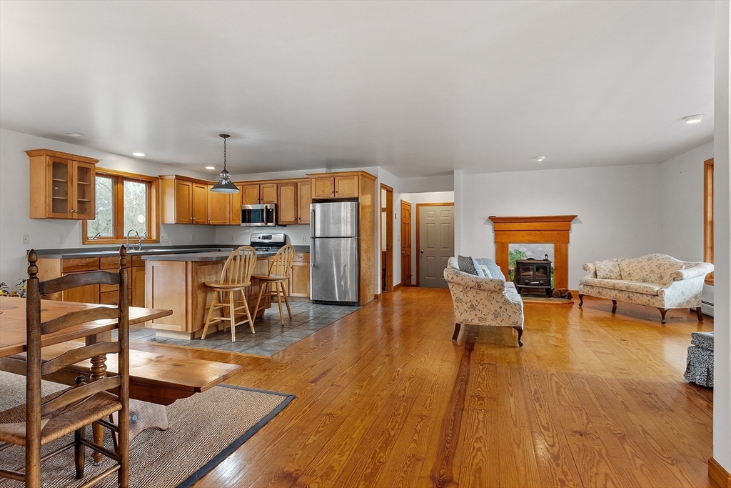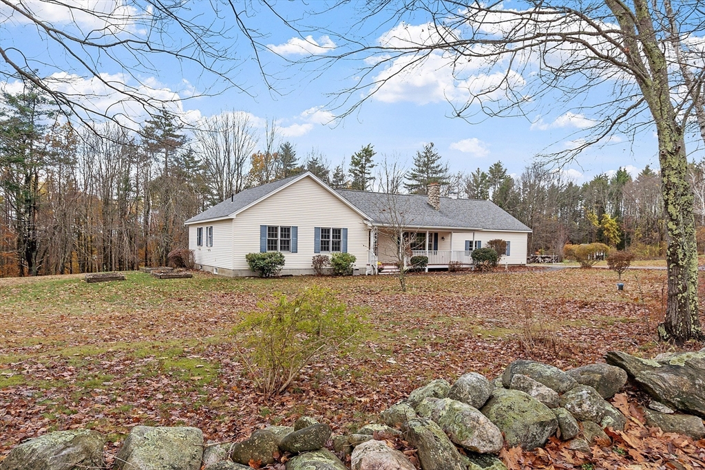 Welcome home to this beautifully designed ranch offering the ease of single-level living in a serene country setting near the Royalston line. This 3-bedroom, 2-bath home was thoughtfully crafted for comfort, accessibility, and modern living. The open floor plan flows seamlessly from the bright living area with hardwood floors to the spacious kitchen featuring a center island and pantry. Enjoy a large primary suite with a walk-in closet and direct deck access. Wide hallways, a handicap-accessible shower, and first-floor laundry make daily life simple and convenient. Set on over 2 private, level acres with a generous flat yard—perfect for gardening or relaxing outdoors. The attached 2-car insulated garage adds year-round ease. Equipped with whole house generator system. Just minutes to shopping, medical facilities, golf, and major routes, this is the ideal place to simplify and settle into your next chapter.