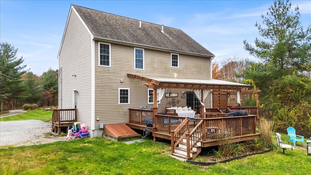 Tucked away on a semi-private 1.6-acre lot, this charming 3-bedroom, 1.5-bath Colonial offers both space and serenity. Step inside to a bright, open foyer with soaring ceilings that create an inviting sense of openness. The kitchen features granite countertops and ample cabinetry, flowing seamlessly into the dining area—perfect for everyday living and entertaining. Enjoy the outdoors on the expansive back deck complete with a relaxing hot tub, overlooking peaceful natural surroundings. Set back on a long, shared driveway with only one neighbor behind, this property offers a rare blend of privacy and convenience. A wonderful opportunity to make this well-loved home your own and add your personal touch! First showings at the OPEN HOUSE Sunday 11-9-2025 12:30pm -2:30pm.