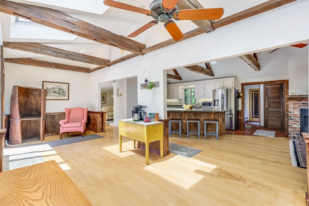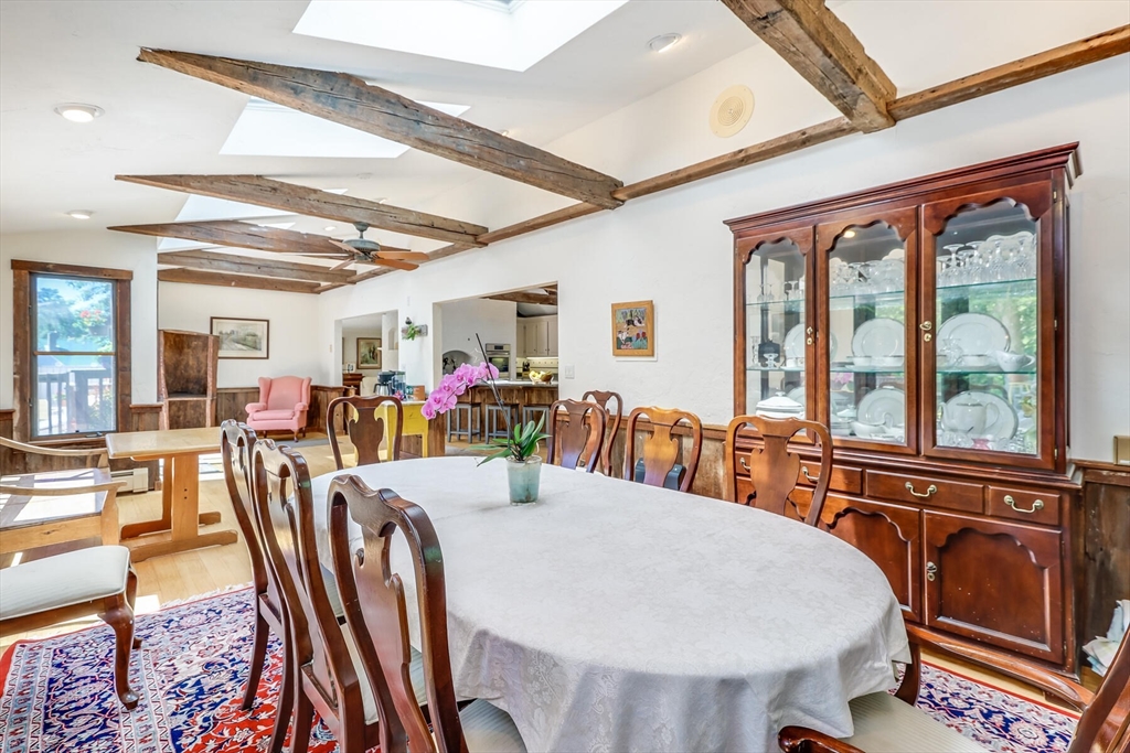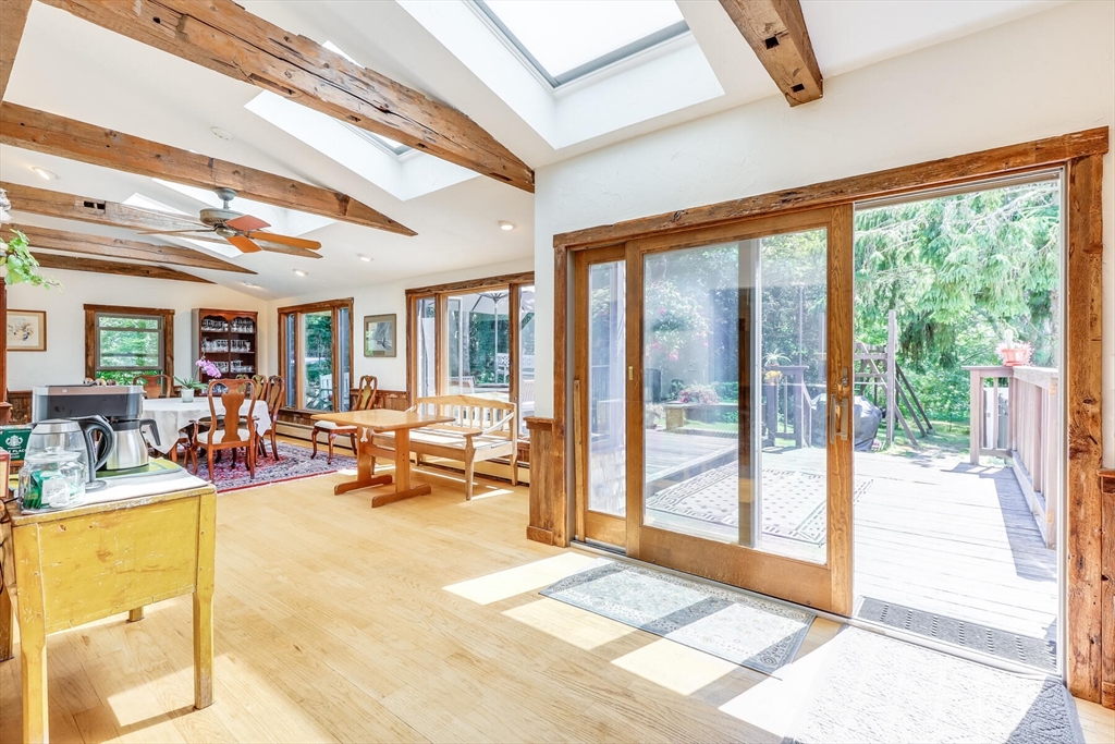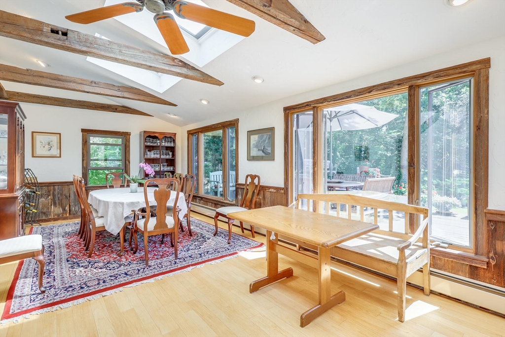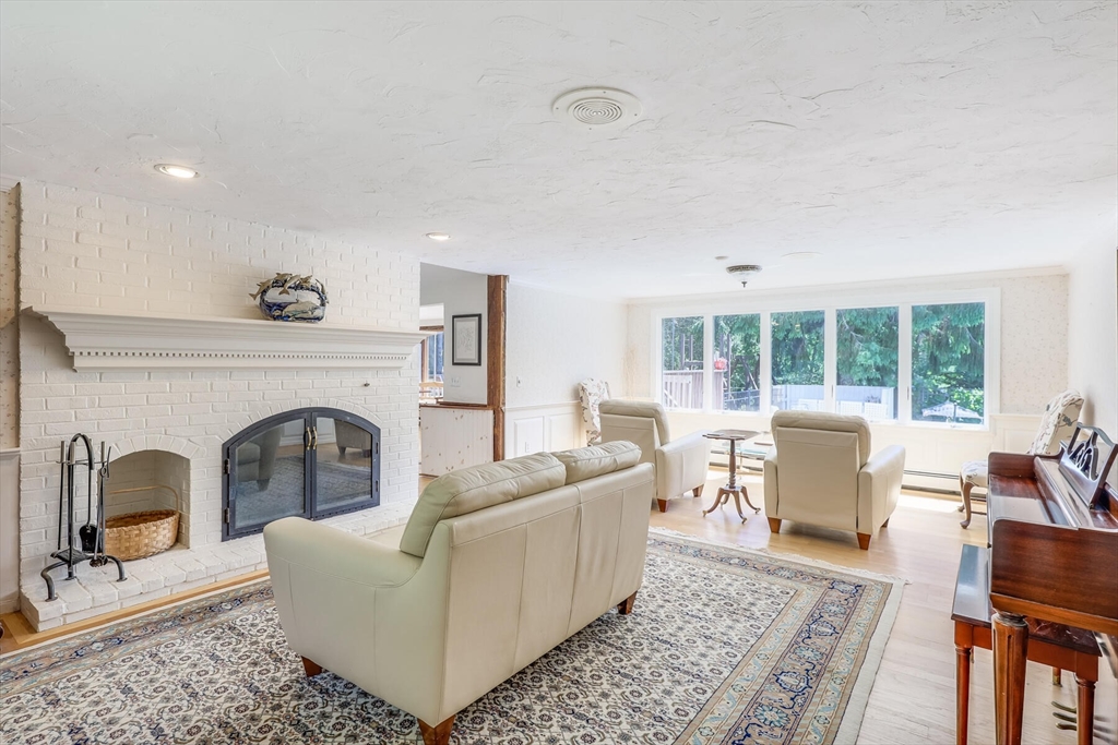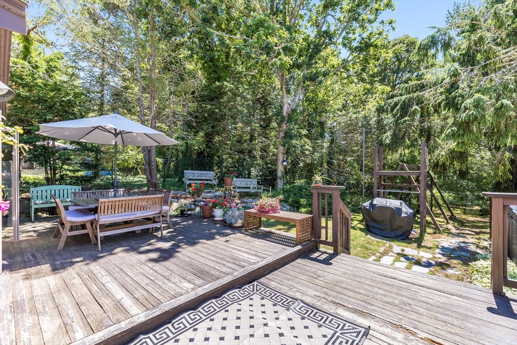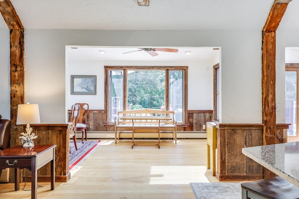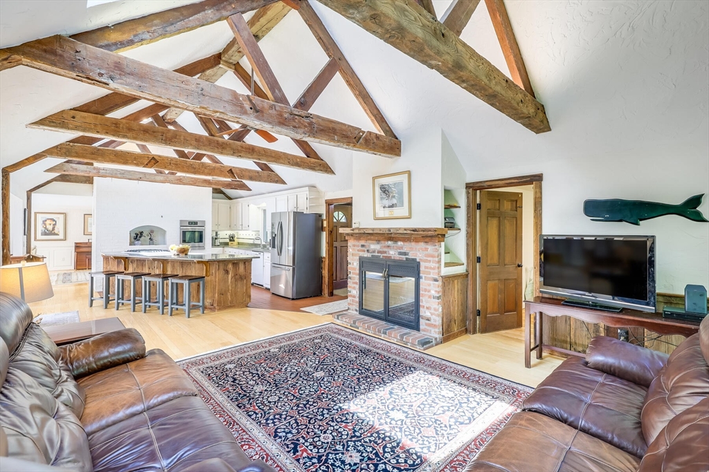 Discover this exceptional five-bedroom, six-full-bath residence perfectly situated on a large corner lot at the beginning of a desirable private neighborhood. Encompassing nearly an acre of lush plantings, mature trees, and beautifully landscaped gardens, this property offers privacy and comfort. Step inside to a thoughtfully designed floor plan featuring a first-floor primary suite, dedicated home office, and an inviting family room with a wood-burning fireplace and cathedral ceilings with an open-concept kitchen ideal for entertaining. Enjoy the best of indoor-outdoor living with a large salt water pool, expansive stone patio, and beautiful grounds, complete with a pool house and potting shed. Further amenities include an attached two-car garage, ample parking, finished lower level with a workshop, home gym, and abundant storage space. Multiple updates include a new heating system, roof, decking, shingles and trim. Located moments from downtown Harwich Port and Bank Street Beach.