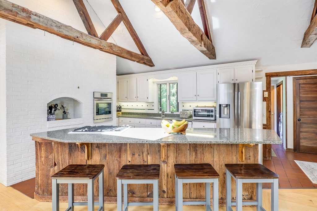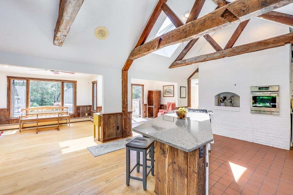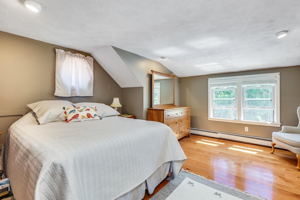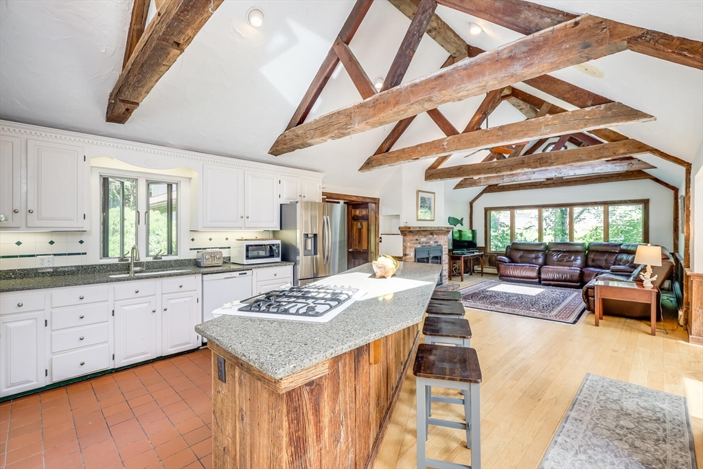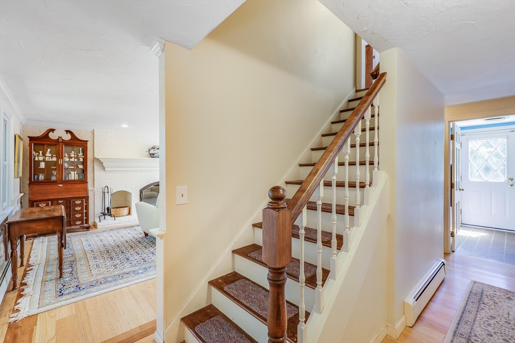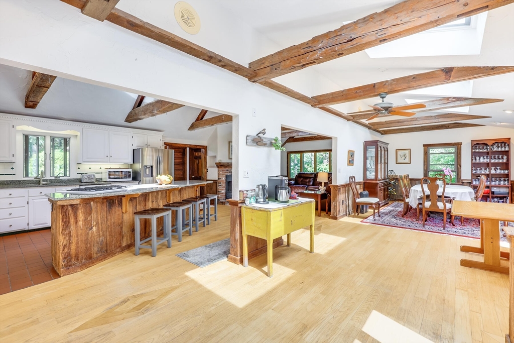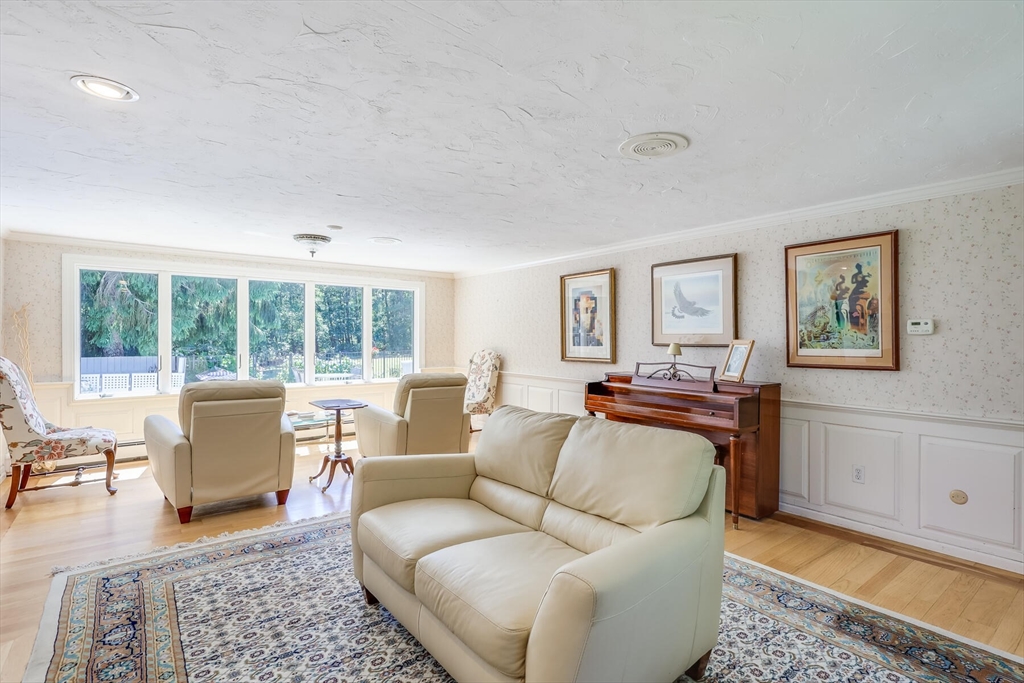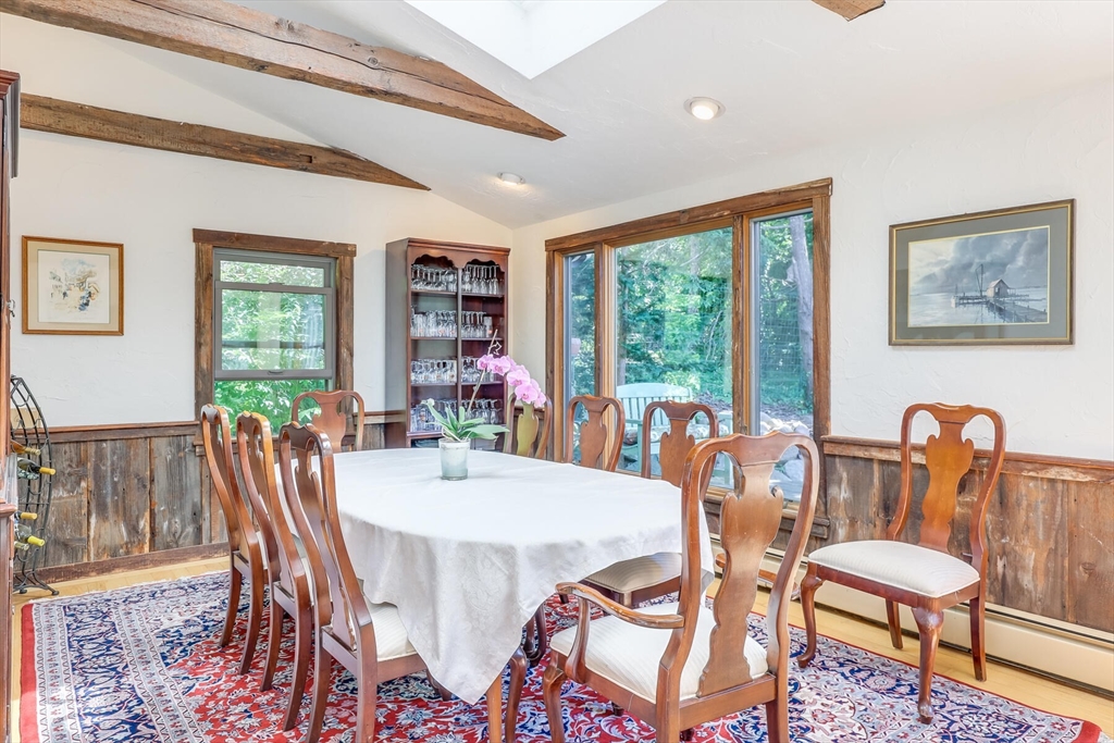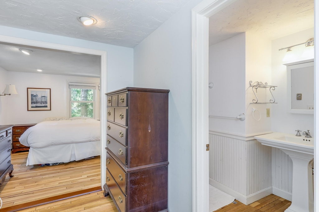 Discover this exceptional five-bedroom, six-full-bath residence perfectly situated on a large corner lot at the beginning of a desirable private neighborhood. Encompassing nearly an acre of lush plantings, mature trees, and beautifully landscaped gardens, this property offers privacy and comfort. Step inside to a thoughtfully designed floor plan featuring a first-floor primary suite, dedicated home office, and an inviting family room with a wood-burning fireplace and cathedral ceilings with an open-concept kitchen ideal for entertaining. Enjoy the best of indoor-outdoor living with a large salt water pool, expansive stone patio, and beautiful grounds, complete with a pool house and potting shed. Further amenities include an attached two-car garage, ample parking, finished lower level with a workshop, home gym, and abundant storage space. Multiple updates include a new heating system, roof, decking, shingles and trim. Located moments from downtown Harwich Port and Bank Street Beach.
