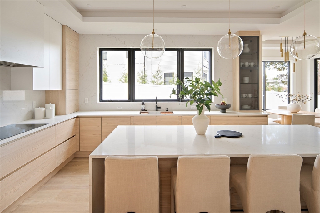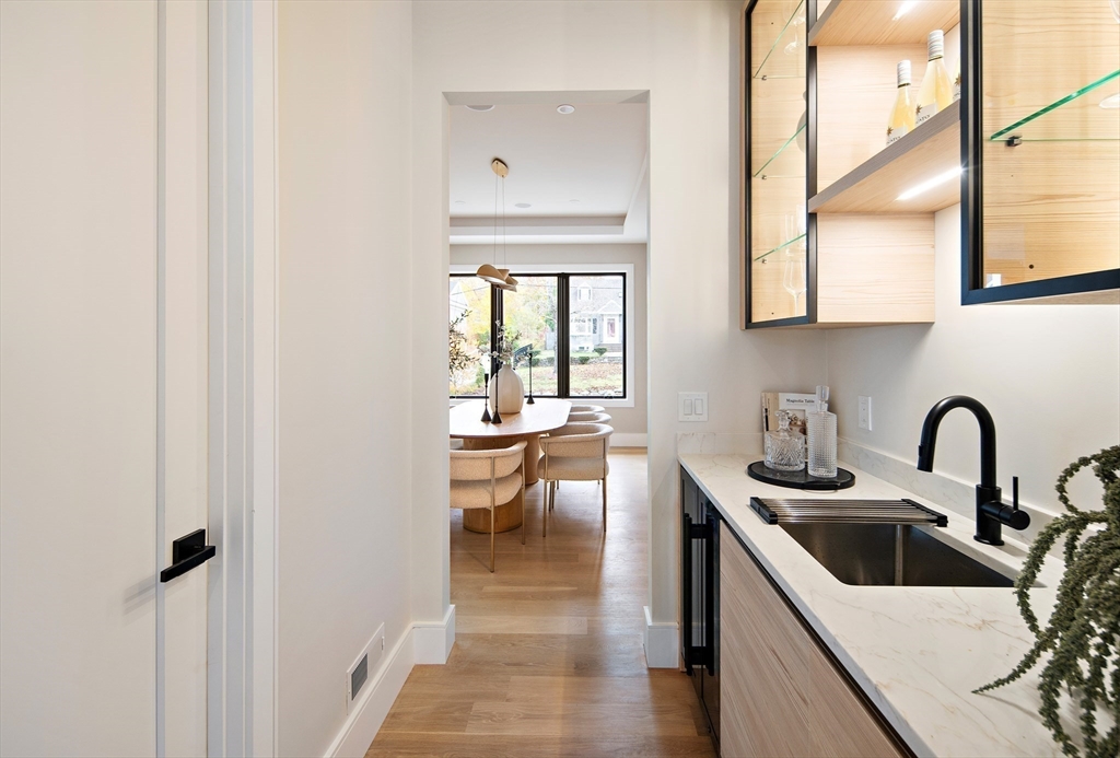 Nestled on a lush private corner lot at the end of a quiet dead-end street and within walking distance to Sunita Williams Elementary and Needham Heights, this stunning NEW CONSTRUCTION home blends modern sophistication with warmth and comfort. Designed for style and efficiency, it features high ceilings, oversized windows, and luxurious finishes throughout. A spacious mudroom from the two-car heated garage leads to the open-concept first floor with an office/guest room, elegant dining area, and chef’s kitchen with Italian cabinetry, Thermador appliances, and a large island. The breakfast nook opens to a cozy family room with fireplace and covered patio. Upstairs, the serene main suite offers a spa bath with soaking tub, heated floors, and custom closets. Three ensuite bedrooms and laundry complete this level, while the lower level offers a bedroom, bath, media room, and gym. The top floor includes a private suite and playroom, and a spacious backyard completes this exceptional home!