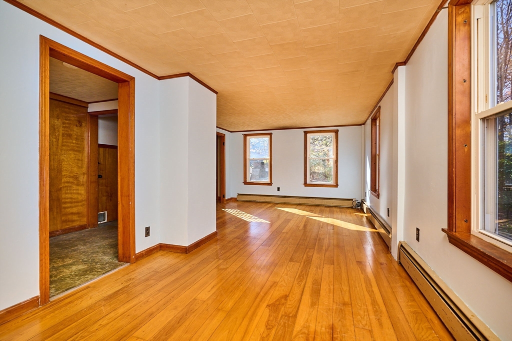Charming Haydenville propertywith an oversized heated garage and endless potential! Nestled in the heart of Haydenville, this inviting single-family home offers comfort, functionality, and room to grow. The sunny enclosed porch welcomes you into a bright eat-in kitchen with views of both the front and back yards. Enjoy first-floor laundry—no more trips to the basement! The living room has beautiful wood floors, and there are newer windows throughout. Upstairs, you’ll find two spacious bedrooms with beautiful wood floors and a convenient half bath. Step outside to a private backyard with Goshen stonework, a large fireplace/grill, and hot tub with privacy enclosure. The extra-large heated garage with lift is perfect for a tradesperson, hobbyist, or car enthusiast. The expansive front yard offers room for pets, play, gardening, or even an ADU. Ideally located close to the bike path and park, this property is a wonderful opportunity to create your ideal homestead in the village setting.