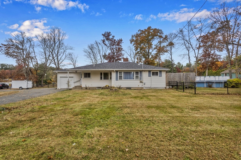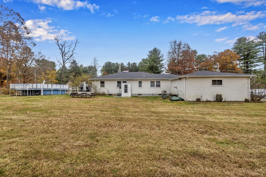 This 4-bedroom Ranch offers convenient single-level living with additional finished space in the lower level. The main floor features an open kitchen and dining area that flows easily to the living room, where a pellet stove adds both warmth and efficiency. The lower level includes a family room with a wood-burning fireplace, a full bath, and an extra room that works well for office, fitness, or guest use. The oversized detached garage provides ample storage or workspace. Outdoor features include a large deck and an above-ground pool ideal for relaxing or entertaining. Located in Belchertown with easy access to local shops, services, and major routes, this property offers comfort and flexibility in a desirable location