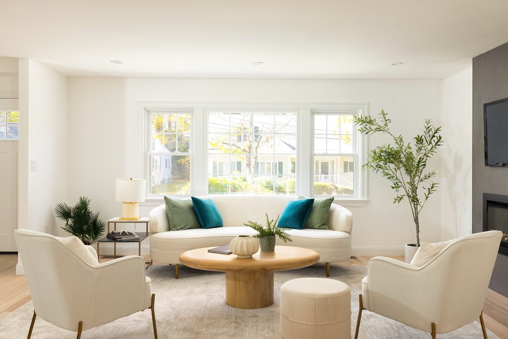 In South Newton's Chestnut Hill around the corner from Skyline Park, this home has just undergone a major renovation including new systems, roof, floors, kitchen and bathrooms. This location provides easy access to shopping, dining and grocery stores, along with convenience to Longwood Medical Area. A spacious living room welcomes you to the home with a cozy fireplace. The living room is fully open to the gorgeous kitchen with quartz counters and a large island with a breakfast bar, plus a nice dining area that leads to the sunny family room with three walls of windows & a door to the mudroom with access to the garage and yard. Outside, find a level yard with plenty of space. A private hallway leads to the first-floor primary suite with a dressing room & luxurious bathroom. A powder room completes this level. Upstairs there are two good-sized bedrooms, the second full bathroom & cedar closet. The finished lower level has the fourth bedroom, third full bathroom, 2 bonus rooms & laundry