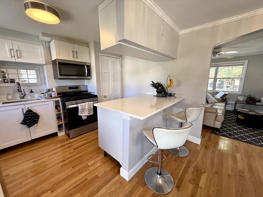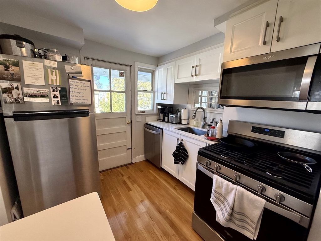 Available December 1st! Spacious 3 bedroom, 1 bathroom townhouse on a desirable Watertown street right on the Belmont line. This well-laid-out home features hardwood floors throughout and a recently renovated kitchen with high-end range and peninsula with bar seating - perfect for casual meals or entertaining. The first floor offers a good-sized living room and dining room, while the second floor houses all three bedrooms and an updated bathroom. The large finished basement provides excellent flex space - use it as a second living area, playroom, or office. In-unit washer and dryer adds major convenience. Outside, you'll find a fantastic back deck ideal for grilling and hanging out, plus 2 parking spaces. Great location on the Watertown-Belmont border puts you close to shops, restaurants, and easy access to major routes. No pets permitted. Required up-front: First month's rent and security deposit.