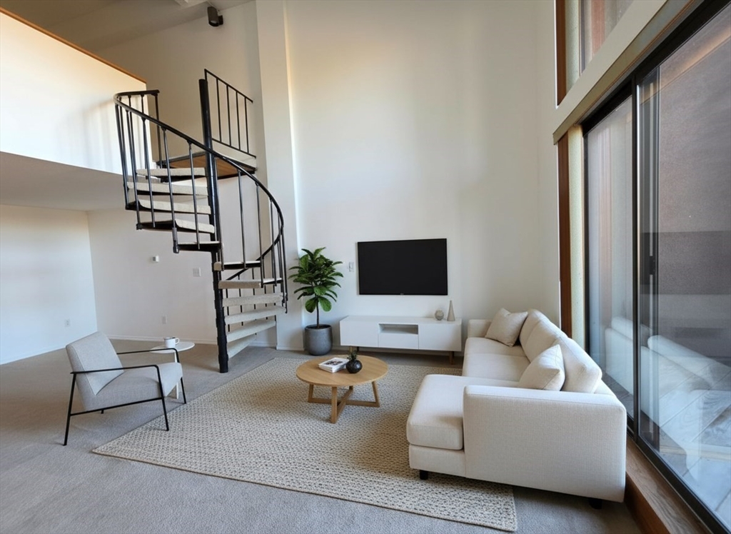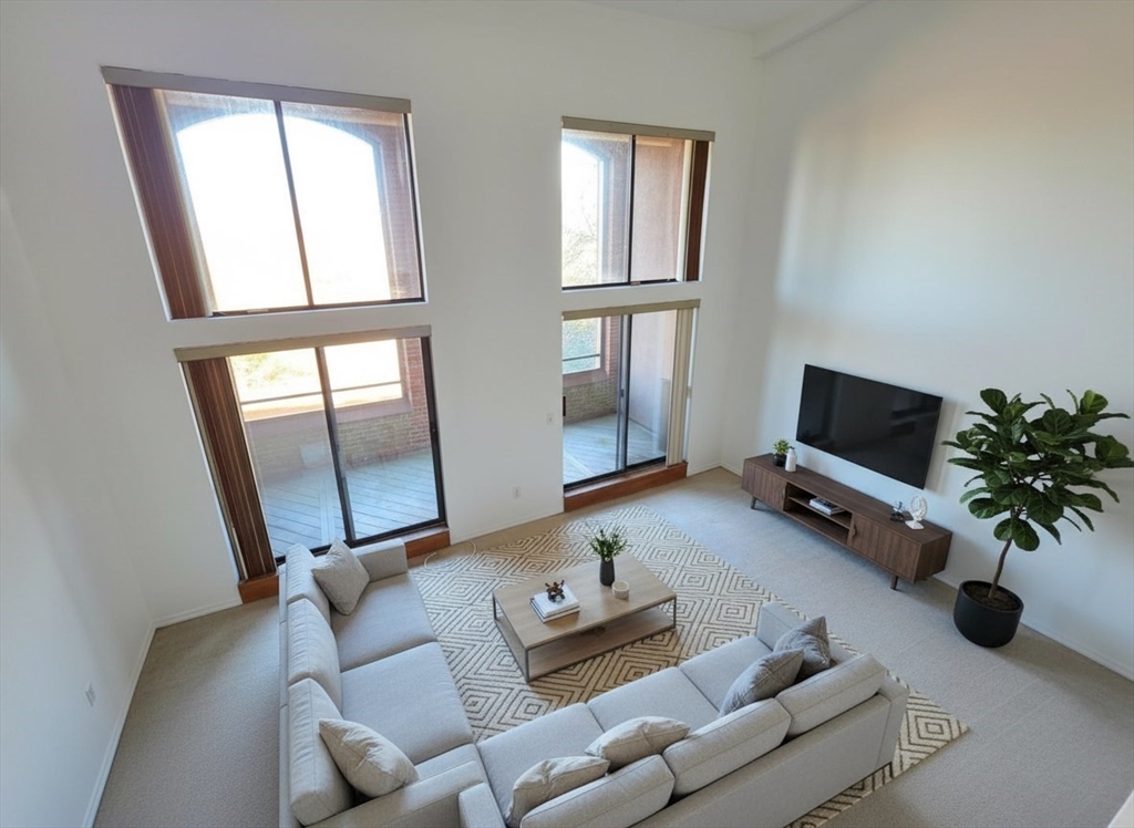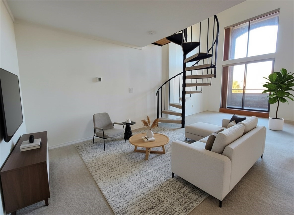 Located at 96 Old Colony Ave U:318, Taunton, MA, This airy 3rd-floor 2BR/2BA loft sits on the quiet BACK side, overlooking the Taunton River and a lush tree-lined view. Step inside to a stunning 2-story open floor plan with spacious living and dining areas, highlighted by floor-to-ceiling windows and sliders leading to your private balcony. Upstairs via the spiral staircase is a loft bedroom or office, plus the main bedroom, full bath, and NEW washer/dryer. Downstairs, enjoy a cabinet-packed kitchen with NEW stainless appliances, another full bath, and a large walk-in closet. Added perks: NEW HVAC, fresh paint, racquetball and tennis courts, saltwater pool, fitness center, and easy access to major routes, shops, and restaurants. Don’t miss it!