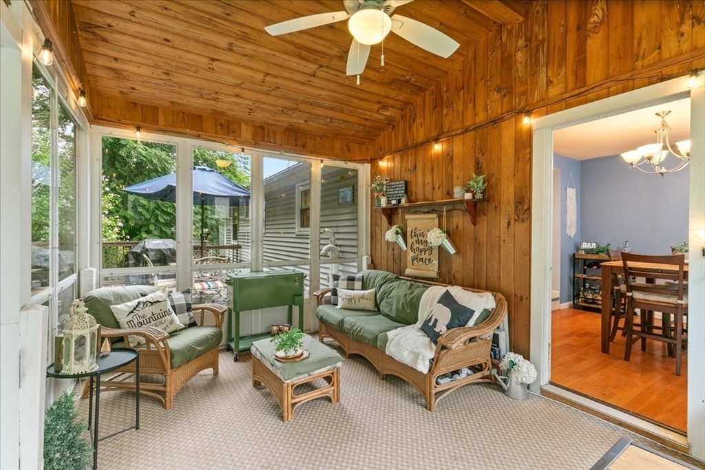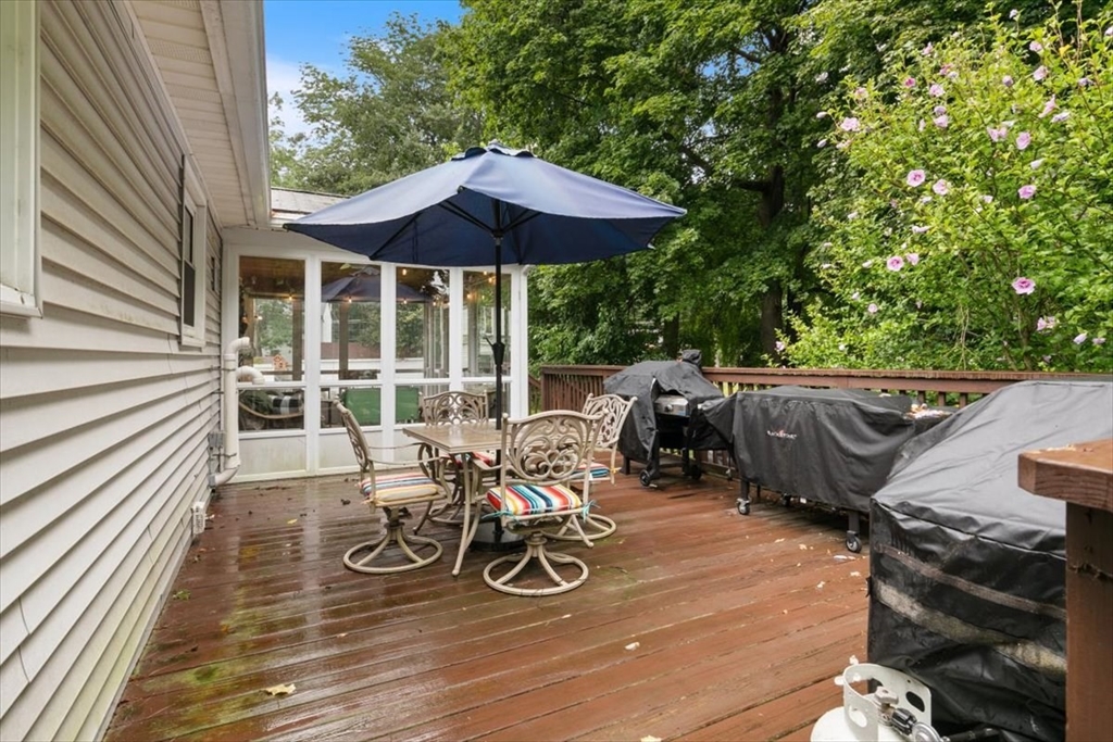 Welcome to this charming ranch that feels like home the moment you arrive. Offering two comfortable bedrooms and 1.5 baths, this lovingly maintained property has all the right touches. Hardwood floors add warmth and character throughout, while the inviting three-season room is the perfect spot to enjoy morning coffee or an afternoon book. The finished lower level provides bonus living space, whether for a cozy den, playroom, or home office. Step outside to a large deck overlooking a generous yard ideal for gatherings or quiet evenings under the stars. With a one car garage and a friendly neighborhood setting, this home blends comfort, convenience, and charm in every corner.