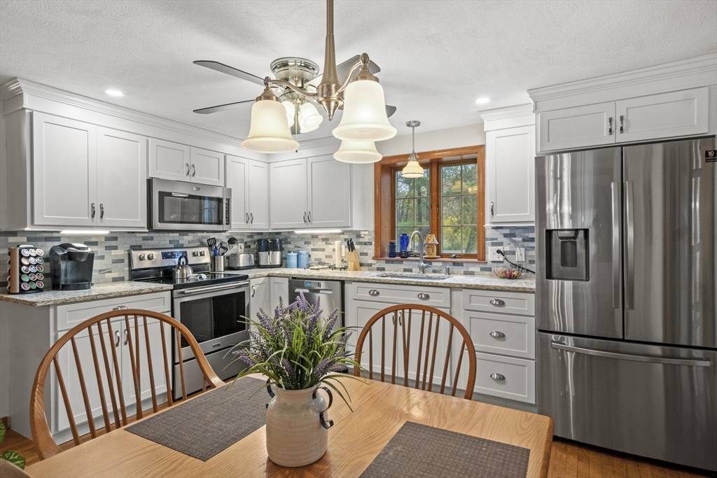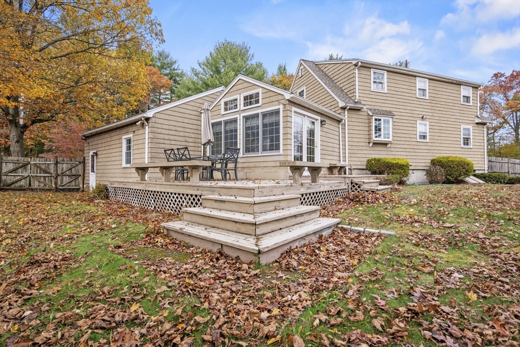 Welcome home! Move right into this beautifully maintained 3-bedroom, 2-bath Cape offering over 1,600 sq ft of comfortable living space. The inviting fireplaced living room with a large picture window and hardwood floors flows seamlessly into the dining room, featuring charming custom built-ins. The updated eat-in kitchen boasts crisp white cabinets, granite countertops, and stainless-steel appliances. A sunken family room with a soaring vaulted ceiling provides the perfect gathering space with access to the deck and backyard. Upstairs, you’ll find spacious bedrooms including a primary suite with a full bath and walk-in closet. The partially finished lower level offers additional living space to be finished to your liking and a dedicated laundry room. Outside, enjoy a fenced-in yard with a shed and plenty of room for outdoor fun, plus a 2-car attached garage with storage above. Conveniently located near local amenities, this lovingly cared-for home is ready for you to move right in!