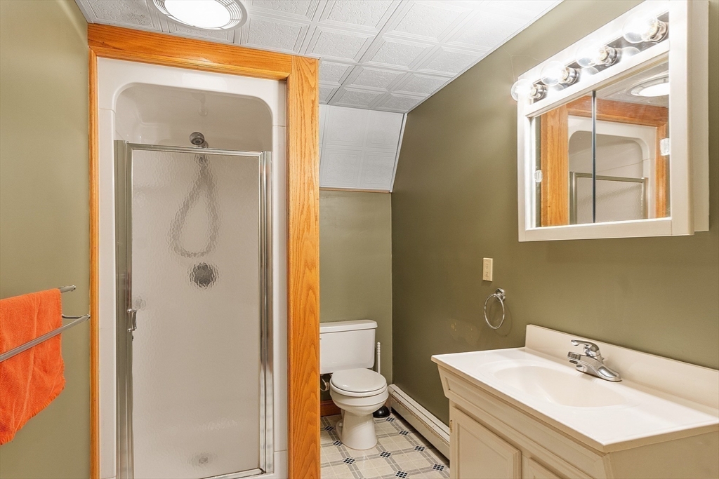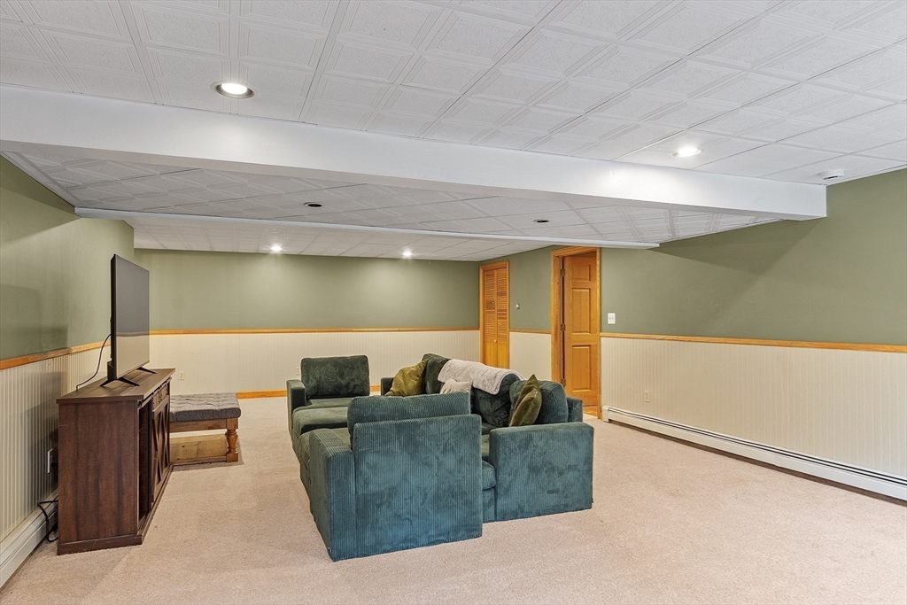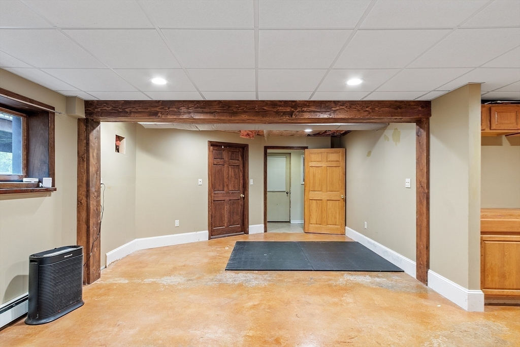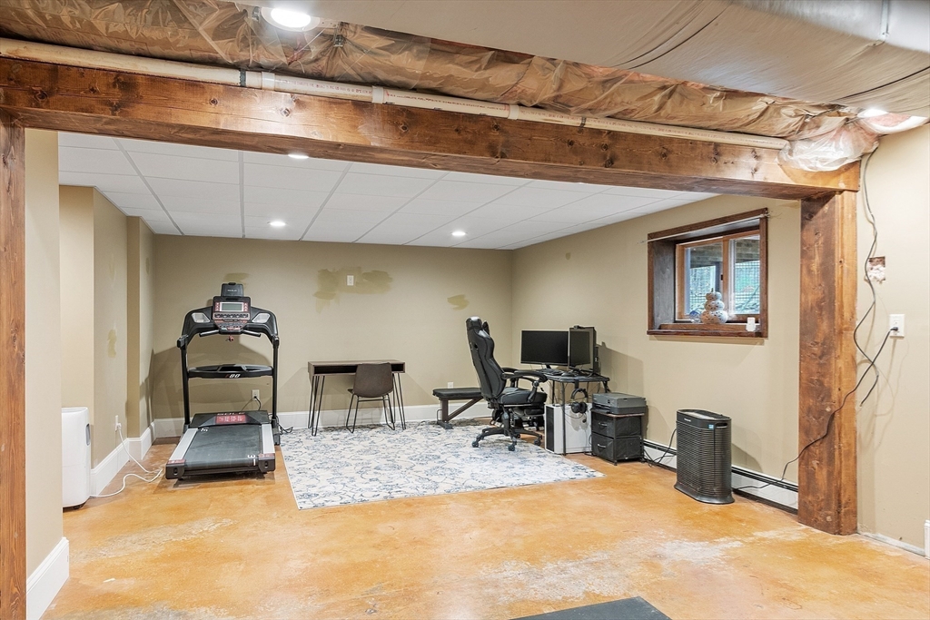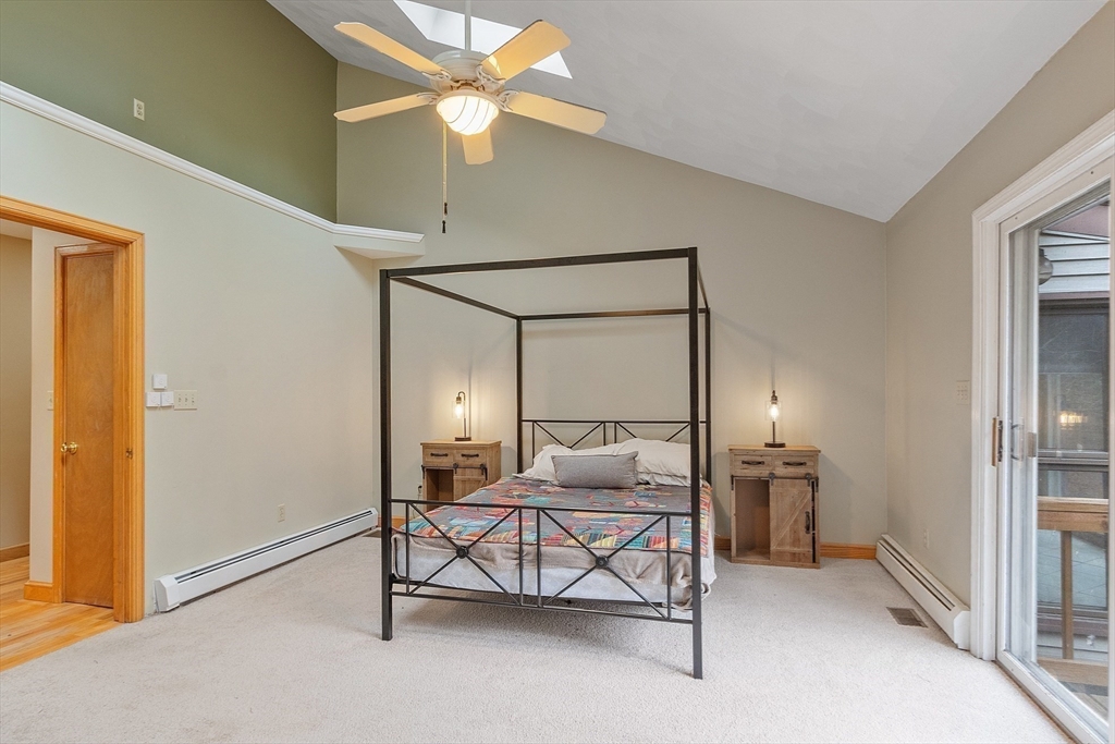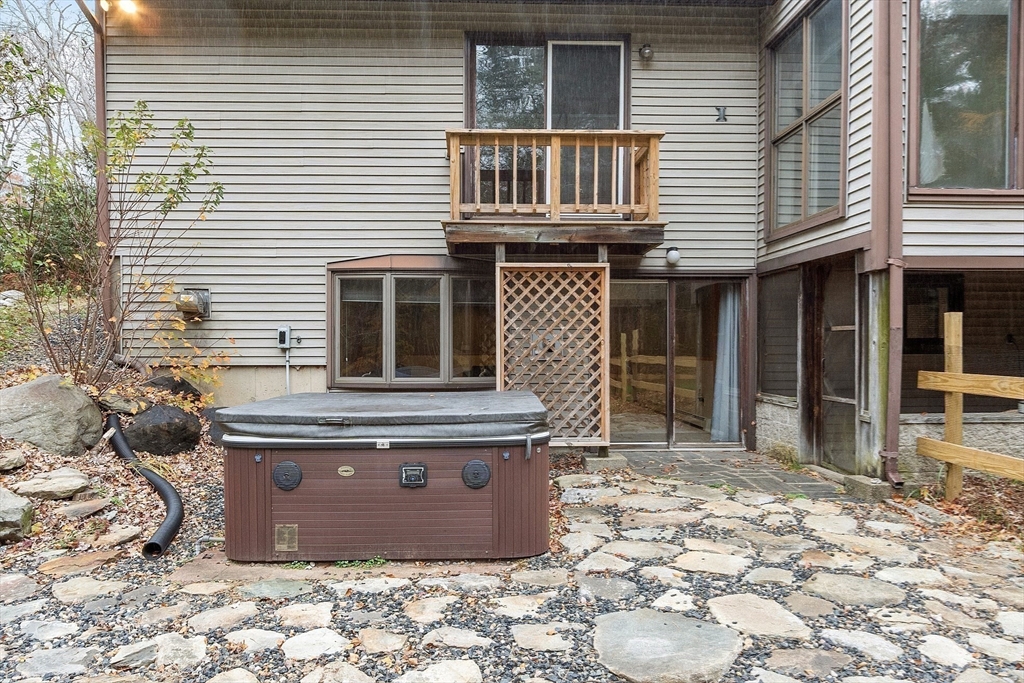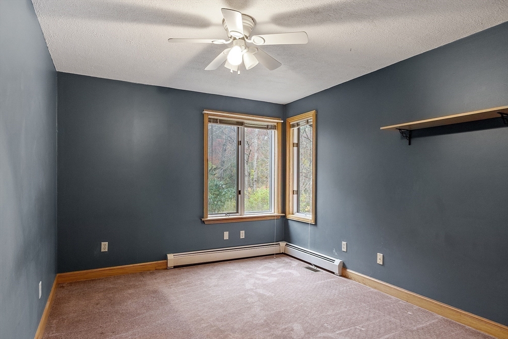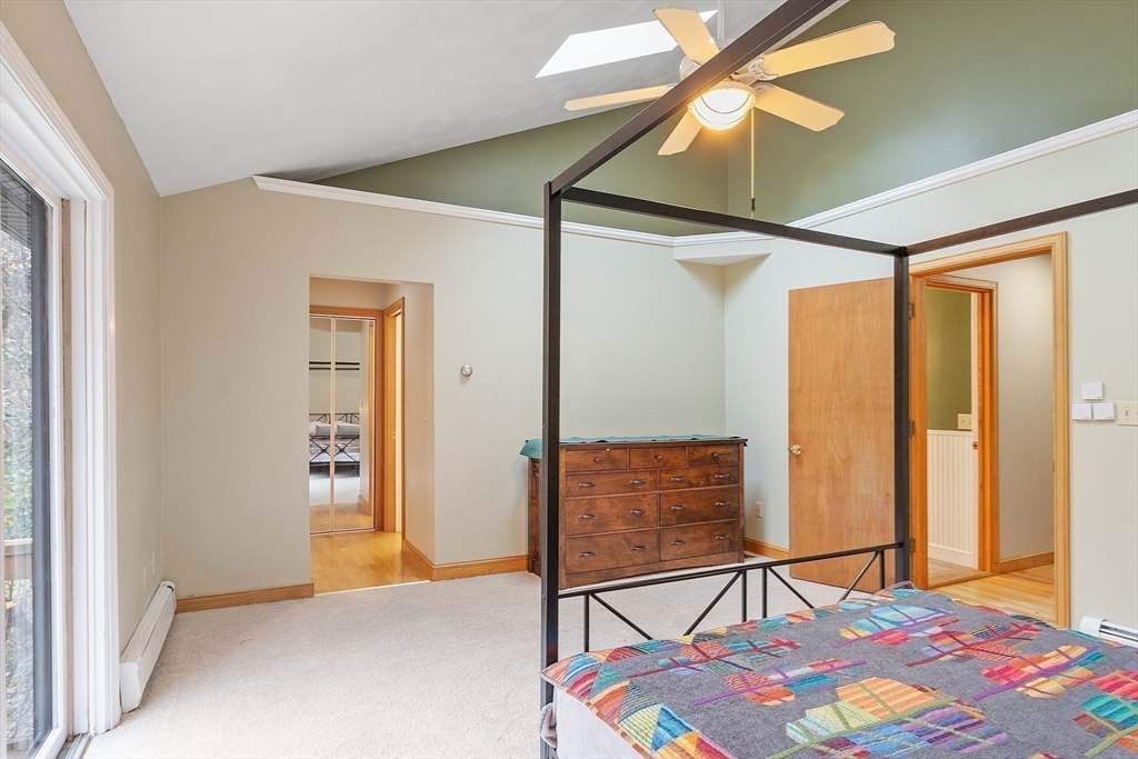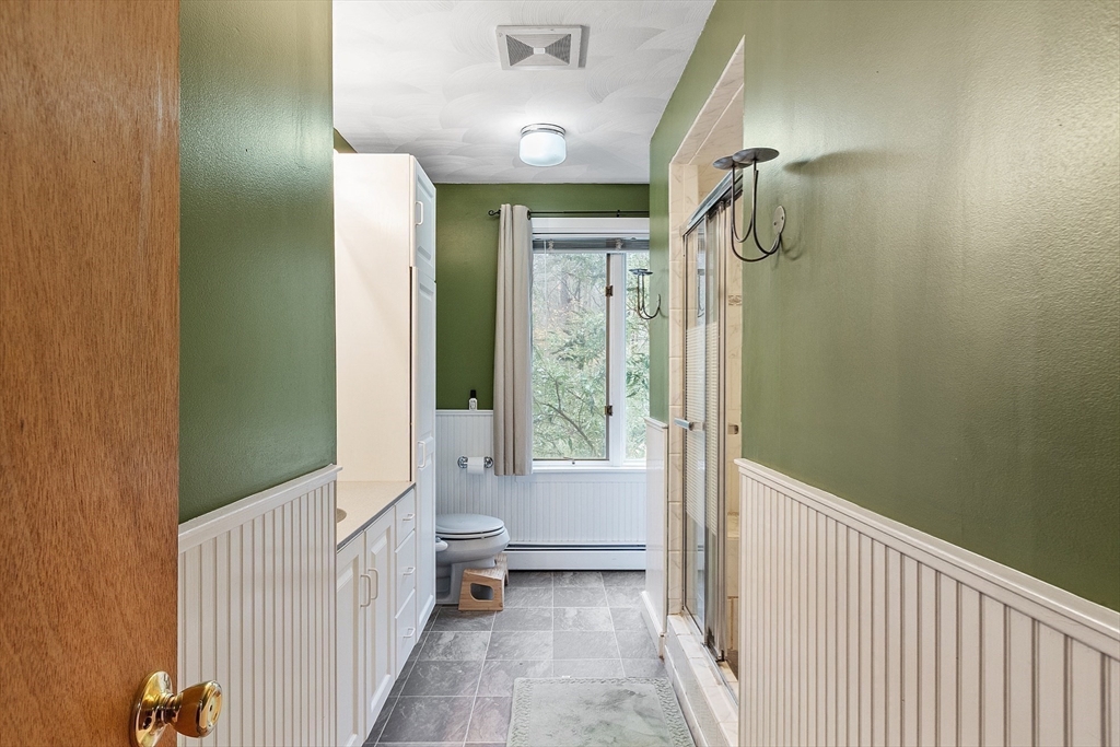 Discover this contemporary ranch set on 6.7 wooded acres with a circular drive, wraparound deck, and oversized garage. Inside, a flexible layout offers a cozy den or dining area with a wood stove and a bright living room with a bow window and fireplace overlooking the front yard.The large eat-in kitchen is the heart of the home, highlighted by solar skylights and direct access to a stunning sunroom that stretches across the back of the house, with views of the expansive backyard with groomed trails. The primary suite includes a full bath, solar skylights, and a balcony, with two additional bedrooms and another full bath on the same level. The partially finished walkout basement features a pellet stove, full bath, and a flexible space that can be used as a play room or office, plus plenty of storage. Enjoy the large fenced area for gardening, small livestock, or outdoor play embracing privacy, nature, and endless possibilities.