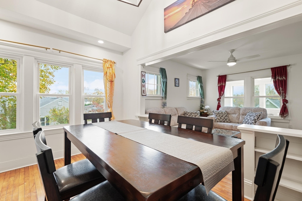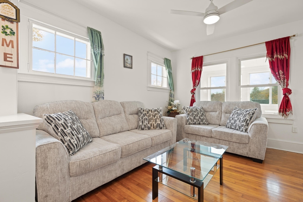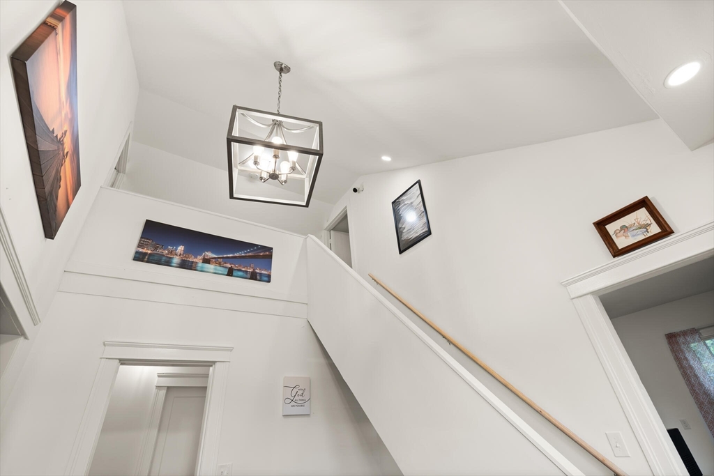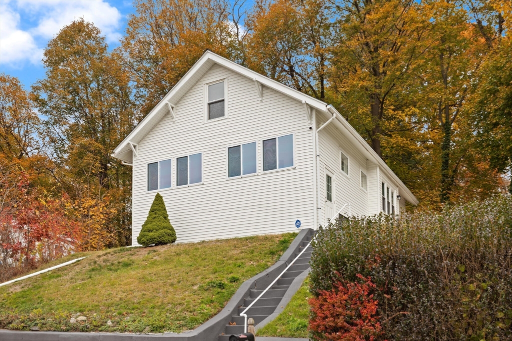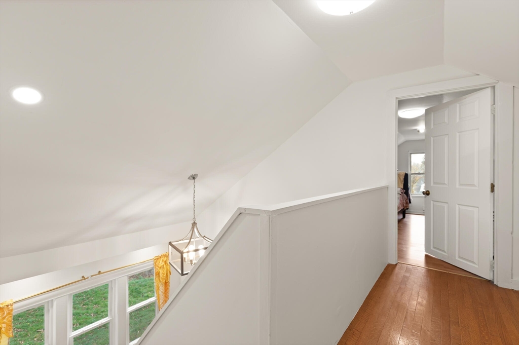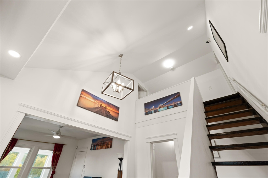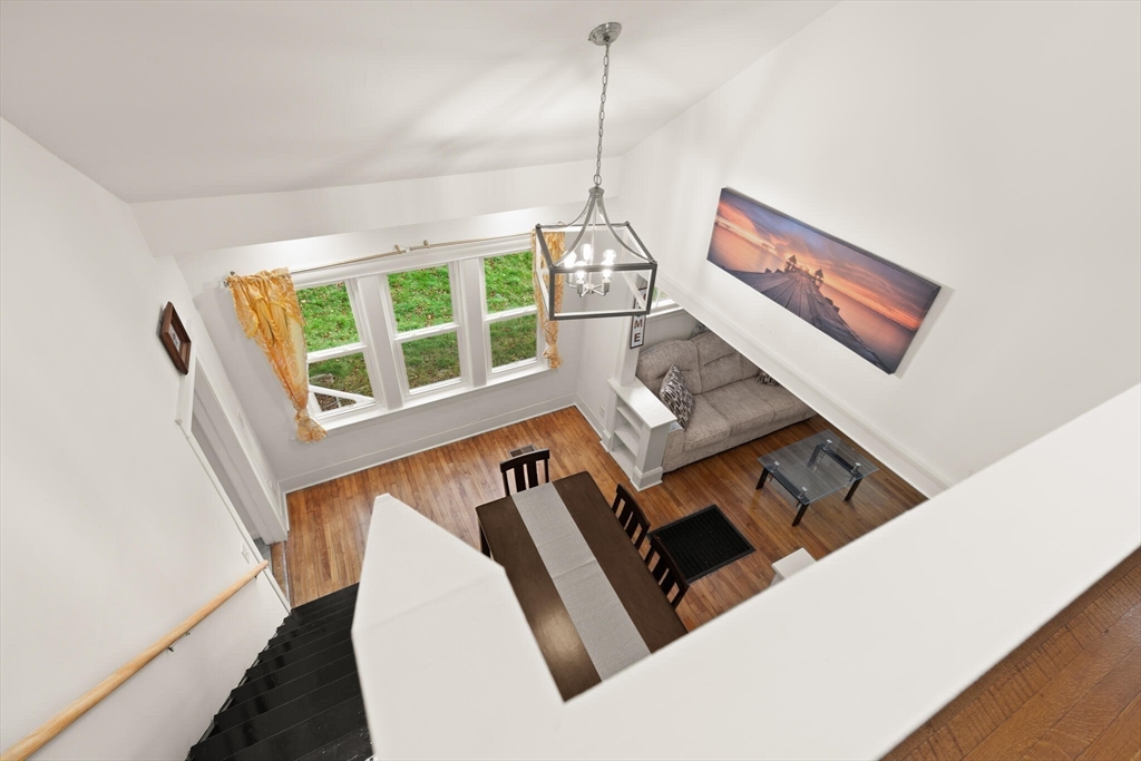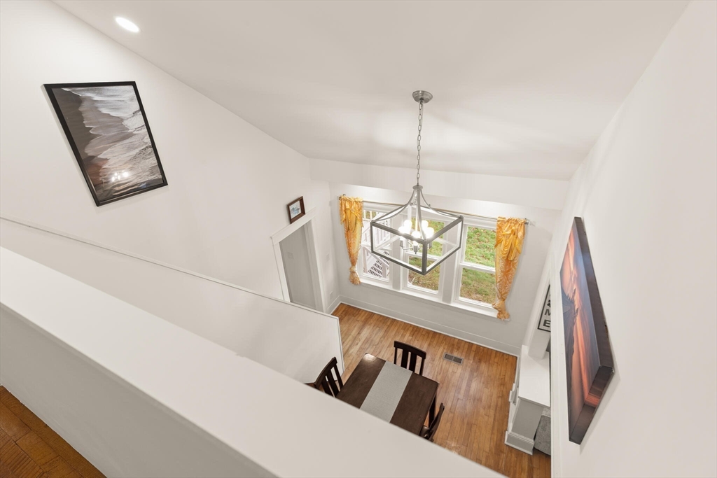 Discover breathtaking views from this remarkable home blending modern comfort with timeless charm. Inside, dramatic vaulted ceilings rise above a central balcony connecting two spacious first-floor bedrooms, creating a grand sense of openness. The updated kitchen features white shaker cabinets, new appliances, and sparkling quartz countertops. A refreshed bathroom with a tiled tub and gleaming hardwood floors completes the main level. Upstairs offers two additional bedrooms and ample storage. Vinyl replacement windows fill the home with natural light, while the unfinished basement provides a laundry area and second full bathroom plus partially finished rooms there is potential for added living space. Outside, a large porch invites you to relax or entertain while enjoying stunning year-round views. Off-street parking for two cars adds convenience. Whether you seek peaceful solitude or a stylish space to host, this home promises comfort, charm, and panoramic beauty.