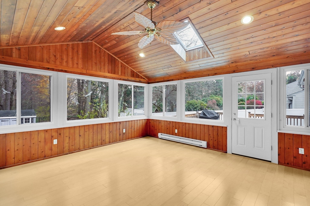 Welcome to this charming ranch-style home! Offering 3 bedrooms and 1.5 bathrooms, this beautifully updated home provides the convenience of one-floor living paired with modern comfort and style. Step inside to find a bright and open layout with hardwood flooring throughout. The primary bedroom features its own private half bath and a spacious walk-in closet. The heart of the home is the stunning heated sunroom right off the kitchen, boasting vaulted ceilings and abundant natural light...perfect for morning coffee, relaxing evenings, or year-round entertaining. Enjoy the outdoors in your fully fenced-in backyard complete with a brand-new deck, offering the perfect space for gatherings, grilling, and unwinding in privacy. The attached 2-car garage includes a brand-new garage door for convenience and peace of mind. The basement includes a partially finished bonus room with incredible potential to finish remainder and add even more living space! Schedule your showing today.