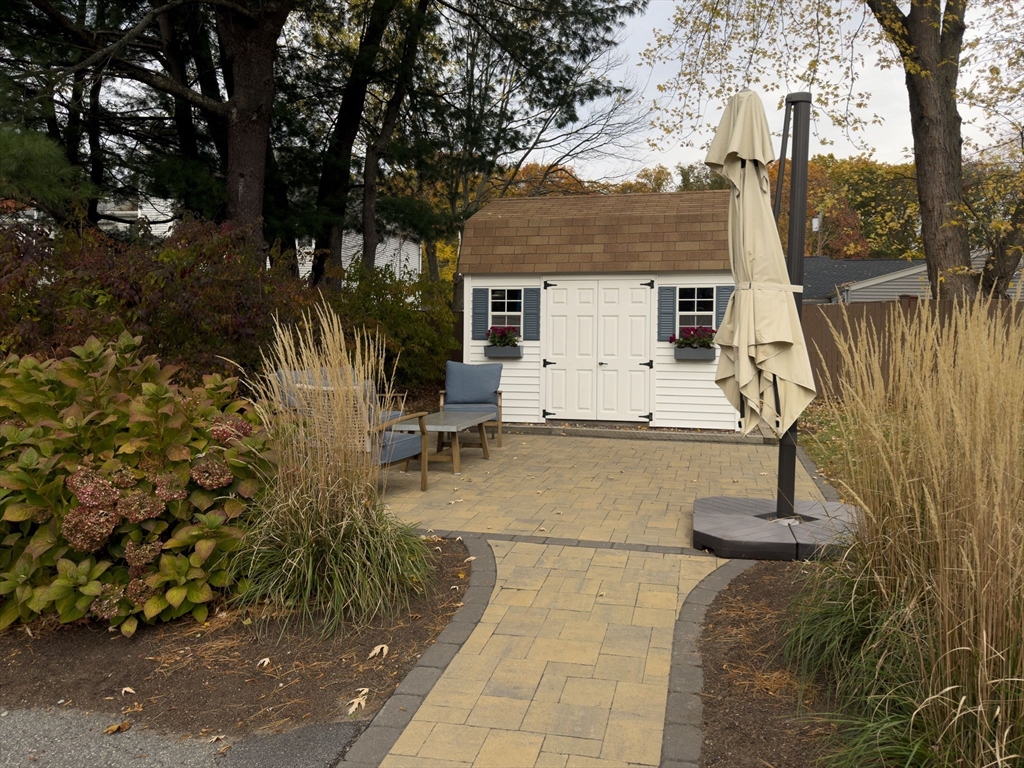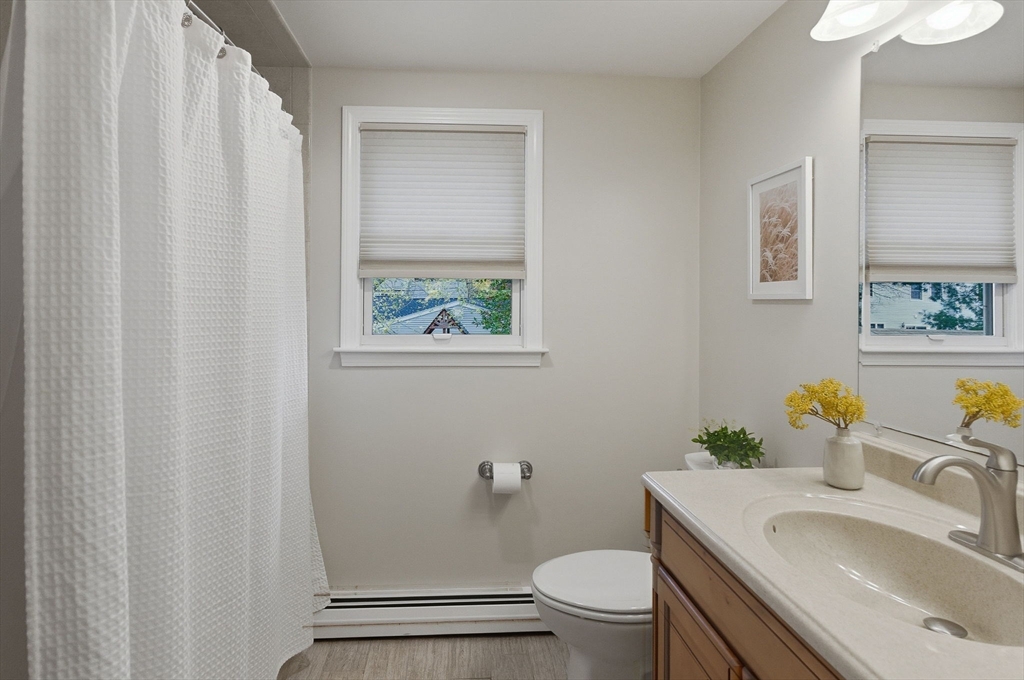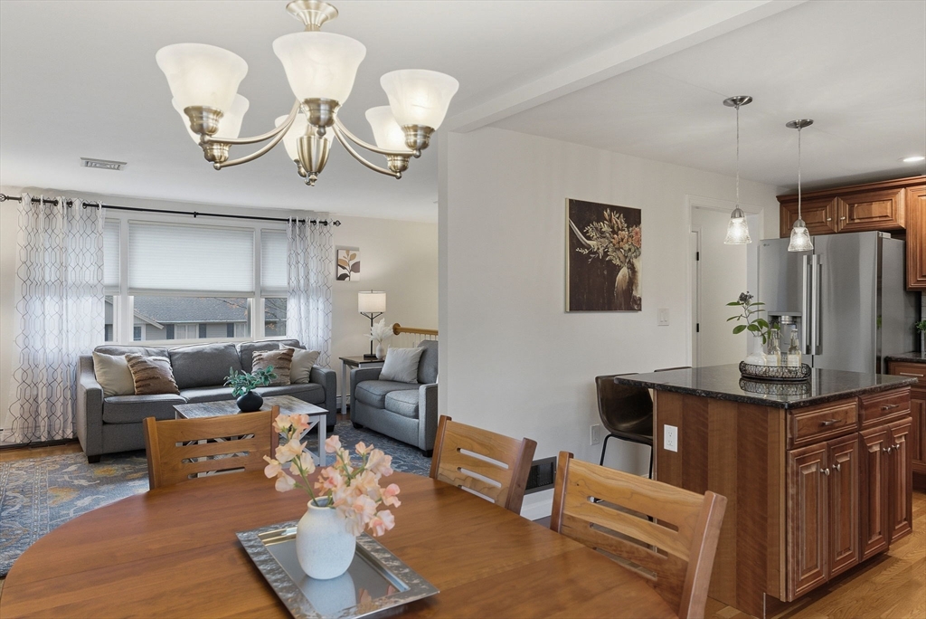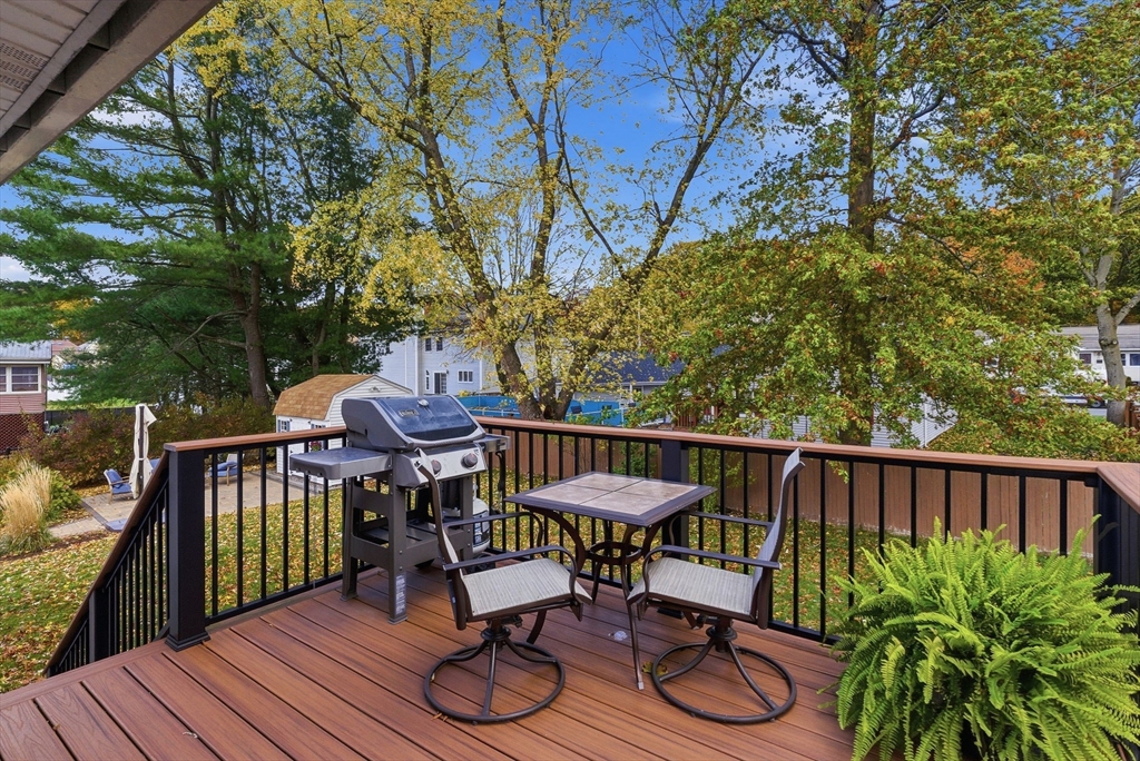 Impeccably maintained split entry in sought-after Robin Hood! This 1,892 sq ft home shines with smart updates and thoughtful layout. Main level features gleaming hardwood floors throughout three bedrooms, updated full bath, and open-concept kitchen flowing into dining area. Kitchen impresses with wood cabinetry, granite counters, center island, and stainless appliances—perfect for casual meals or entertaining. Step outside to a deck overlooking a flat, .23-acre yard. Lower level offers versatile family room, home office space, convenient laundry, full bath, and fourth bedroom—ideal for guests or teens seeking privacy. Outdoor living shines with newer Reeds Ferry shed featuring power for entertainment plus private patio. Roof, boiler, and central air all updated in 2009. One-car garage adds convenience. Sidewalk-lined streets connect throughout this friendly neighborhood. Tucked between Routes 93 and 95 for easy Boston metro access! Clean, updated, and move-in ready!