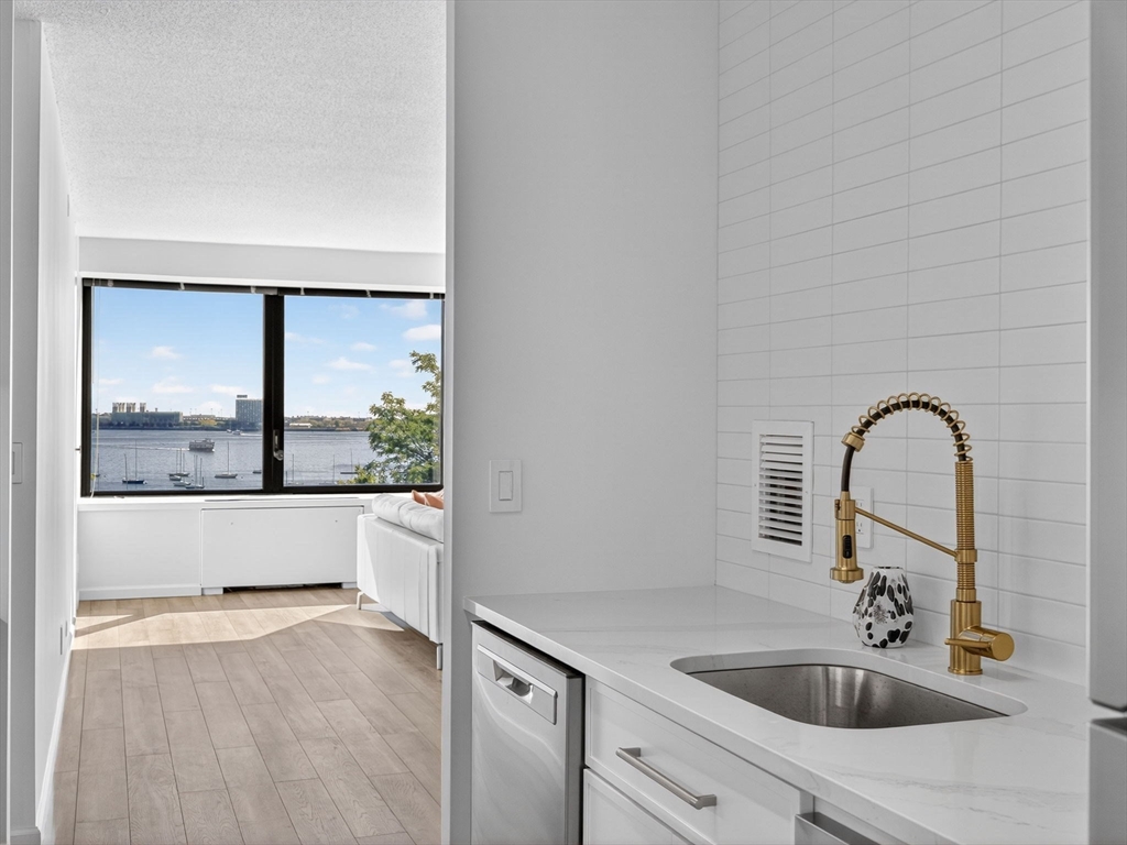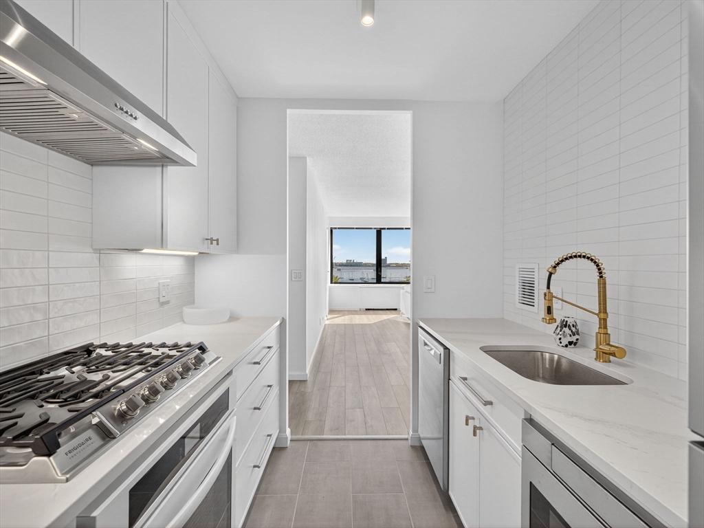 6 month FURNISHED RENTAL. Direct WATER views from this stunning, beautifully renovated 1600+ sf rarely available F unit, two bedroom, 2.5 bath home. A bright and airy, large corner living room with a wall of windows overlooking Boston Harbor, the airport and the ocean beyond. Private balcony with southern views of the pool. New designer kitchen with gas cooking, 2 new luxurioius marble full bathrooms and new powder room off the entry foyer. Hardwood through out. Both bedrooms are King sized, laundry in unit, abundance of storage, A real gem on Boston's historic Waterfront. Sit in your living room and enjoy sparkling morning sun and the reflection of evening lights over Boston Harbor. All in a luxury, full-service, concierge building offering city living at its best. Seasonal harbor side in ground heated pool and BBQ. Rental parking available. By appointment.