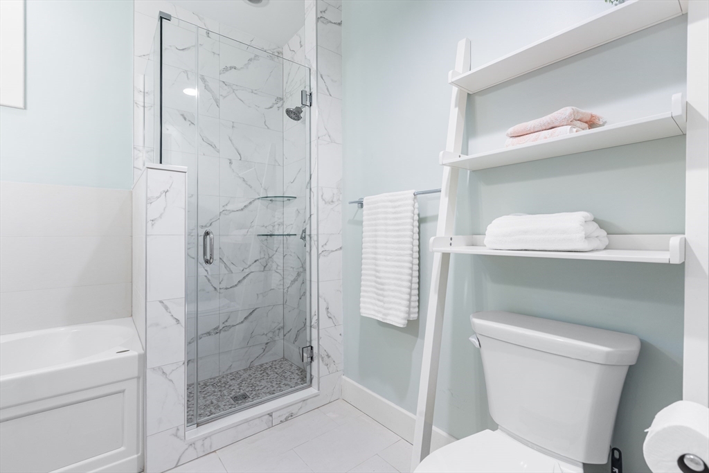 Bright, modern, and perfectly located — this sun-filled 2 bed, 2 bath duplex puts the best of South Boston right at your doorstep! Built new in 2011, it features a sleek stainless kitchen with a Bertazzoni range, granite counters, and room for dining plus bar seating. The open living area flows right onto your private deck, perfect for morning coffee or evening unwinding. A spacious guest bedroom and stylish full bath with oversized tile complete the main level. Head downstairs to a second living area, another full bath, and a comfortable primary bedroom retreat. Enjoy hardwood floors, central A/C, surround sound, in-unit laundry, and a video intercom throughout. All this just steps to the Broadway T and new hot spots including Brick Street Bagels, Reunion, Blank Street, and many more!