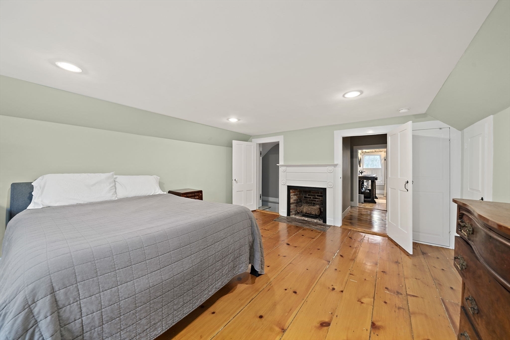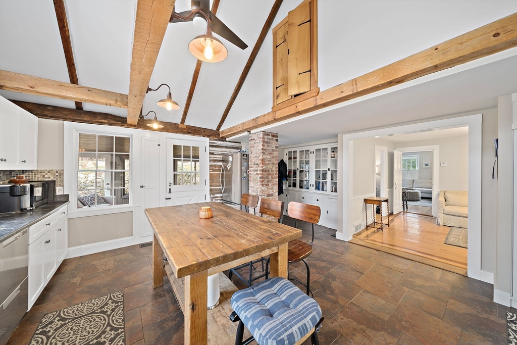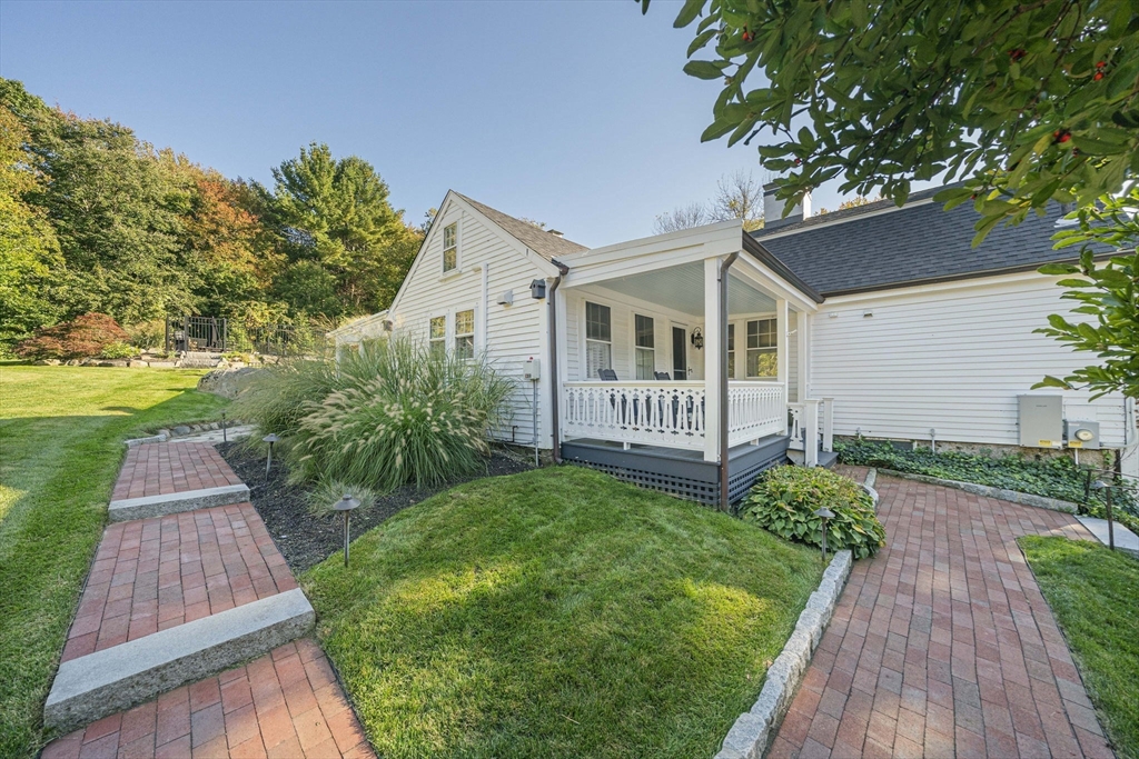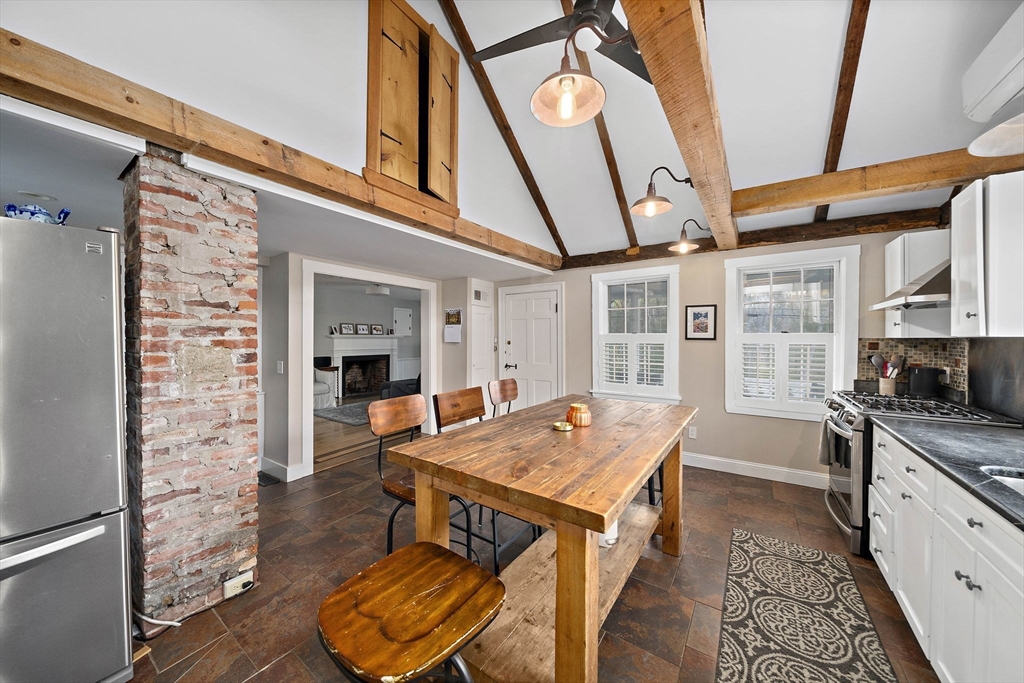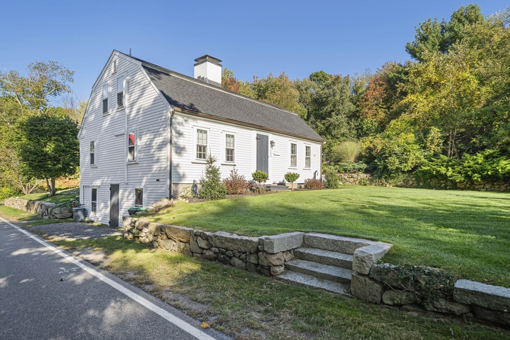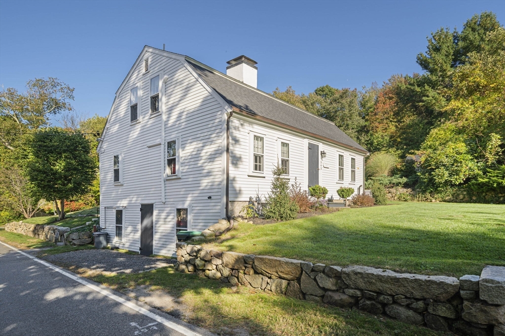 Tucked behind stone walls on a storybook 1.5 acre lot stands the Timothy Rogers House, a lovingly cared for Gambrel/Dutch Colonial where history and modern comfort meet. Step onto the freshly painted, detailed front porch and feel the welcome of time well kept. Inside, wide pine floors and rustic beams frame rooms warmed by four fireplaces. The open kitchen, crowned by a cathedral ceiling, shines with soapstone counters and stainless appliances. Love the heated sunroom that overlooks the lush perennial gardens, cabana, potting shed, and sparkling Gunite pool with new pool decking added in 2022. Updates in 2024 include a new roof, generator, exterior paint, window treatments/shutters, furnace, water heater, stove, dishwasher, sprinkler system, HVAC units, and natural gas line pulled to the home. A serene first-floor primary suite, cozy living & dining rooms, and a book-lined office complete the main level, while upstairs, there are two charming bedrooms and a beautifully updated bath.