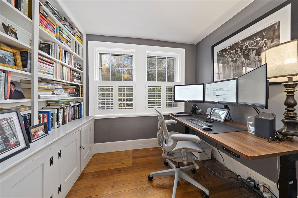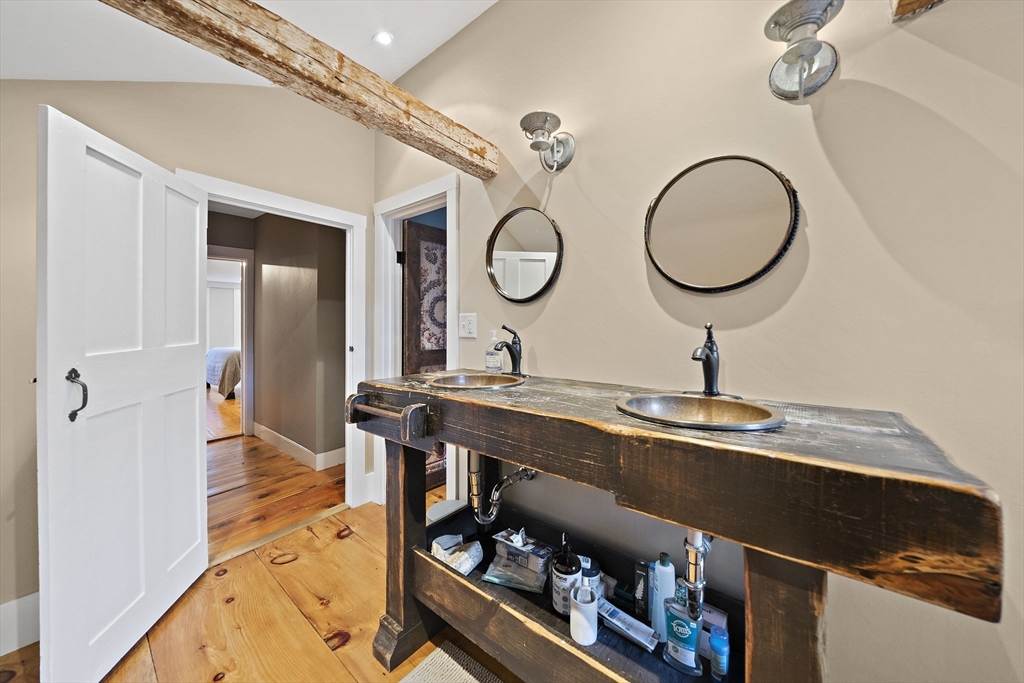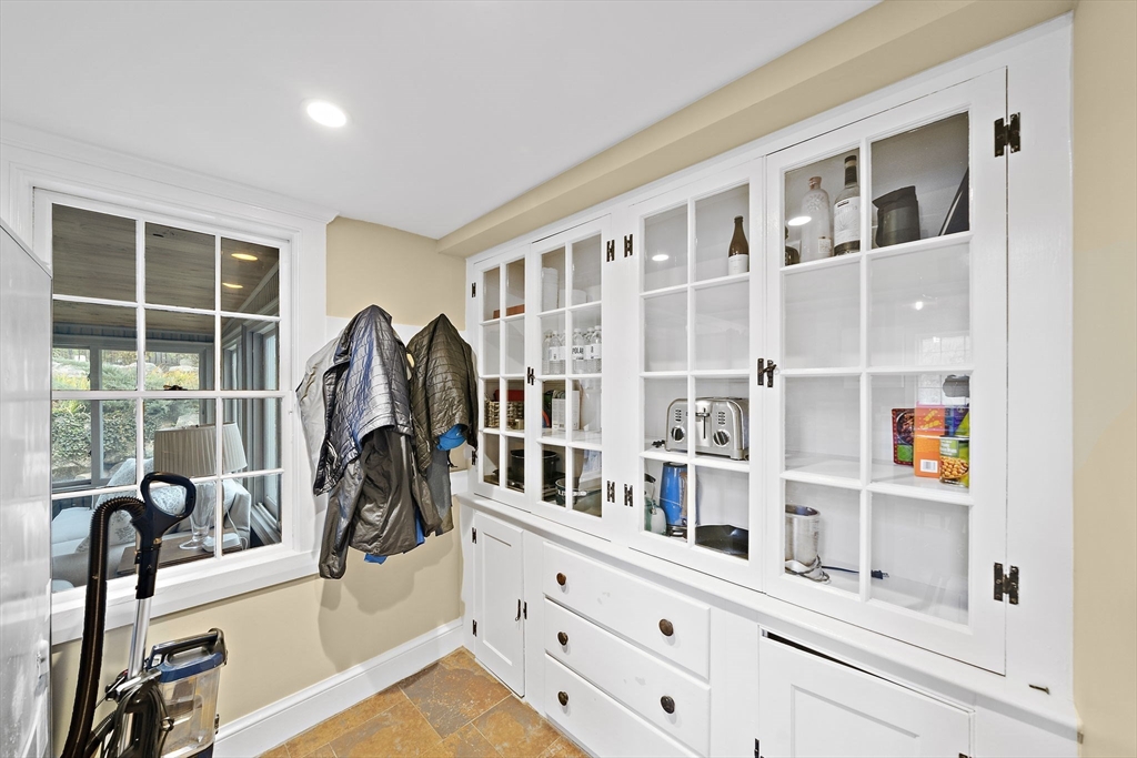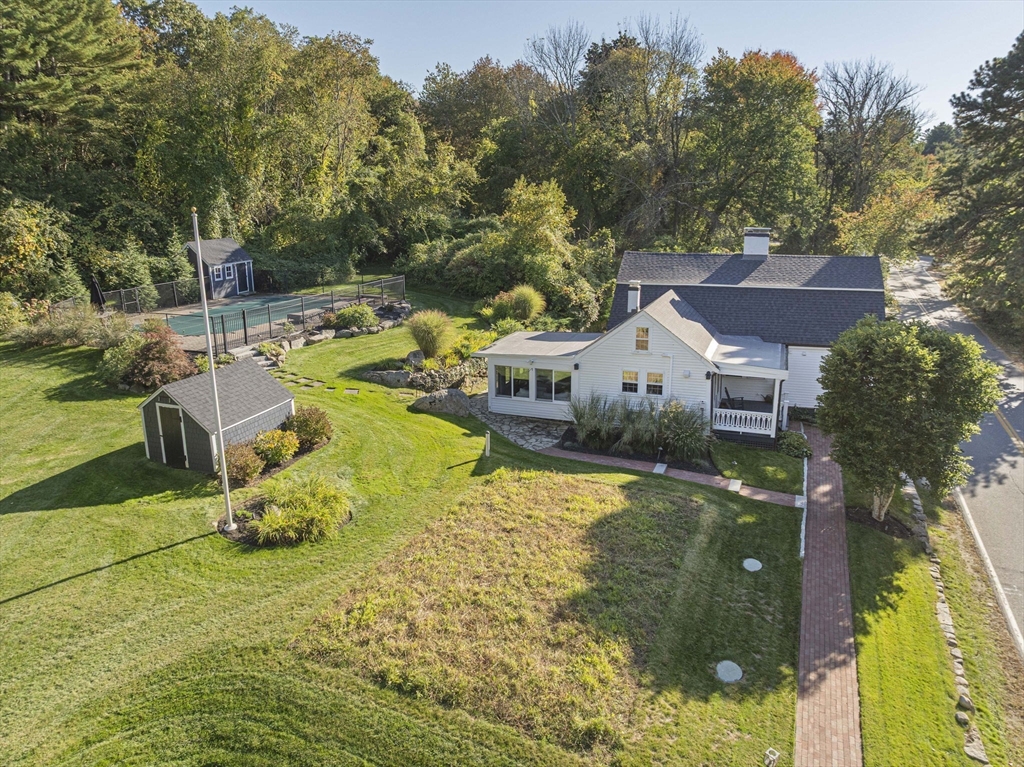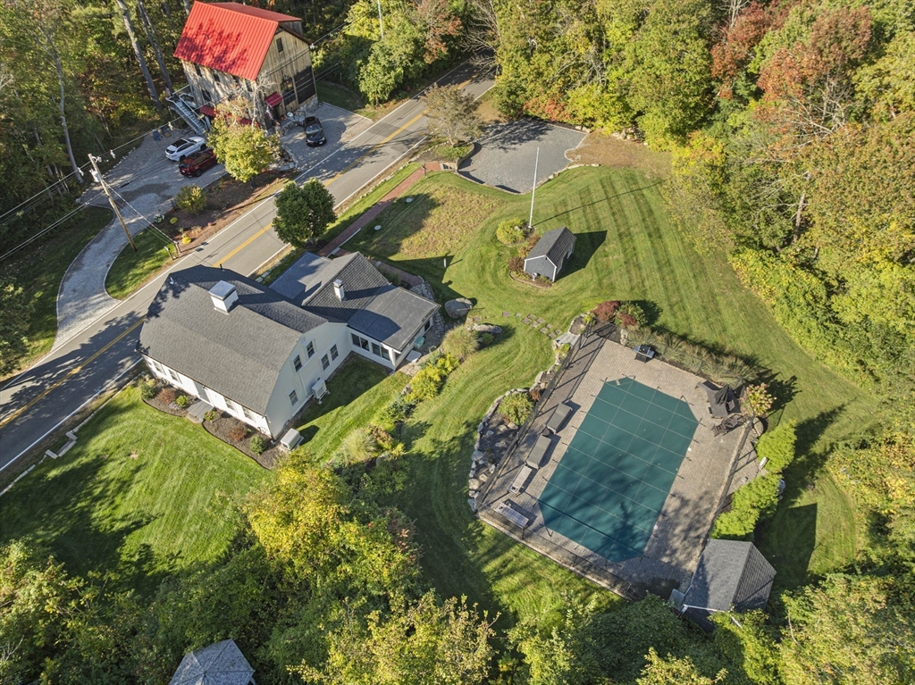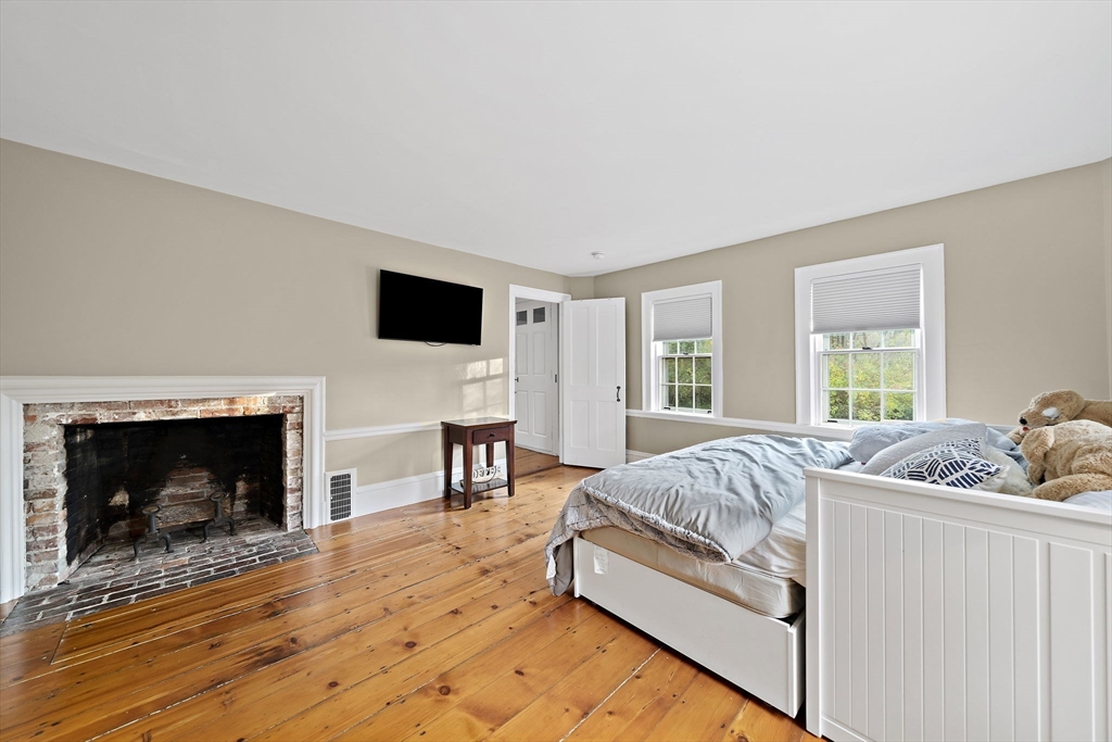 Tucked behind stone walls on a storybook 1.5 acre lot stands the Timothy Rogers House, a lovingly cared for Gambrel/Dutch Colonial where history and modern comfort meet. Step onto the freshly painted, detailed front porch and feel the welcome of time well kept. Inside, wide pine floors and rustic beams frame rooms warmed by four fireplaces. The open kitchen, crowned by a cathedral ceiling, shines with soapstone counters and stainless appliances. Love the heated sunroom that overlooks the lush perennial gardens, cabana, potting shed, and sparkling Gunite pool with new pool decking added in 2022. Updates in 2024 include a new roof, generator, exterior paint, window treatments/shutters, furnace, water heater, stove, dishwasher, sprinkler system, HVAC units, and natural gas line pulled to the home. A serene first-floor primary suite, cozy living & dining rooms, and a book-lined office complete the main level, while upstairs, there are two charming bedrooms and a beautifully updated bath.