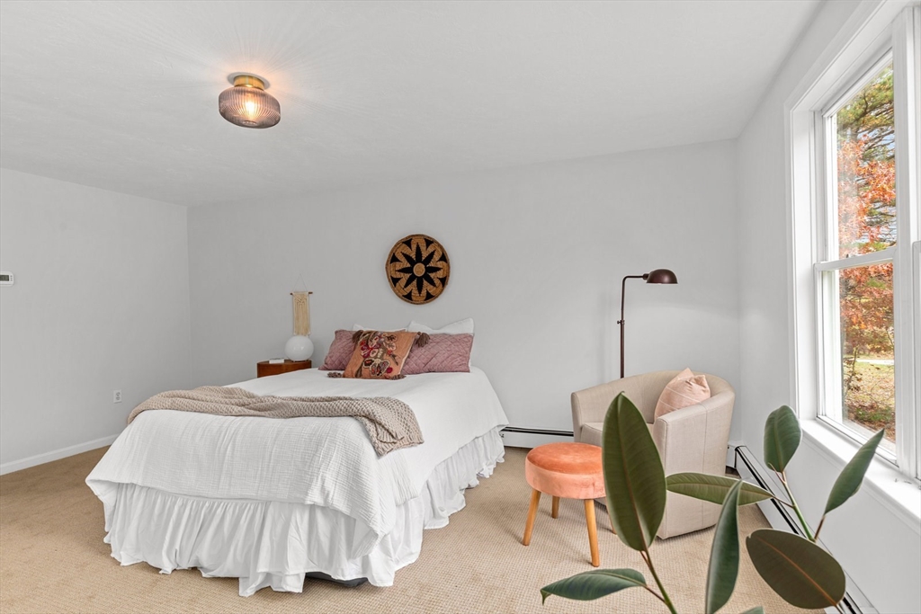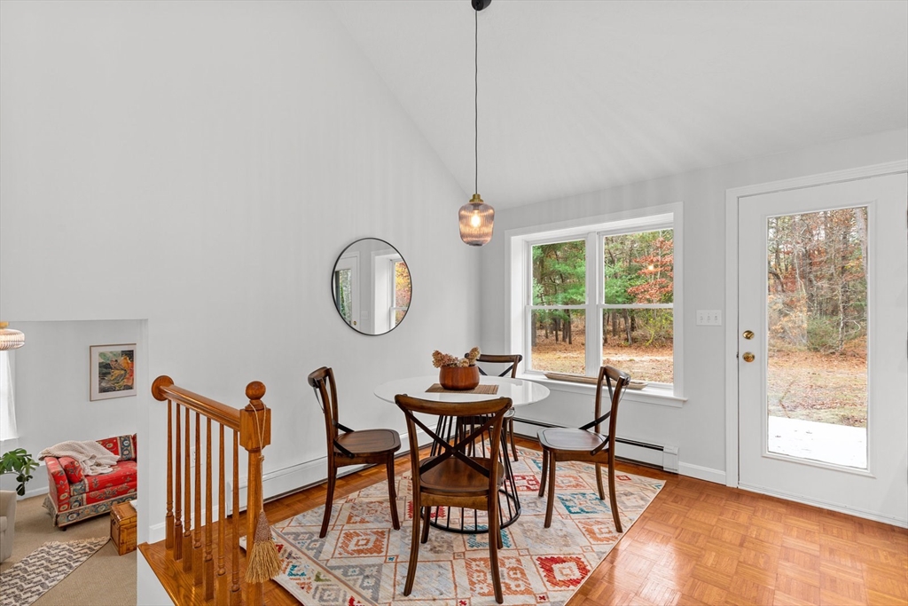 Discover this reimagined 3-bedroom, 2.5-bath home, perfectly situated on a private cul-de-sac in W. Plymouth that promises both tranquility & convenience. This property has been completely refreshed & features significant improvements, offering you style and peace of mind from day one. Recent Upgrades include designer-selected finishes such as walnut kitchen countertops, Benjamin Moore paint, plush new carpet and contemporary lighting. Major mechanical updates include a new boiler, hot water heater and a new roof. Inside, the multi-level layout provides wonderful space. Vaulted ceilings and parquet flooring greet you in the main level living room, kitchen, & dining area. A large lower-level family room & half-bath offer direct access to the 2 car garage. The upper level features a spacious primary bdrm with an en-suite bath & walk-in closet, 2 additional bedrooms & laundry. You are just moments from all the essentials: Colony Place, downtown Plymouth & seamless access to Rte 3 & Rte 44