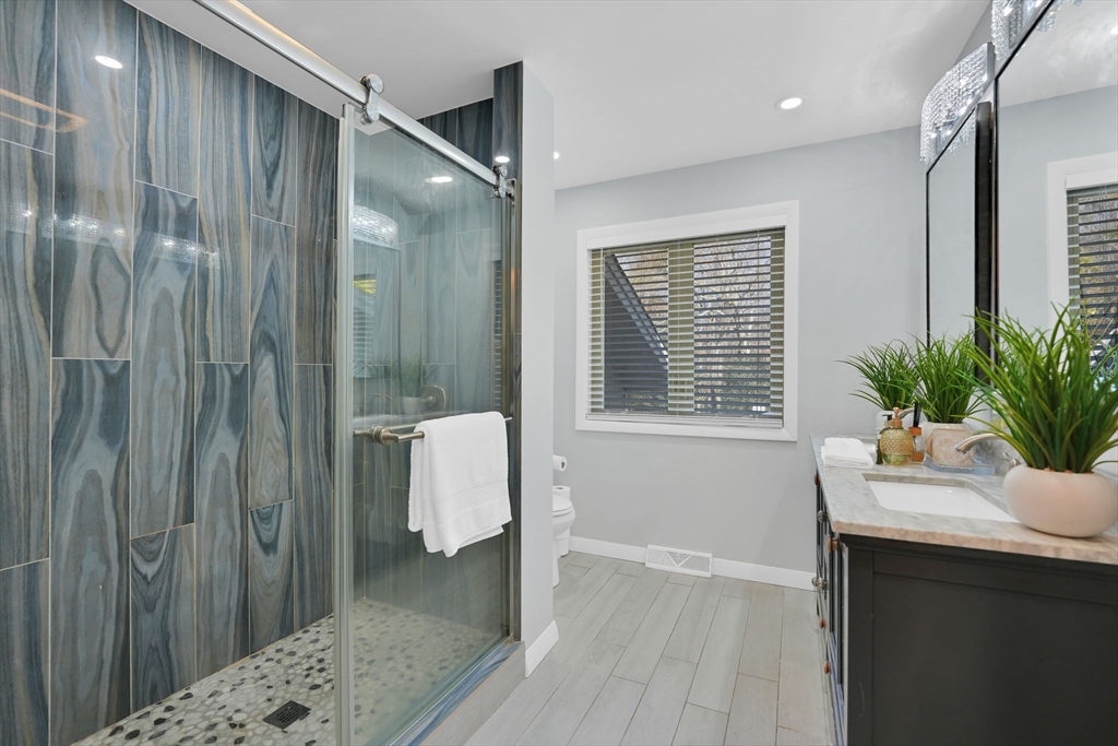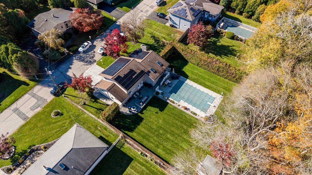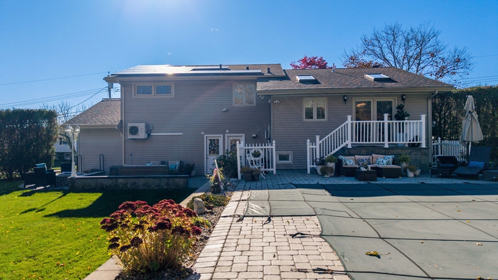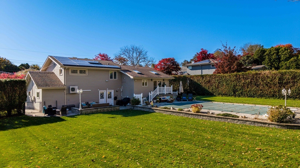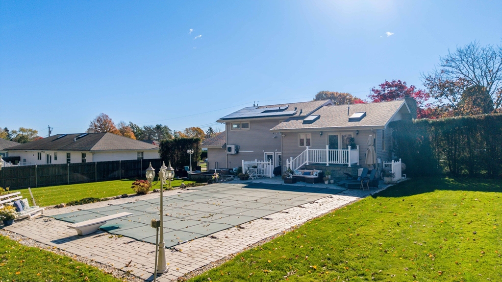 Welcome to this beautiful single-family home offering modern comfort, energy efficiency, and serene privacy. Thoughtfully maintained inside and out, this home has an impressive curb appeal and a bright, open layout filled with natural light. The updated kitchen and dining area feature skylights, elegant lighting fixtures, and a spacious island that is perfect for entertaining. The living room showcases hardwood floors and a cozy fireplace, ideal for relaxing nights in. With 4 bedrooms and 2 full bathrooms, there is room for everyone to spread out in comfort. Enjoy year-round climate control with forced hot air and central AC. Enjoy your private fenced in backyard complete with a heated saltwater pool (reduced utility costs thanks to solar panels), expansive paver patio, fire pit, peaceful views of nature with no rear neighbors and a storage shed for any outdoor equipment. The attached garage has climate control, offers a laundry room for convenience and extra storage.