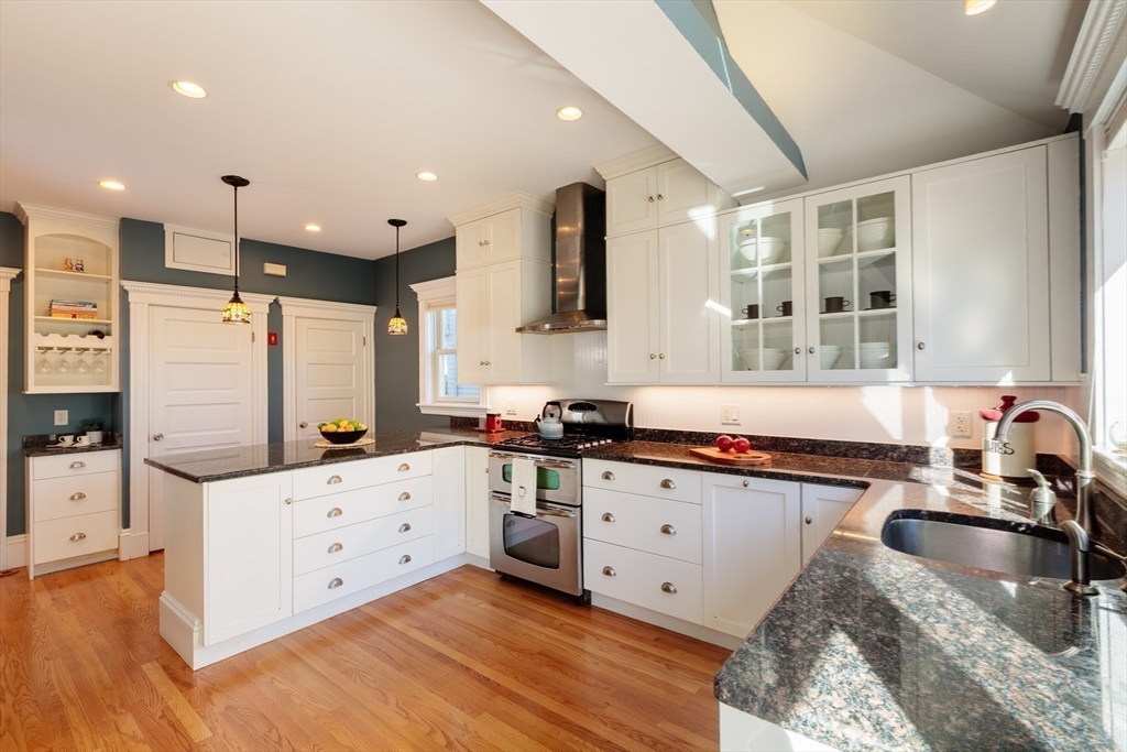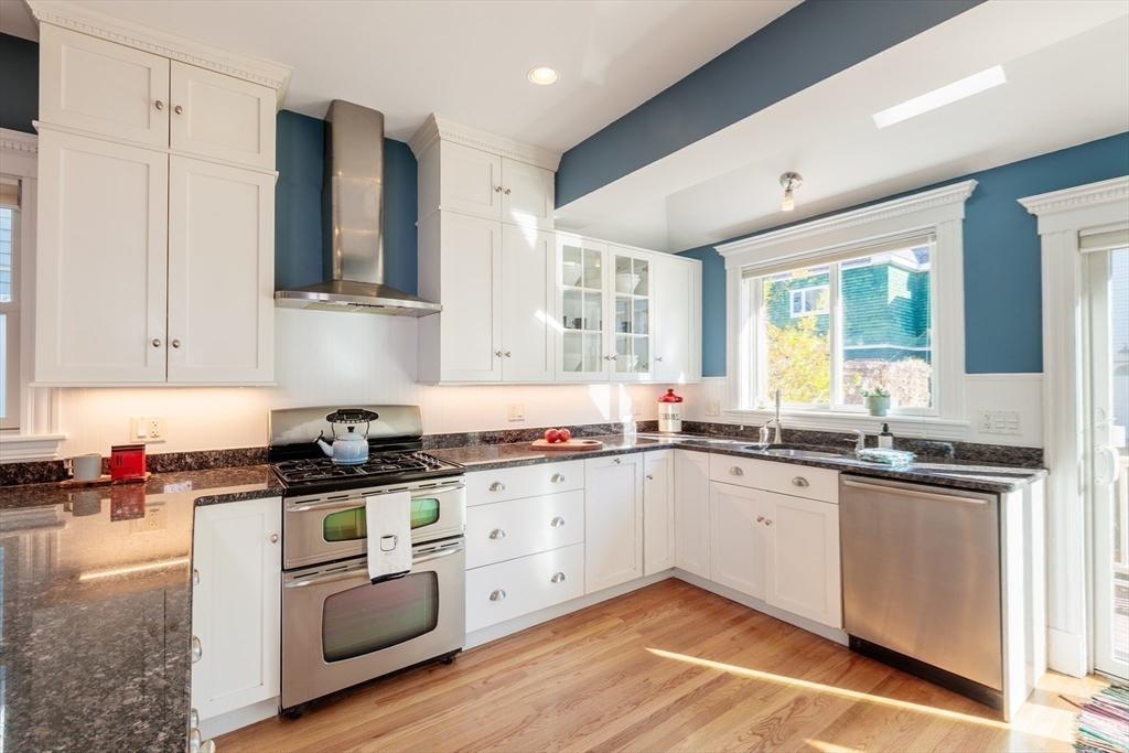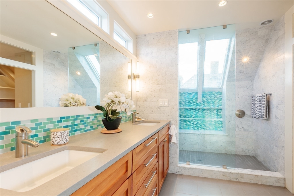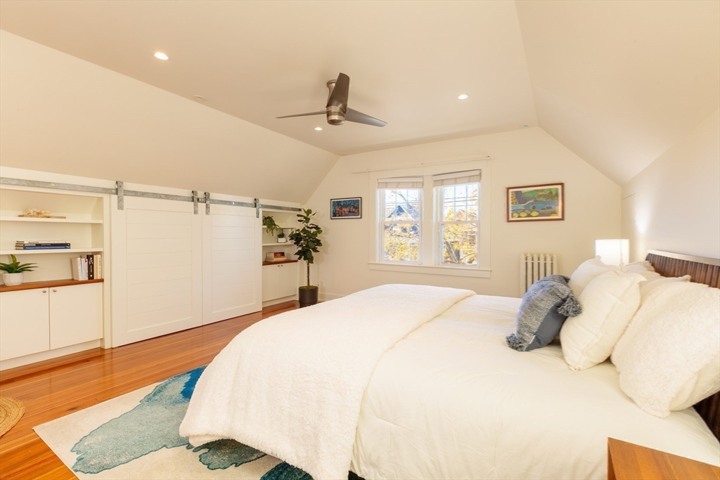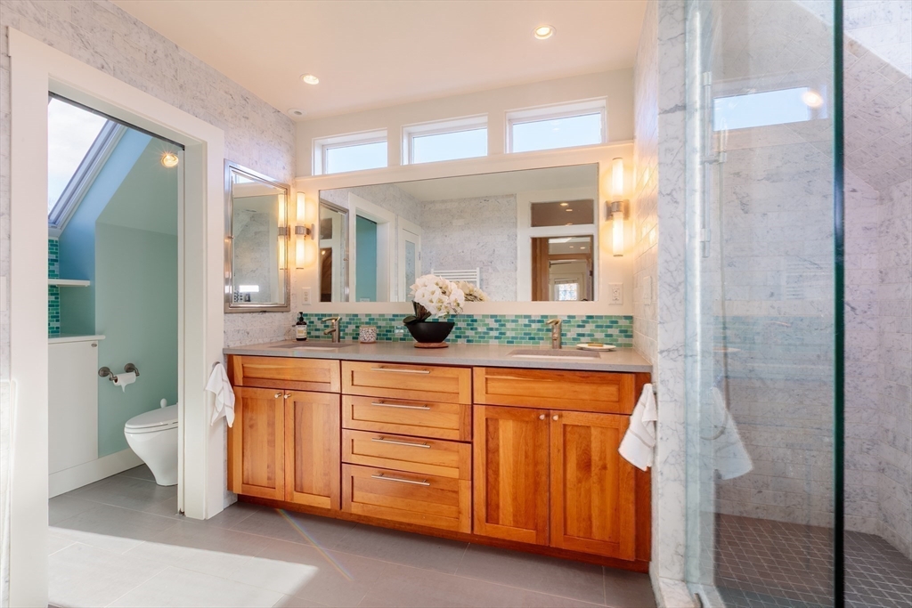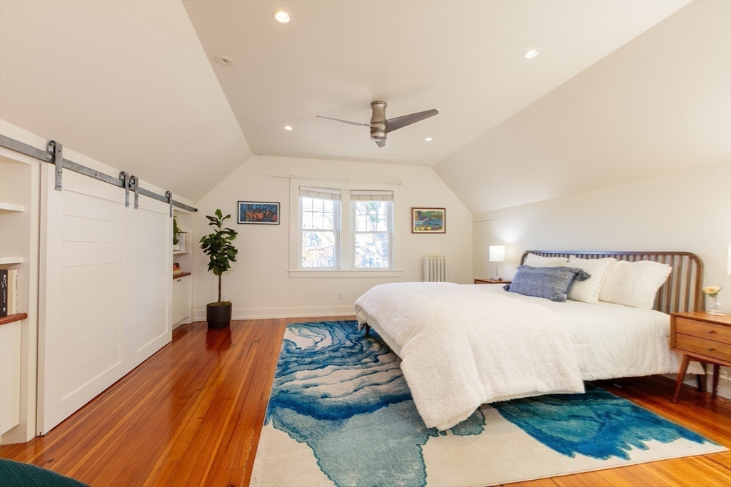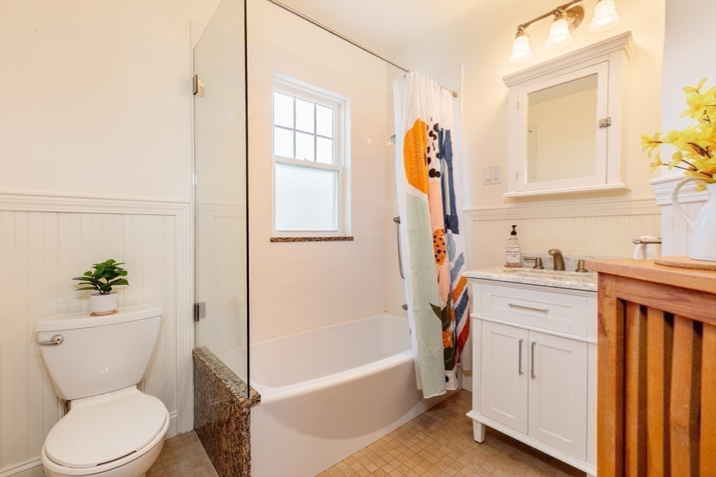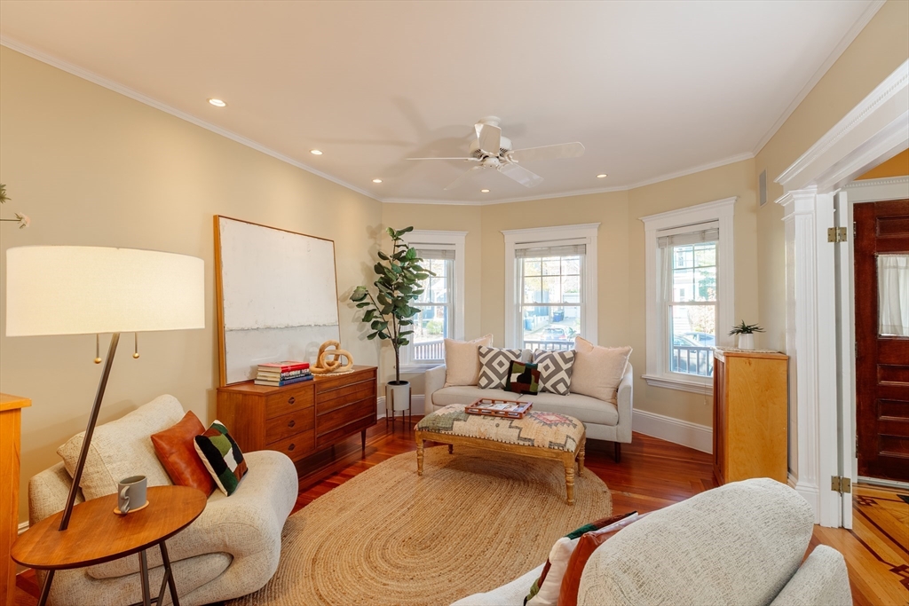 Set on a beloved st w/distinctive landscaping, this renovated home offers 4 bd, 3 ba, AC, stunning original details, wide front porch, rear deck, driveway, and fenced yard. The gracious foyer retains original ornate tin ceiling, bay window w/stained glass, inlaid wood fl, Jack and Jill stair, and French doors to LR. Adjoining DR has built-in china cabinet and inlaid wood fl. The roomy cook's kitchen has brkfst bar, ss appliances, white cabinets, stone counters, skylt, and glass slider to deck and yd. A full bath and separate laundry closet complete the 1st fl. The 2nd fl has 3 sizable bdrms, 1 office, and a full, tiled bath. The entire top fl is a luxurious custom suite w/lg bdrm; dble walk-in closets; and spa-worthy bath w/skylts, clerestory windows, tiled shower, towel warmer, dble sinks, linen closet, and water closet w/pkt dr. Unfin bsmt has ample storage and workspace and dr to yard. Walk to 2 RedLine + 2 GLX stops, bike path, Lex. Park, shops, eateries, theaters, universities.