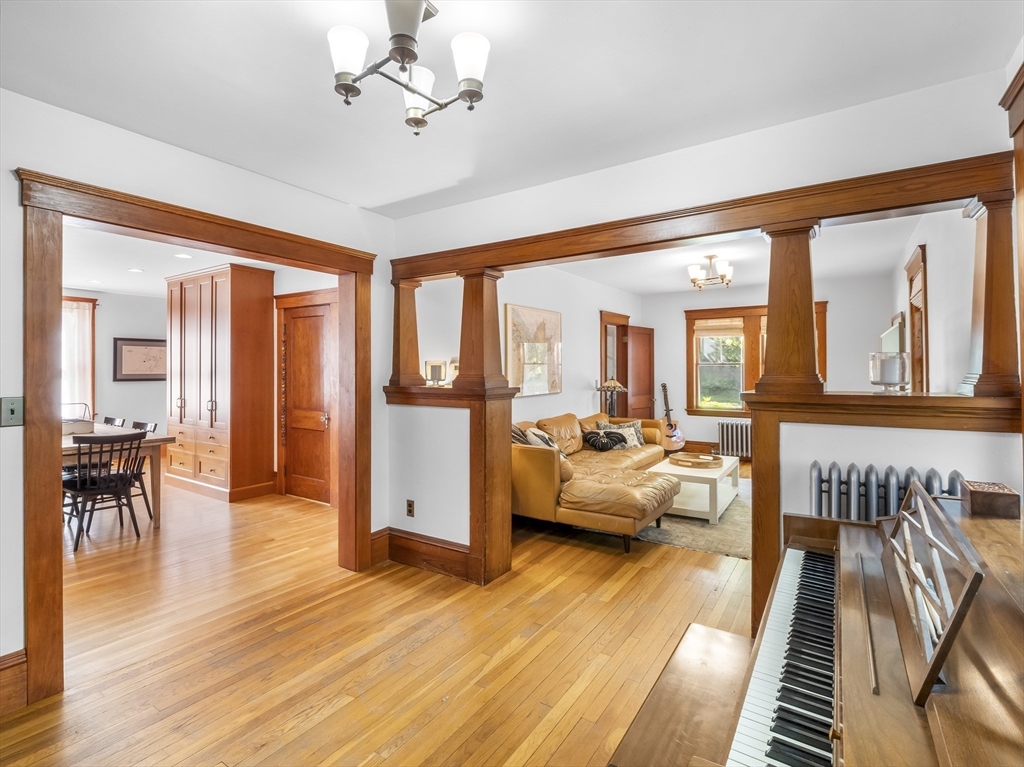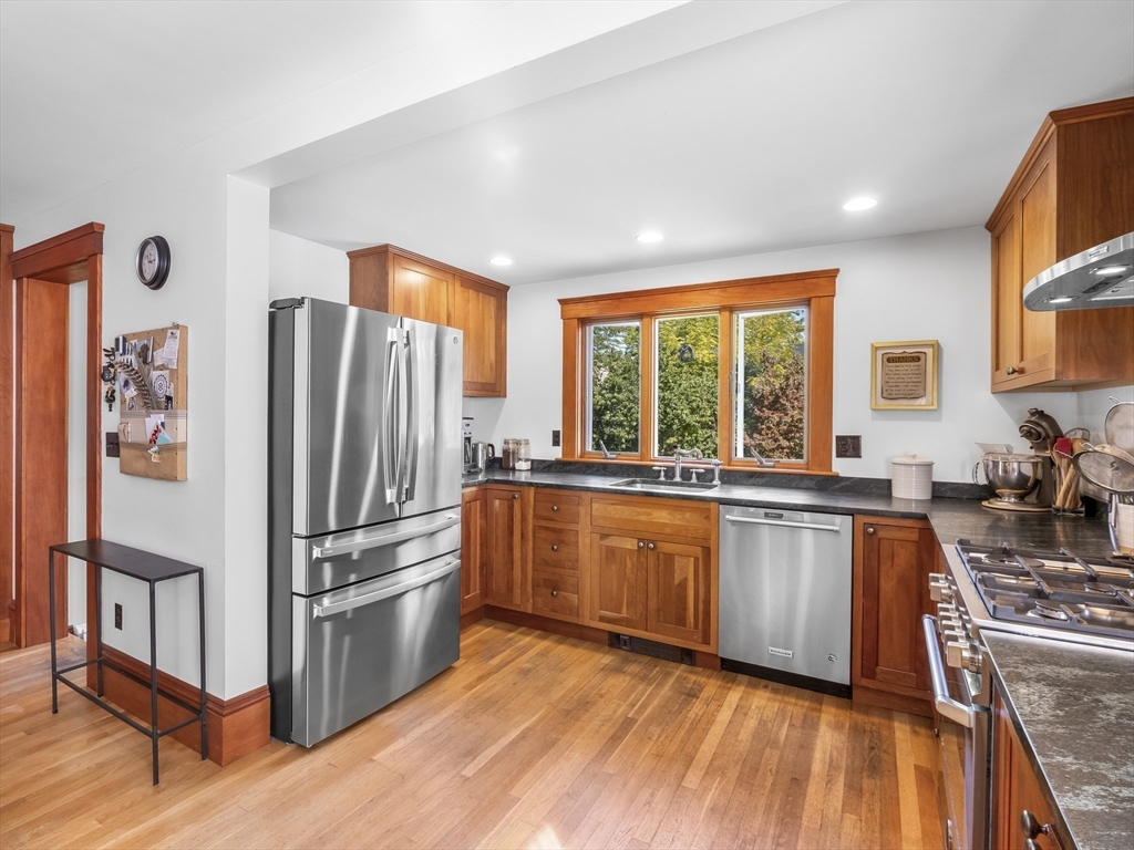 Boaters delight! 346 Merrimac offers the rare charm of an Arts and Crafts-style home abutting the Newburyport Boat Basin, and is a short walk to several other marinas. The Merrimack in your backyard isn’t the home’s only perk. Downtown Newburyport is a short walk away, with 30+ restaurants, shops, rail trails, and parks. Inside the house, there are five bedrooms—four on the second floor and one on the third complete with river views and a large walk-in ready to be converted to an in-suite bath, office or custom closet. The floor plan is flexible, with a large eat-in kitchen and a formal dining room that can double as an office or playroom. A generous living room, laundry room, entry hall, mudroom and walk-out basement round out the inside. Out back, a large deck overlooks a fenced-in yard, while the sunny side yard is home to a bustling vegetable garden. Dine under the stars, adventure in town, bike to Plum Island or boat on the Merrimack—this inviting home puts it all in easy reach.