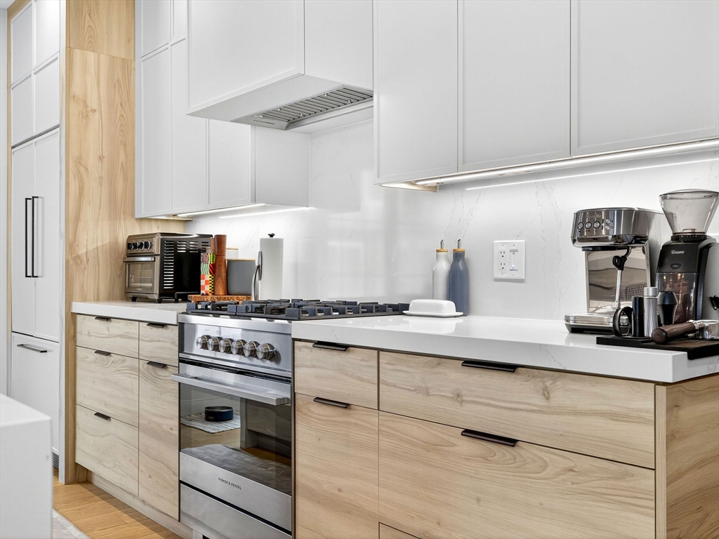 One of Dorchester’s most striking homes, 4 Payne Street offers a fresh, architectural take on city living. Tucked beside a leafy park at the end of a quiet cul-de-sac at the base of Pope’s Hill, these residences blend clean lines with warmth and function. This duplex features a private entry, two decks off the main level, custom built-ins and a sunlit glass-framed study perfect for working or creating. Upstairs, 17’ cathedral ceilings make the bedrooms feel expansive, and the primary suite features a spa-like bath and a next-level walk-in closet. Wide-plank white oak floors in a soft matte finish bring a natural, modern feel throughout. The kitchen shines with paneled Fisher & Paykel appliances, mitered Calacatta Gold waterfall counters and sleek custom millwork. With garage parking, central air, pet-friendly living and proximity to I-93, downtown, McGonagle’s, Adams Village and Dorchester’s beaches, this home nails city style, comfort and connection.