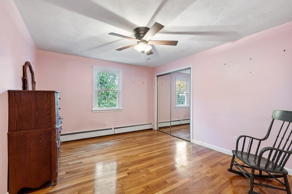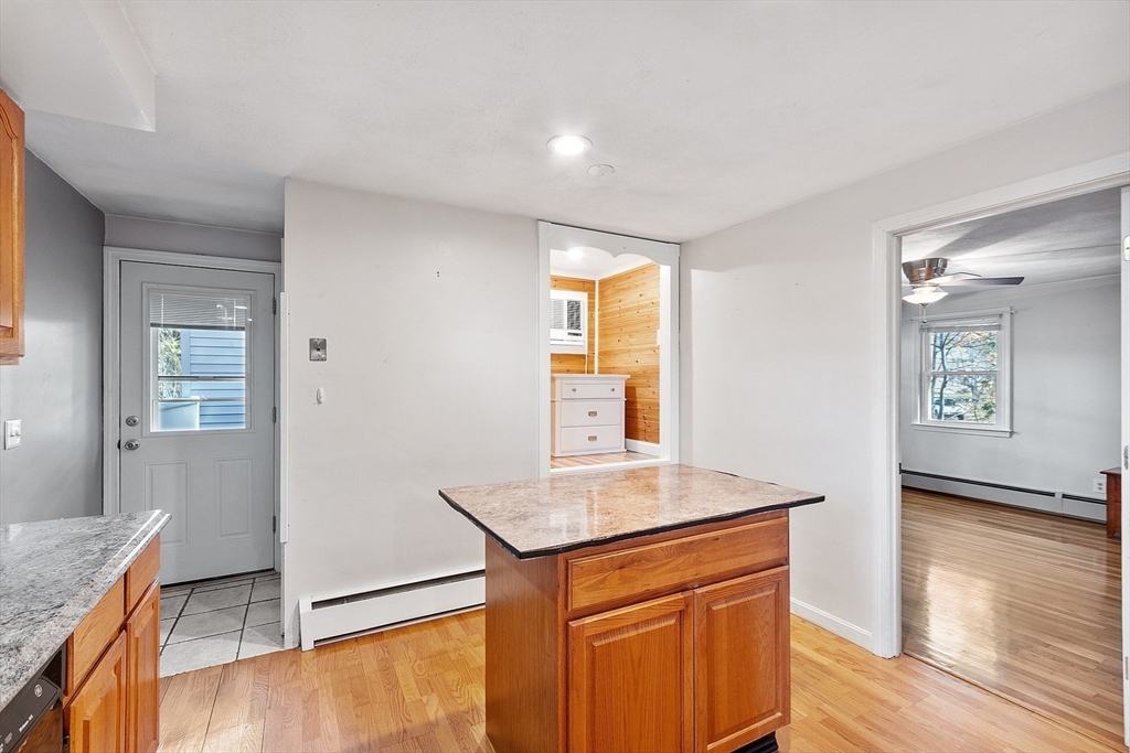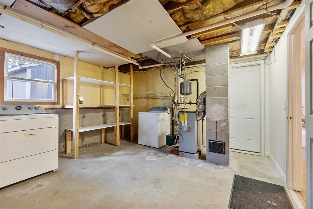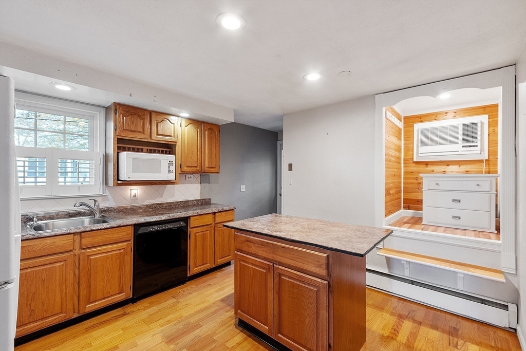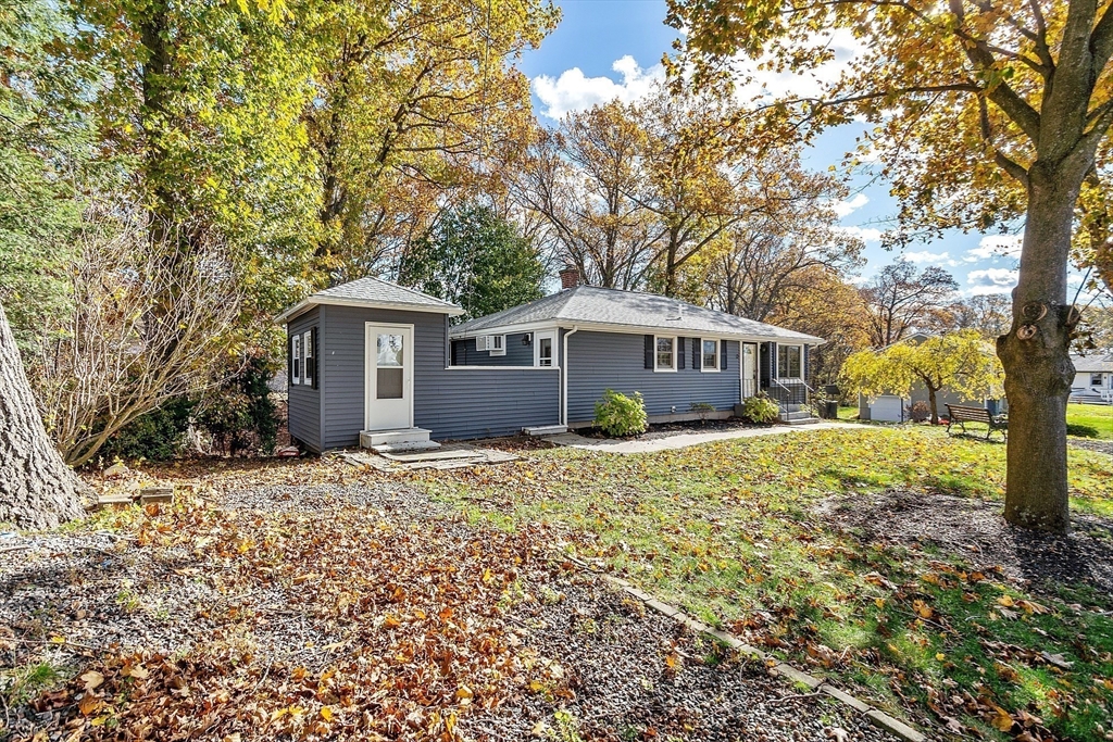 Welcome home to this move-in ready 3-bedroom, 2-bath hip-roof Ranch, perfectly set on a quiet dead-end street with views of Dorothy Pond! Enjoy gleaming hardwood floors throughout most of the main level. The sun-filled kitchen offers an island, pantry, and generous cabinetry with direct access to the 12x10 deck—perfect for morning coffee or evening relaxation. The mostly finished lower level provides endless possibilities—guest suite, teen space, or private home office—with its own entrance, kitchen, sitting area, and full bath. There is a one-car garage, shed, and a spacious yard. Recent updates include a newer boiler and oil tank (2020) plus replacement windows. Need more space… An adorable detached finished office or studio with a slider adds even more flexibility. Convenient commuter location. A wonderful home in a peaceful setting—don’t miss this one!