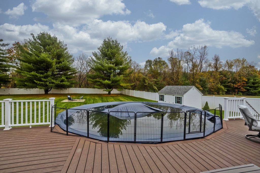 Welcome to this beautifully maintained colonial residence on a park-like .84-acre lot. A true highlight is the private ensuite with its own bedroom, bath, kitchen, dining, and living room, plus basement access and private entrances—ideal for multi-generational living or guests. The main home offers three spacious bedrooms, two full baths, a bright family room, and a sun-filled living room perfect for gatherings. Enjoy the well-appointed kitchen, gracious dining room, and partially finished basement for added living space. Outdoors, relax in the fully fenced backyard with heated 28’ pool, deck, patio, 16x12 shed, and small kennel. Additional features include an oversized two-car garage, generator hookup, security system, private irrigation well, LED-lit retractable awning, and recently serviced ducts and furnace. Freshly painted and truly move-in ready! Roof 10 years young! All appliances to remain! Circular driveway for easy acess!