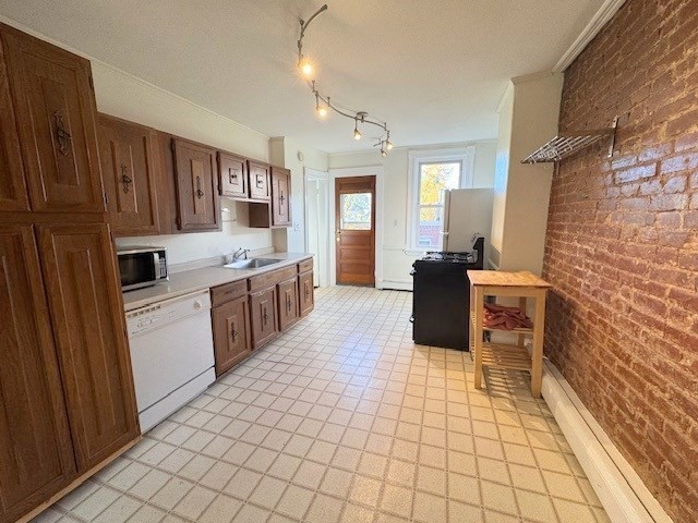 Available NOW. Charming, 2 Bed +Office, third floor apartment in a brick rowhouse. Located in the Lower Allston neighborhood, convenient to Cambridge, Harvard/Harvard Business School, major roadways (MassPike, Memorial/Storrow Dr & Soldiers Field Rd) as well as the 66, 70, & 86 bus lines. The apartment has 2 bedrooms, extra office area, living room, Eat-in-Kitchen, and fire escape style balcony. The apartment has an open concept between the kitchen and the living area, including a bonus office space. The two bedrooms are located on opposite ends of the apartment, creating great privacy. The apartment gets great natural light, offers loads of character, has hardwood floors, exposed brick, over-sized kitchen w/dishwasher & loads of counter/cabinet space. There is laundry on site, off-street rental parking available for $150 per month + guest parking. Vacant & Easy to show!