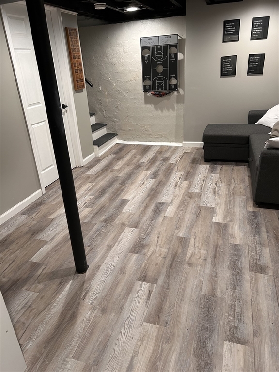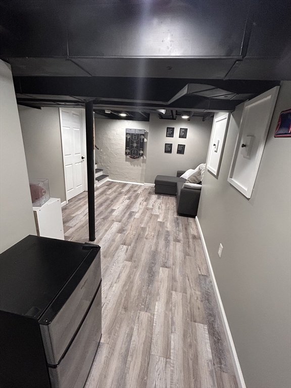 Please don't let the opportunity to own this fabulous Cape-style home pass you by! This home is well-maintained, and the basement has been fully remodeled, offering a nice-sized family room and a large, spacious third bedroom. The house is in a lovely neighborhood close to all local amenities! The first floor offers a kitchen, a half bathroom, and a spacious living room with hardwood flooring and a fireplace. Off the living room is an updated bonus room that provides privacy with a new sliding barn door. The dining room is beautiful, with hardwood floors and two lovely built-in cabinets for your finest possessions! Upstairs there are two large bedrooms with amazing hardwood floors and lots of storage space throughout (the second bedroom has a huge reading nook, which is currently used for reading, games & storage), and a full bathroom. Nicely sized yard w/ patio outside for those get-togethers! Central air/heating system only few yrs old/water heater approx. 1yr old.