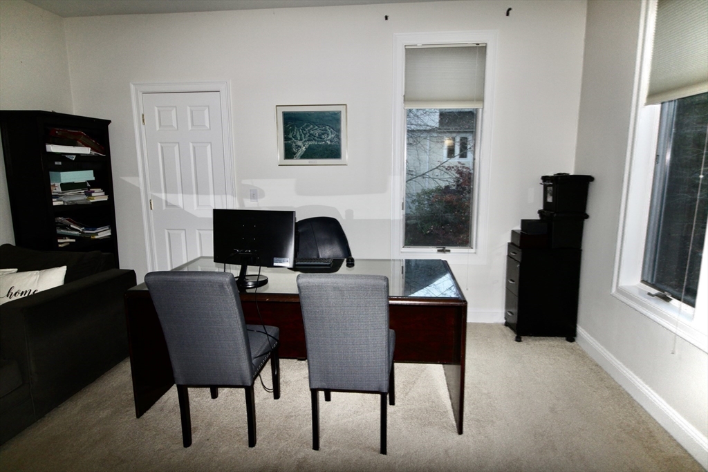 Magnificent Ipswich Country Club Home overlooking the 12th hole. This elegant Country Club home offers stunning fairway views and refined living. A grand entry opens to a formal dining room and a sun-filled living area with a bow window and expansive deck with French doors. The kitchen features granite counters, upgraded cabinets, stainless steel appliances, wall oven, a 5-burner gas cooktop, and generous island seating with a breakfast area. The family room with wood fireplace and wet bar is perfect for entertaining. The first floor also includes a study, bonus room, powder room, and laundry. Upstairs, the spacious primary suite features a walk-in closet, spa bath with steam shower and jacuzzi, and french doors to a private balcony overlooking the golf course. Four additional bedrooms and a full bath complete the second floor. Central vacuum system. First floor In-law possibilities. A lovely home combining luxury, comfort, and spectacular golf course views.