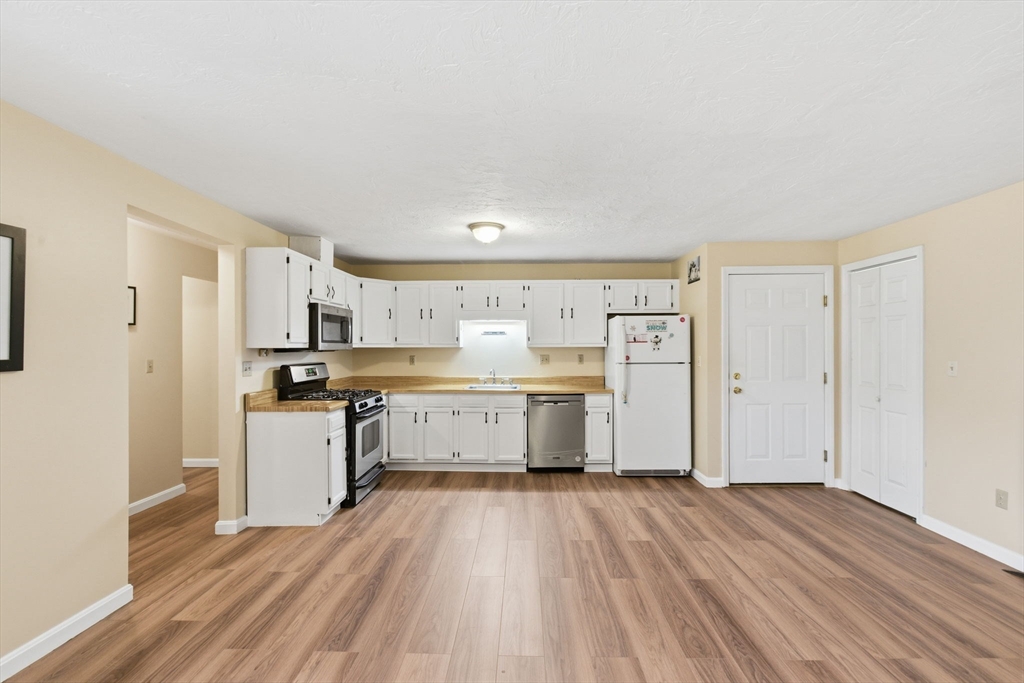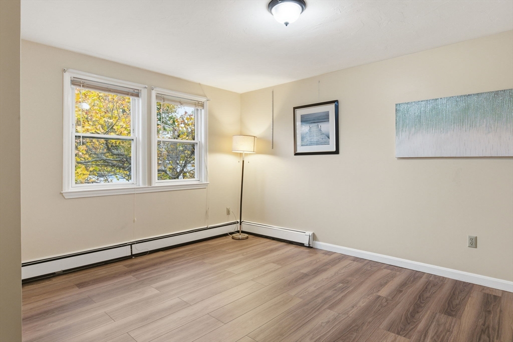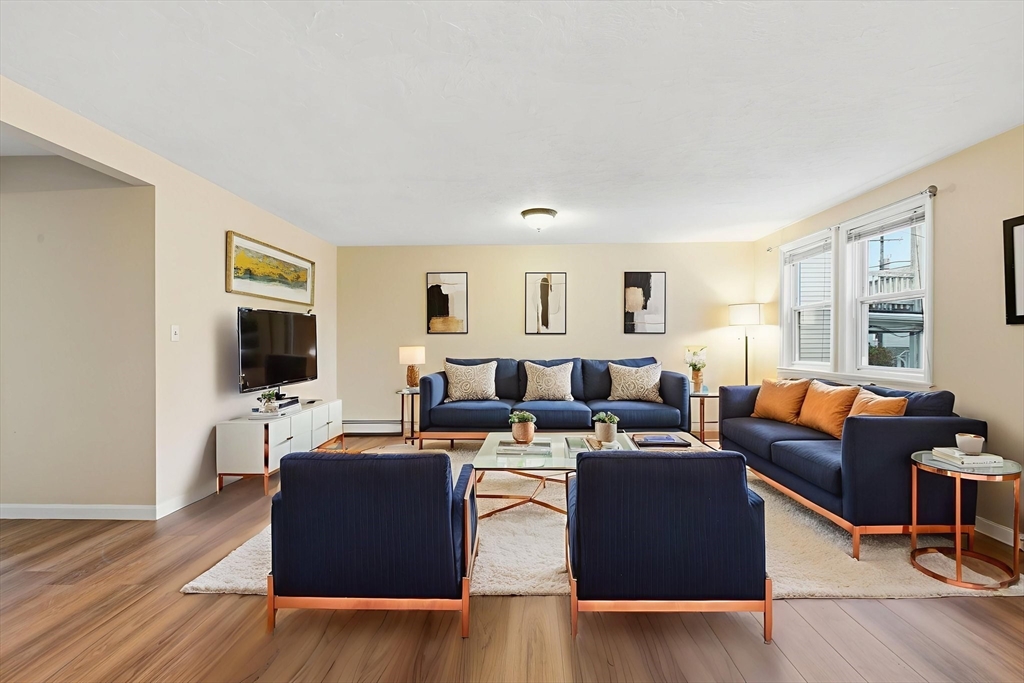Your Search Ends Today! Discover this rarely available 3-bedroom condo in the heart of town, just minutes to the T and highway. Enjoy an open floor plan with spacious rooms, abundant natural light, gas cooking and heating, 1.5 baths, and in-building laundry. This home also offers the rare bonus of two parking spaces plus generous closets and storage. Perfect for those who want the space of a single-family home without the hassle of yard work—come make this your dream home today!