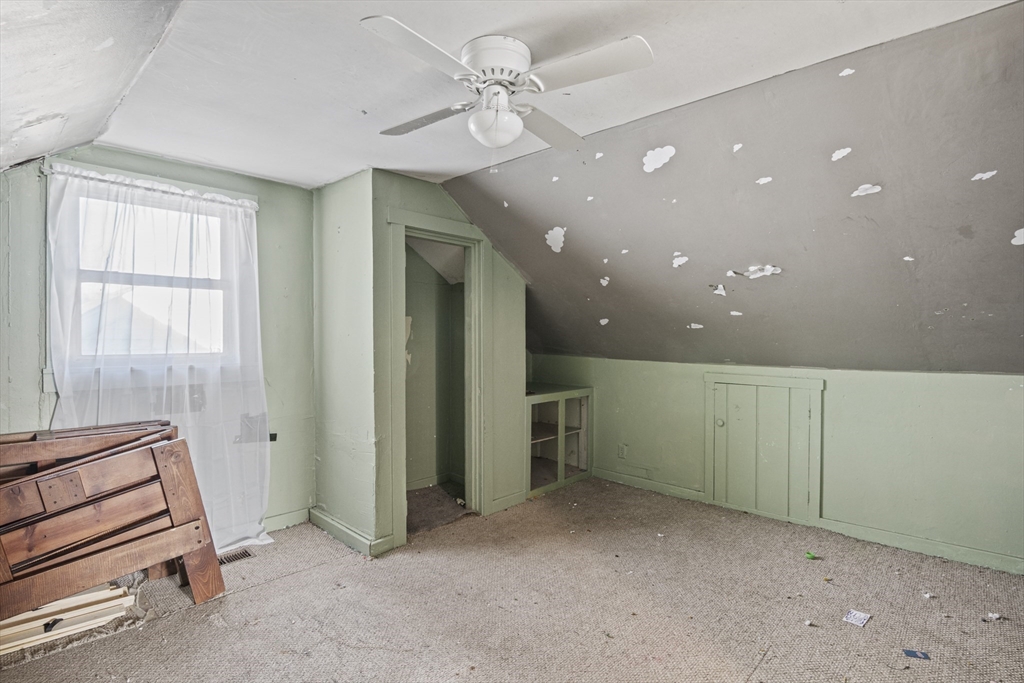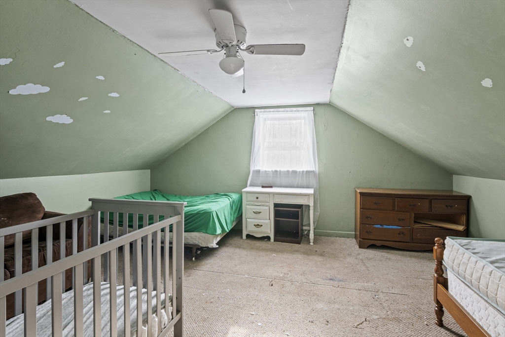 Bring your imagination and some elbow grease to make this hidden gem shine again! Leave the clutter of shoes and coats out of sight in the welcoming breezeway before entering into the large eat-in kitchen. The cozy living room features a wood stove, perfect for chilly evenings, and flows seamlessly into the adjacent formal dining area. A convenient first-floor bedroom and full bath offer flexible living options. Upstairs, you’ll find two additional bedrooms, each with ample closet space. Some of the laminate flooring has original hardwood underneath. Enjoy the beauty of the New England seasons from the inviting three-season porch. Outside, a paved driveway leads to an oversized one-car garage with plenty of space for storage or a workshop area. The partially fenced-in yard is generous in size—ideal for play, entertaining, or gardening. Tucked away in a peaceful setting yet close to shopping, restaurants, and more, this home is ready for your personal touch!