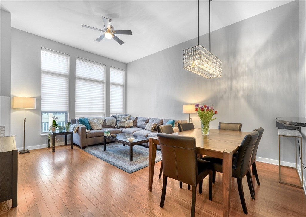 Penthouse unit at desired Rollins Square with two deeded parking spots! Two bed/two bath, 3 heat zones, gas cooking and eleven foot ceilings!! Minutes to the Mass Pike, steps to all that the South End has to offer and featuring many recent upgrades, including flooring, lighting, closet systems & kitchen backsplash. Near elevator & easy access to parking spots and extra storage--plus on-site management.