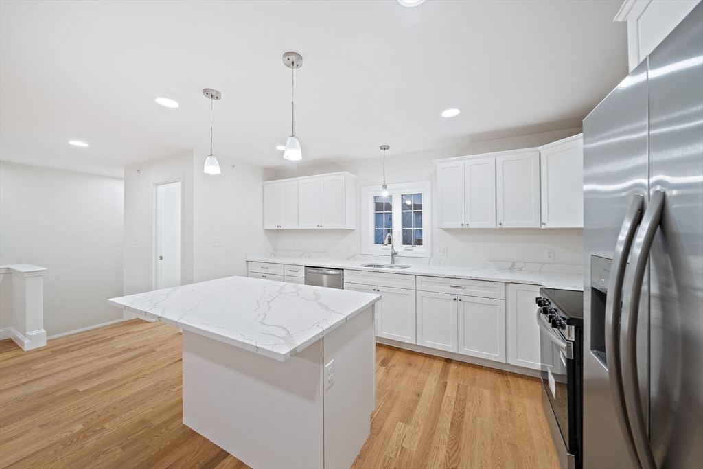 Presenting The Village at Center Street Crossing-Randolph's Newest Luxury Townhome Community! Welcome to the Townhouses on Simmonds Boulevard, where contemporary design meets comfortable living. These stunning new homes feature a spacious, open-concept layout with beautiful quartz countertops, shaker-style cabinets, stainless steel appliances, and in-unit laundry for modern convenience. The main level boasts gleaming hardwood floors and an abundance of natural light-perfect for entertaining or relaxing in style. Upstairs, the primary suite offers a private bath with double-sink vanities and ample closet space. A second bedroom, additional full bath, and convenient laundry area complete the upper level. The finished lower level provides flexible space ideal for a home office, playroom, or gym-plus plenty of storage. Located just minutes from major highways, public schools, and the commuter rail. Come tour our beautifully appointed model home!