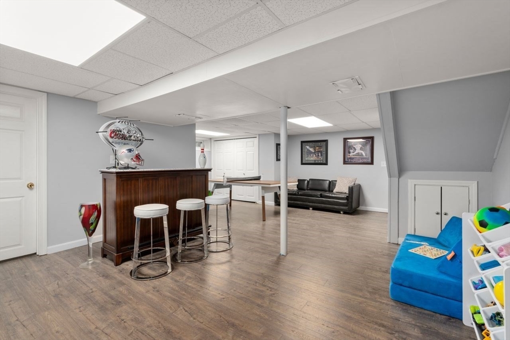 Completely RENOVATED 4-bedroom, 3-bath home at the END OF THE CUL DE SAC in one of Sharon’s most sought-after neighborhoods. This sun-filled home sits on a PRIVATE LOT backing up to conservation land with DIRECT BACKYARD ACCESS TO MILES OF TRAILS leading to King Philip’s Rock and Lake Massapoag. The dramatic entrance, expansive yard, and EXTRA LONG DRIVEWAY (fits 15+ cars) set the tone for this stunning property. Inside, every inch is new, nothing original remains but the foundation. The main level features a QUARTZITE FIREPLACE living rm, formal dining rm, and a designer kitchen with a WATERFALL QUARTZ island and countertops, SLATE FARMERS SINK, and more. Upstairs, the oversized primary suite offers a quartzite fireplace, two walk-in California Closets, and a spa-inspired ensuite bathroom. With new roof, siding, HVAC, deck, patio, kitchen, and baths, this home is like new. Located in Sharon (#7 best schools in MA), it blends high end luxury, and timeless New England charm.