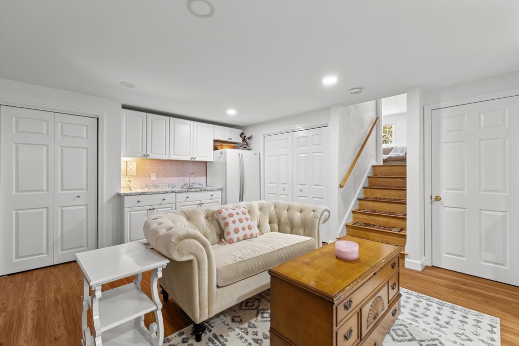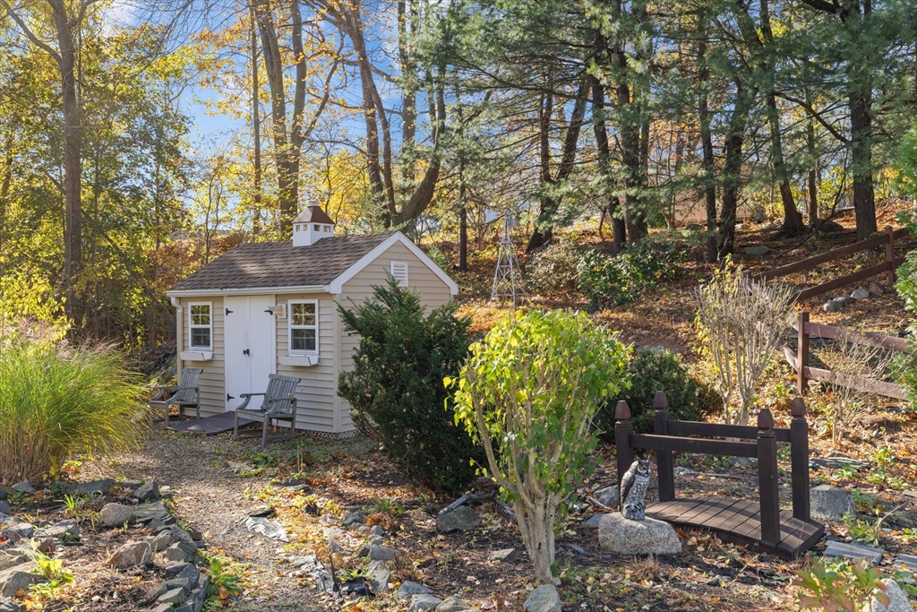 Tranquility abounds here. Feel your body & mind relax as you enter this immaculate 7 rm 3+ bedroom 2.5 bath oversized 2 car garage multilevel home. The home sits off the street buffered by perennial plantings & semicircular driveway. Updates include handcrafted fireplace mantle w/ matching bookcases in living room, stunning bathrooms, partially finished lower level w/ cabinetry, hand finished epoxy garage floor, storage shed, additional insulation, custom closets. Notable features are separate workshop areas, office nooks, stunning vaulted ceiling in living/ kitchen area. Enjoy easy outside access. Imagine a backyard oasis complete w/ composite deck, patio, an English Country Garden, enchanting water fountain, interesting stone paths & greenhouse for vegetable herb & flower gardening. Beaches, shopping, restaurants nearby. OH Fri 11:30-1 & 3-4:30, Sat.1-2:30 Sun11:00-12:30. Sellers to review offers, if any, as they come in & will not respond to offers until after Tues. 5PM deadline