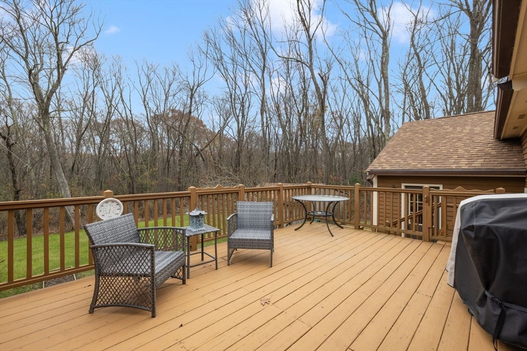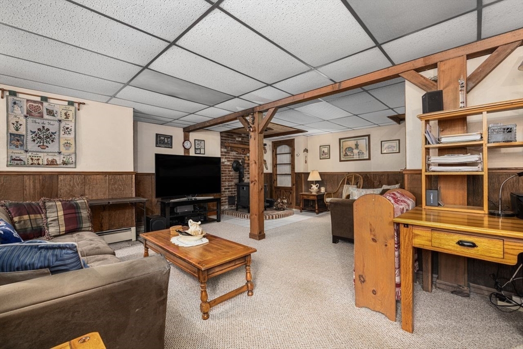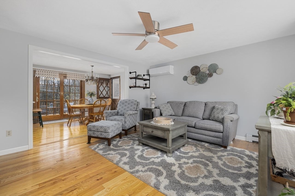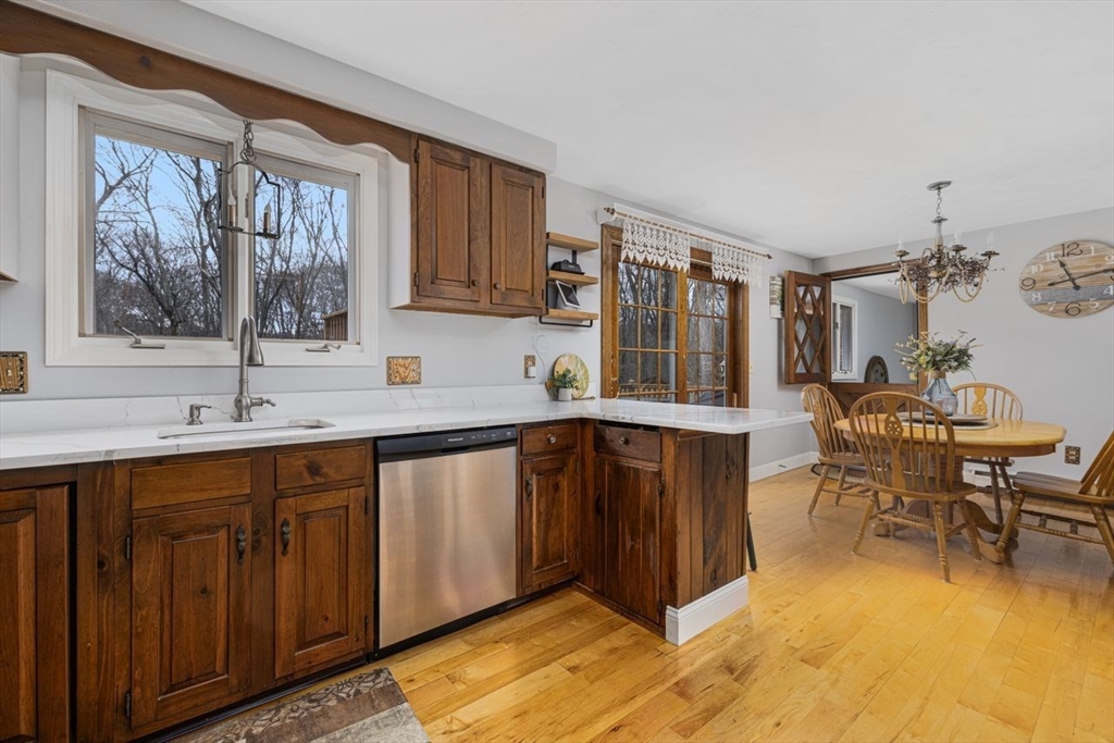 Pretty as a picture Ranch perfectly situated on just over a half-acre with Curb appeal & beautiful front porch. New Roof 2025. Open concept Kitchen/ dining area features Quartz countertops, hardwood floors , Stainless Steel appliances & access to a large deck perfect for entertaining. Updated replacement windows. Fresh paint throughout the first level. newly installed hardwoods in living room & Hall and brand-new carpets in all 3 bedrooms. Updated Bath with new flooring, handmade custom oak wood work & new vanity. Remodeled Mudroom / office area with 13ft ceilings, custom oak stairs, luxury Iron Balusters & luxury vinyl plank flooring. Finished Walk-Out lower level has family room with custom cabinetry and wood stove has endless possibilities for additional living space. Spacious two-car garage with a separate workshop area .Large Barn style shed . Stone Fire pit , Three Efficient Mini split AC & heat systems and oil heat. 9.3 m to Franklin T, Move in ready beautiful home