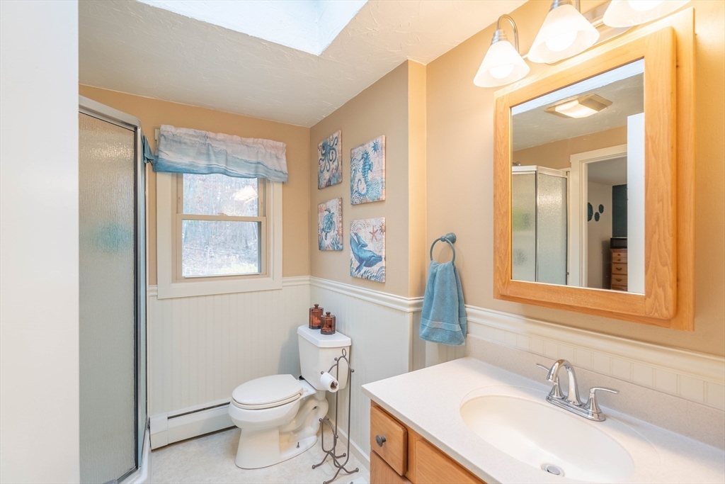 Nestled in the beautiful hills of Worcester, this lovingly well-maintained home overlooks the picturesque neighborhood and is only 5 minutes from major commuting routes and convenient amenities. The inviting living room features a beautiful fireplace that adds comfort and warm ambiance. The kitchen layout is well organized for efficient function with a breakfast bar opening into the bright dining room. The direct access from the kitchen to the patio is excellent for outside entertaining in the scenic yard. Tucked down the hall, a serene bedroom and airy full bathroom complete the first floor. On the 2nd floor, you will find 2 spacious bedrooms with beautiful views and a full size well-appointed bathroom. The basement is a bonus level with convenient outside entry, a cozy family room, laundry room, and access to the garage. The multi-level yard has a patio to enjoy the tranquility and different sitting areas to enjoy the birds, view, and sunset. Schedule your showing TODAY to this GEM!