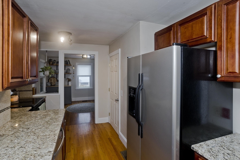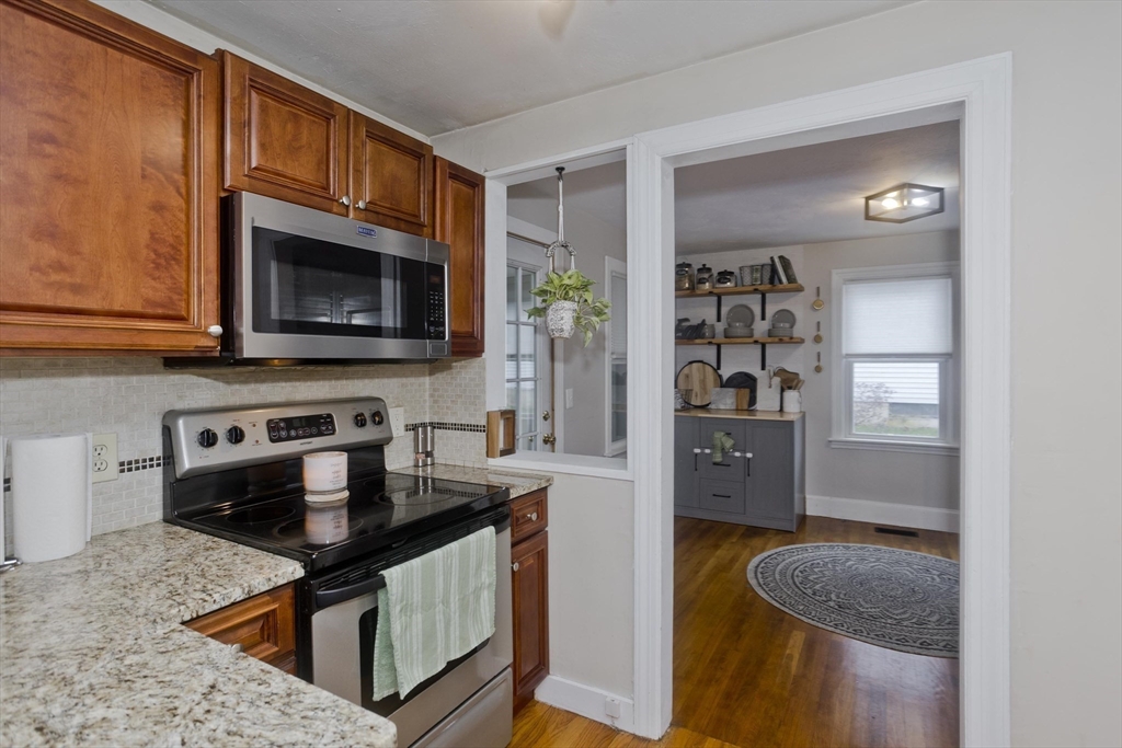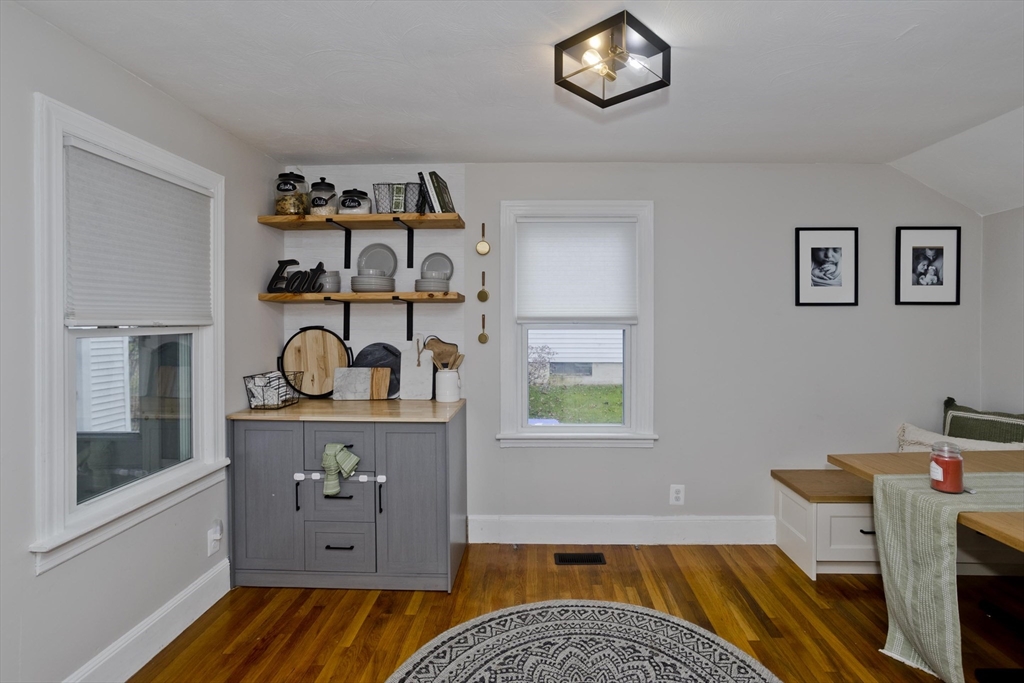 Whether you are starting up or downsizing, this updated 3 bedroom East Forest Park cape is ready for its next owners! Situated on a quiet street, in walking distance to both Pope Francis Preparatory School & St. Michael's Academy, and convenient access to shopping, restaurants, walking/hiking trails, golf courses, etc! Enter into a large living room with gleaming hardwood floors and plenty of natural light, which opens into the updated kitchen with granite counters, stainless steel appliances, plenty of cabinet space, and beautiful dining room! Down the hall you will find the full bath with tiled tub and shower, and the master bedroom with large walk-in closet. Upstairs are two additional bedrooms, each with hardwood flooring. The basement is partially finished with a perfect workout area and an office! Additional features include a 3 season porch, 1 car garage, fenced yard, newer gas furnace with central air, newer roof and replacement windows. Open house Sun 11/9 from 11-12:30pm!