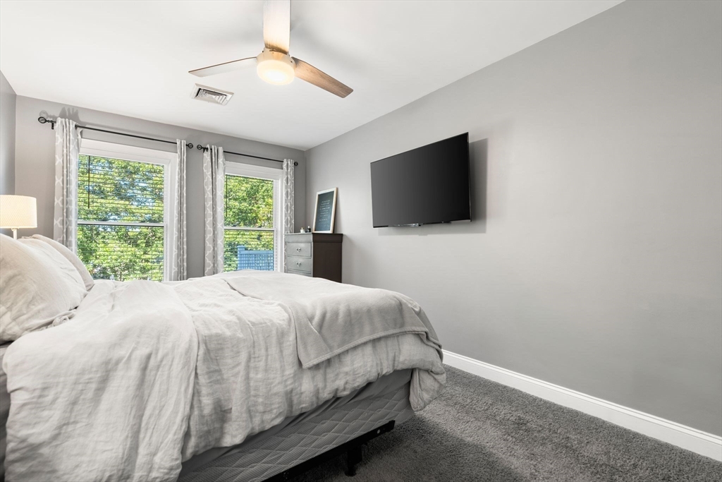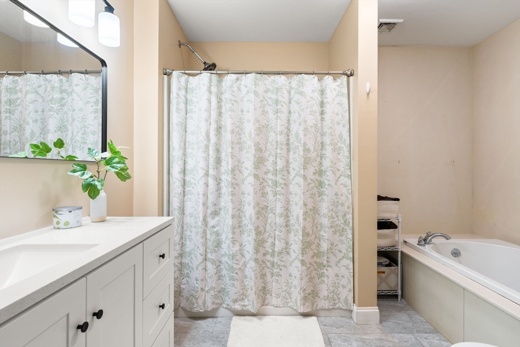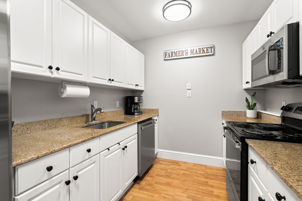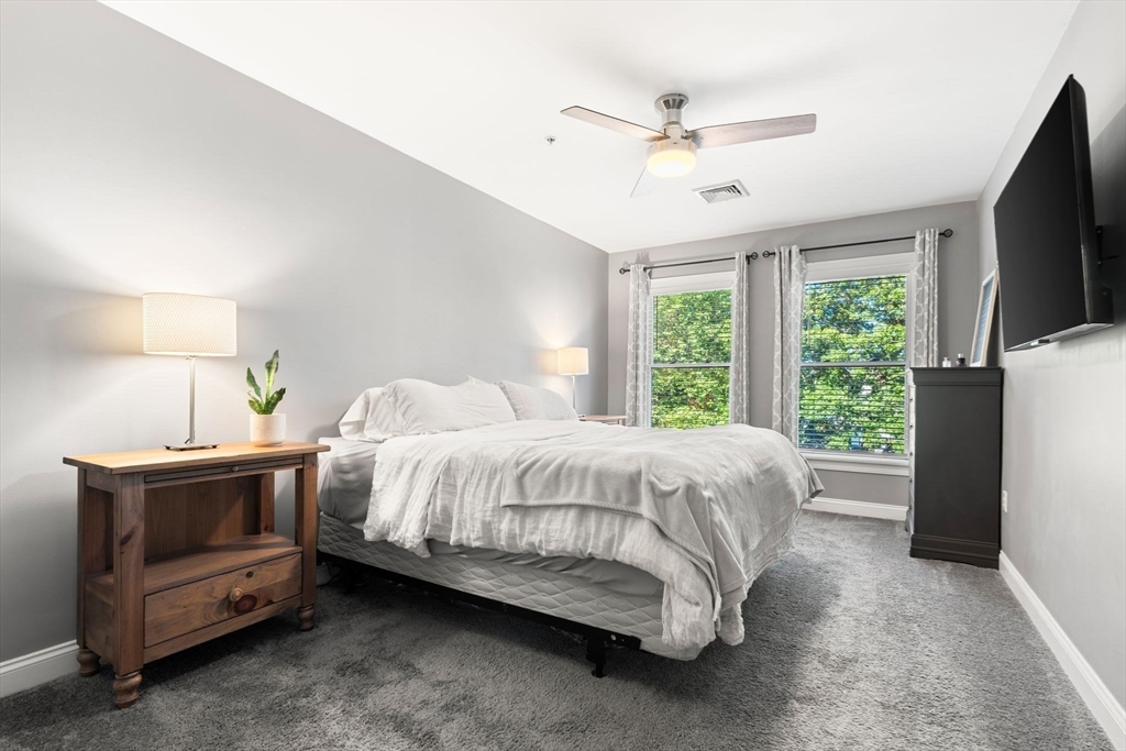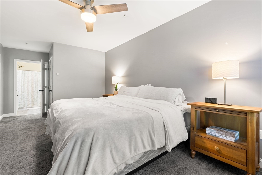 Welcome to The Residences on Falls Pond—where charm, convenience & comfort meet! This spacious 2-bed, 2-bath condo offers 1,224 sq ft of single-level living with soaring 9-ft ceilings. Enjoy a modern kitchen with granite counters & stainless steel appliances, an open dining area & a fireplaced living room. Each bedroom is a private ensuite retreat. Relax on your updated Trex deck with stunning year-round water views. Includes elevator access, 2 deeded garage spaces & 2 storage units—close to highways, Wrentham Outlets, shopping & dining. No smoking. Pets negotiable (size/breed) with an additional fee. All applicants 18+ must complete an online application ($49 fee per applicant). Good credit, First, and security required. Tenant responsible for gas & electric.