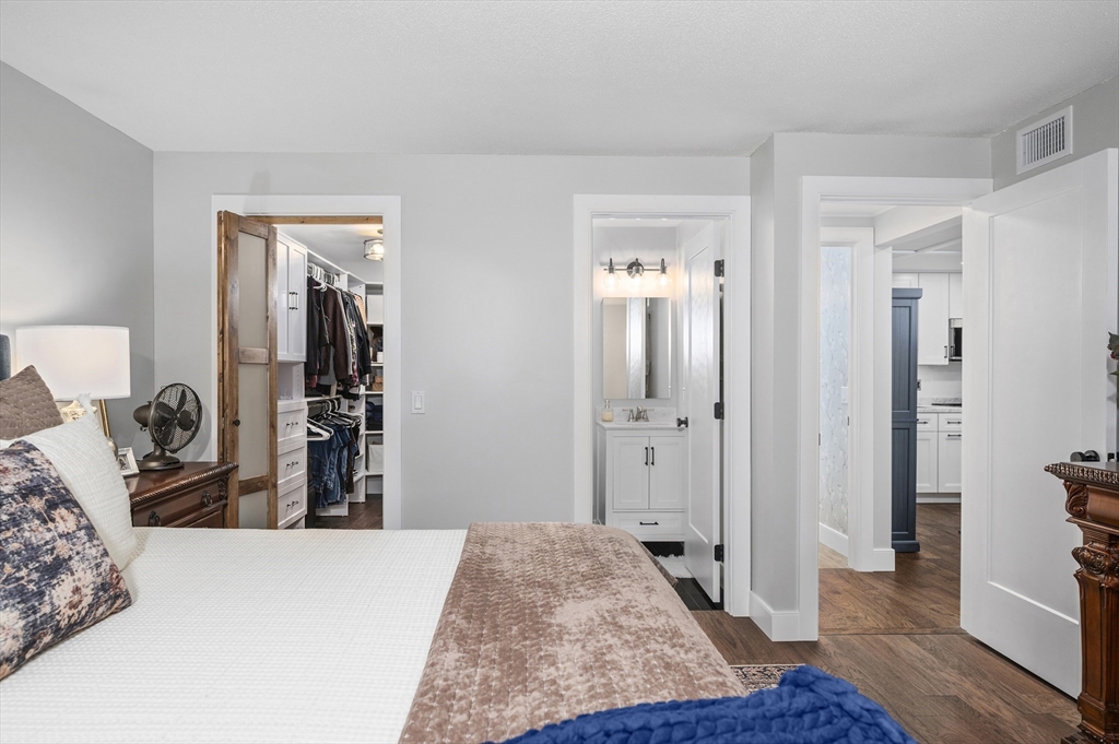 Experience sophisticated living in this meticulously updated 2-bedroom, 1.5-bath condo, where timeless craftsmanship meets modern elegance. The open-concept layout is enhanced by rich hickory hardwood floors, custom craftsman style millwork, tasteful designer details and new Harvey windows. The gourmet kitchen is a true showpiece, featuring bespoke soft-close cabinetry, shiplap feature walls, recessed lighting, and premium stainless steel appliances. Thoughtfully designed for both style and function, it seamlessly flows into the gracious dining and living areas, perfect for entertaining. The primary suite offers a peaceful sanctuary with an expansive custom-built walk-in closet and a beautifully appointed half bath while the second bedroom provides flexibility for guests and/or a home office. Every element of this residence exudes quality, comfort, and sophistication. Enjoy the plentiful amenities with serene wooded grounds, clubhouse, indoor pool and tennis courts.