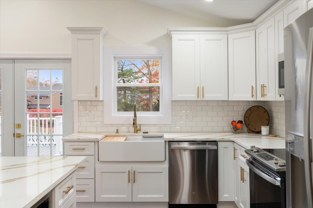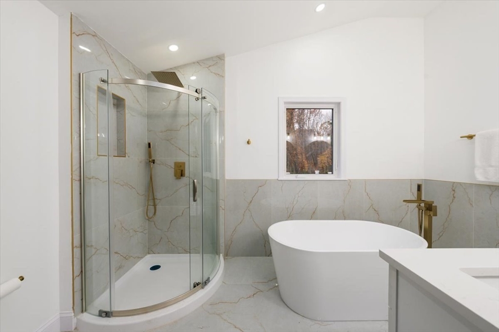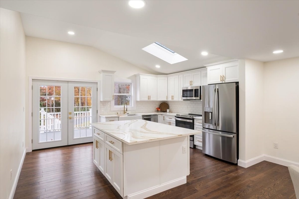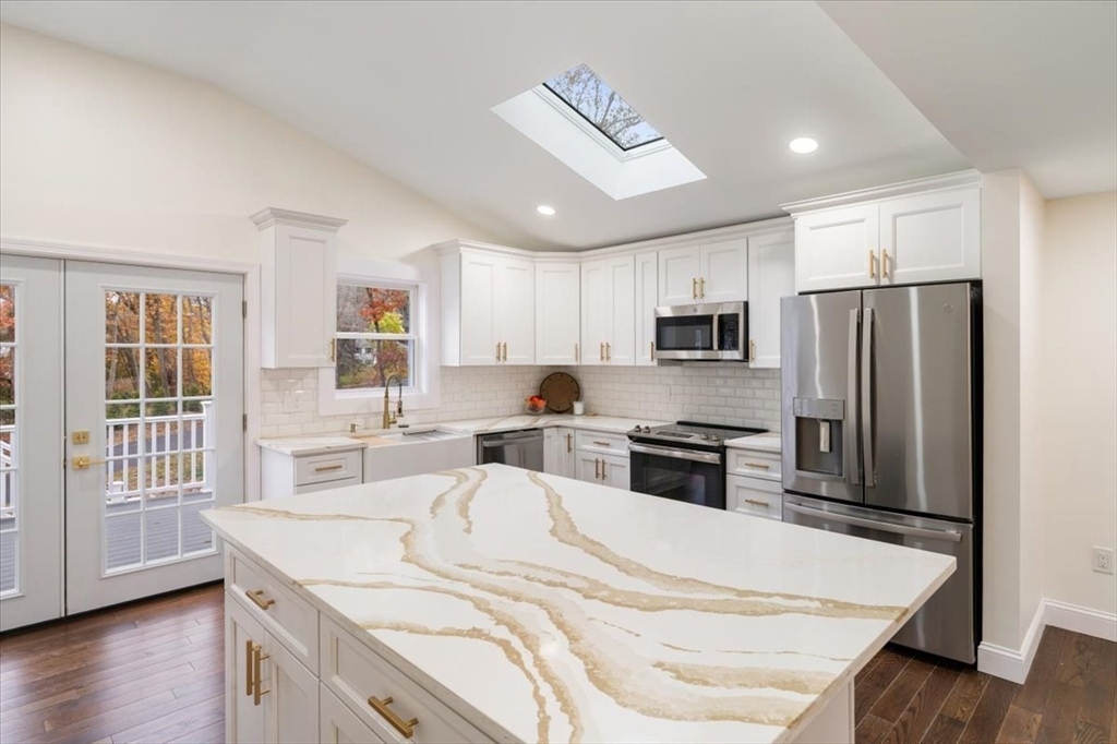 Move-in ready luxury! Modernized and expanded in 2025 with top-level finishes, this stunning 4-bedroom, 3.5-bath home showcases top-level craftsmanship and elegant modern finishes throughout. The bright open layout features a designer kitchen with skylight, quartz island, beverage fridge, and premium appliances, opening seamlessly to the living and dining areas, perfect for entertaining. The lower level offers a big, expansive living room ideal for full entertainment, plus flexible space for guests, work, or recreation. Upstairs, enjoy a spacious primary suite and premier quality new modern baths. Brand-new garage, high-end systems, recessed heat pump, and individual split units in each room ensure year-round comfort and efficiency. The entire home was fully spray foam insulated with energy efficiency in mind. Every detail reflects quality and care. Simply unpack and enjoy this luxurious home at 5 Munroe Way, Billerica.