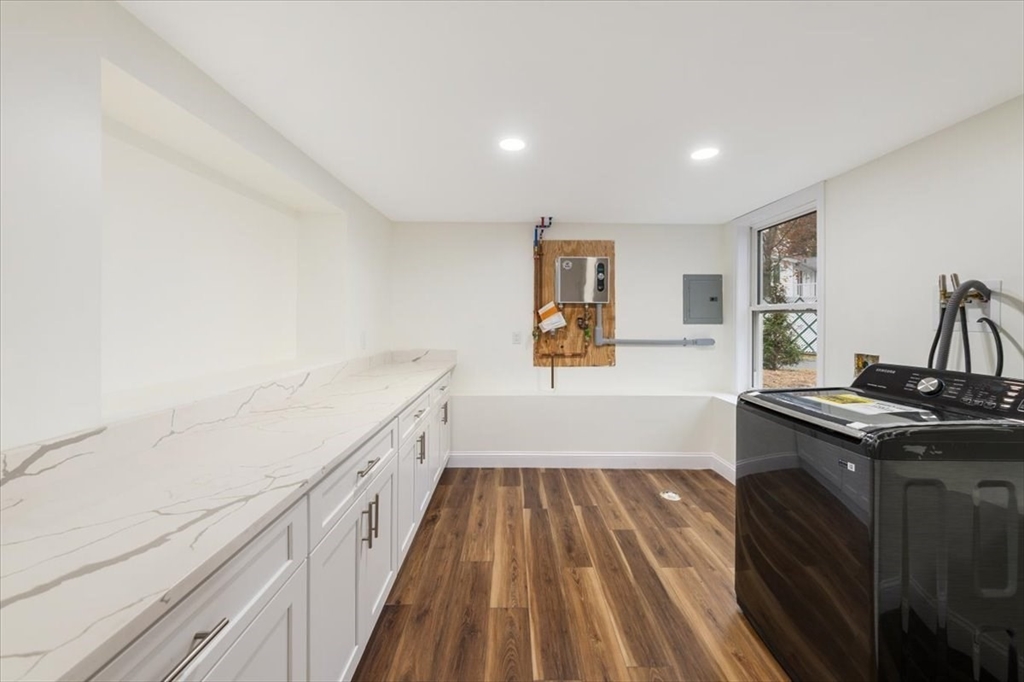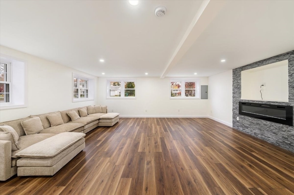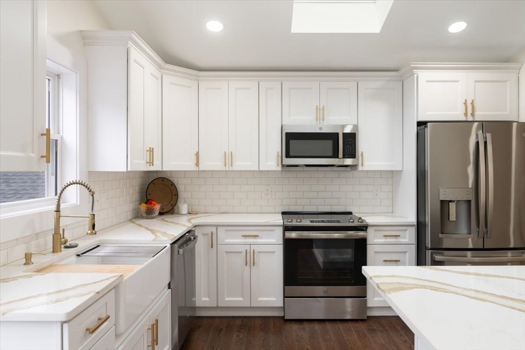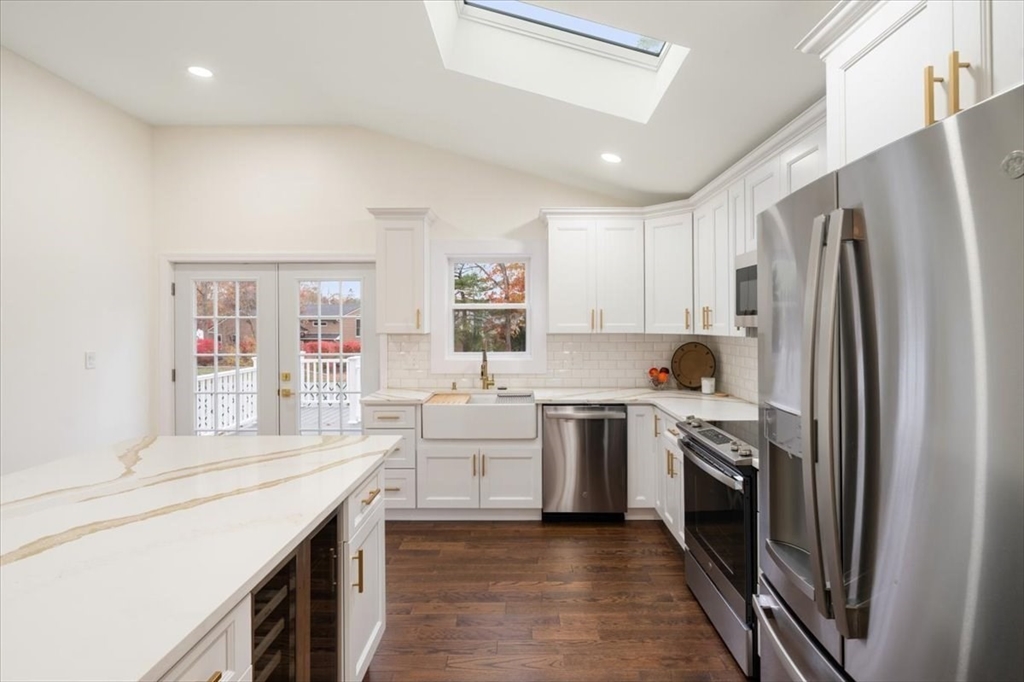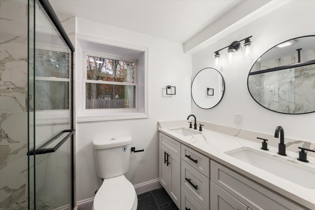 Move-in ready luxury! Modernized and expanded in 2025 with top-level finishes, this stunning 4-bedroom, 3.5-bath home showcases top-level craftsmanship and elegant modern finishes throughout. The bright open layout features a designer kitchen with skylight, quartz island, beverage fridge, and premium appliances, opening seamlessly to the living and dining areas, perfect for entertaining. The lower level offers a big, expansive living room ideal for full entertainment, plus flexible space for guests, work, or recreation. Upstairs, enjoy a spacious primary suite and premier quality new modern baths. Brand-new garage, high-end systems, recessed heat pump, and individual split units in each room ensure year-round comfort and efficiency. The entire home was fully spray foam insulated with energy efficiency in mind. Every detail reflects quality and care. Simply unpack and enjoy this luxurious home at 5 Munroe Way, Billerica.