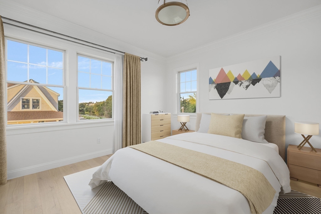 Starting at $1.649M, The Hutchinson at Aquidneck Village delivers refined coastal living just off Willow Lane in Portsmouth—directly across from the prestigious Aquidneck Club, steps from Narragansett Bay, minutes to Newport, and only 10 minutes from the Massachusetts line. Vacation and live year-round in the same home, surrounded by the best of coastal Rhode Island. Built by Harbor Construction, with interiors by Alex Interiors, this 3-bed, 3-bath home offers 2,970 sq. ft., with an optional 770 sq. ft. finished lower level. Timeless New England architecture meets modern coastal luxury with French white oak floors, Thermador appliances, Metropolitan cabinetry, and custom casework. Soaring 9-ft ceilings, 80-inch glass sliders, and a gas fireplace create a bright, elegant main living space. Optional upgrades include a private elevator and custom wet bar. A fenced yard and lush landscaping complete this serene outdoor retreat. Interior digitally rendered and staged.