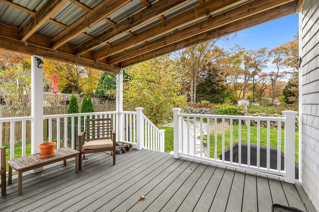 This beautifully transformed sun-filled 3 bed Cape features thoughtful improvements throughout! Newer open kitchen/dining room and bath are renovated to today's Buyers' tastes with updated cabinetry, granite counters and stainless appliances. There are warm oak floors on both levels and and peace of mind with major mechanicals also replaced. The bright, open interior flows effortlessly to the lovely outdoor spaces-a fenced yard backed by stone wall, a composite covered deck off kitchen, perennial plantings, mature trees and raised garden beds. This charming property seamlessly blends modern comfort and character and is minutes from major highways for commuting to Aquidneck Island, Bristol, Providence and beyond with numerous local amenities within walking distance.
