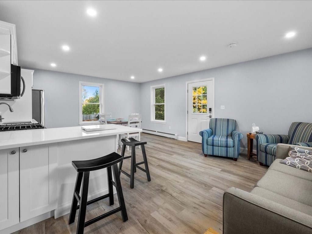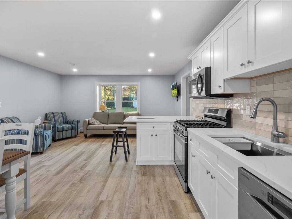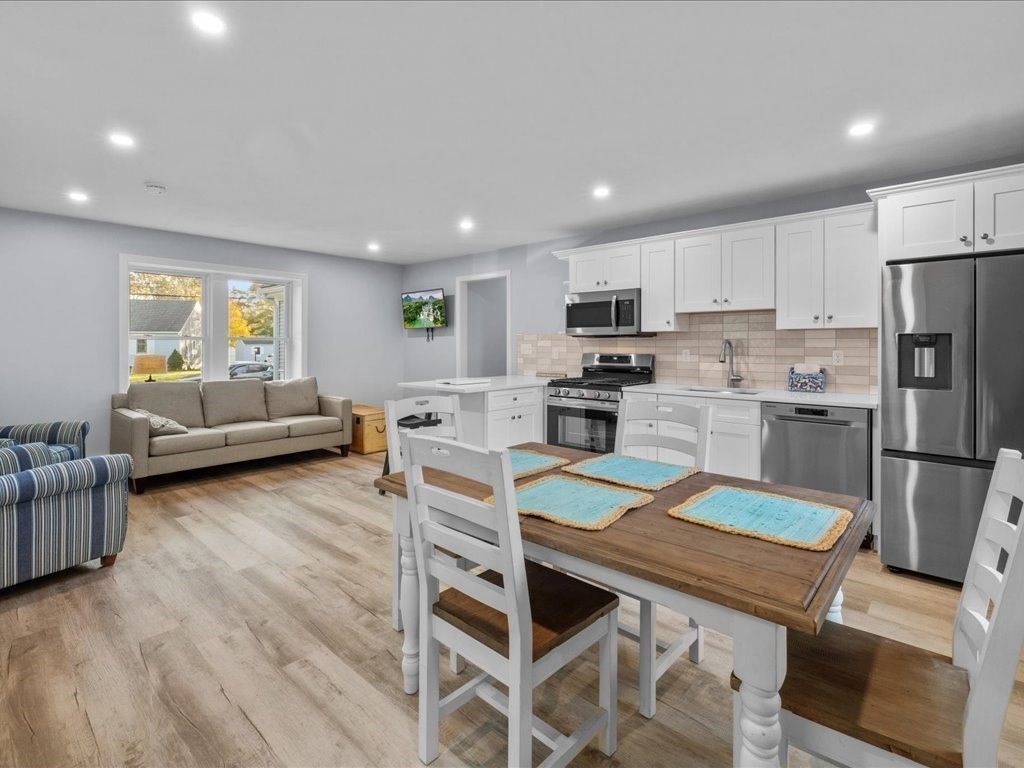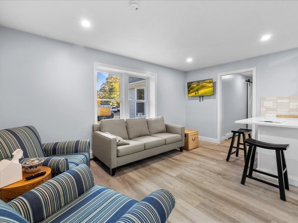 Introducing this gorgeous, newer cape just 2 miles from Mashpee Commons & tucked away serenely just one short block from fully recreational John's Pond - with private beach steps away! Though offering that relaxing "vacation" feel, this is not just a beach house w/some water views. Enjoy year-round livabiilty & versatility for a variety of family needs..with a first floor bedroom and IN-LAW option. The house can function as a 4 bed, 2 bath home, or it can instead be split into a 3bed 1 bath main house plus a separate 1 bed/1 bath unit ...including its own entrance, laundry, sunroom/office, and brand new kitchen/family room! The entire house feels open, inviting, light & bright w/numerous windows, updated kitchens and baths, and a full basement with add'l potential and lots of storage. If you want something that feels newer, sits in a fabulous location, that promises an amazing summer experience, and that also provides for both current and future family needs...please come see!