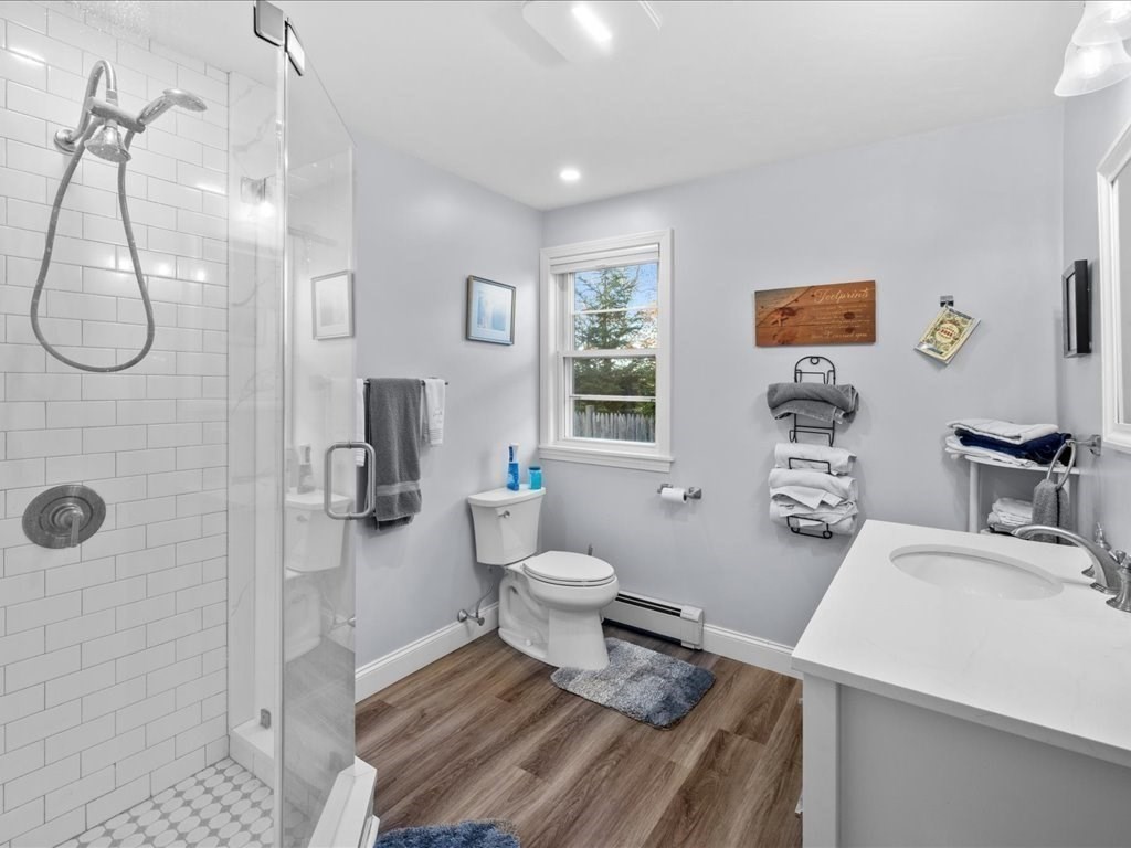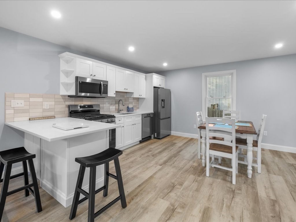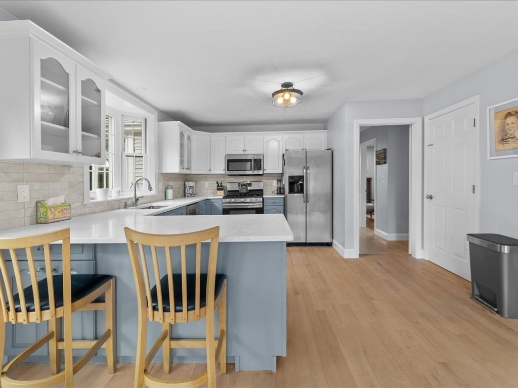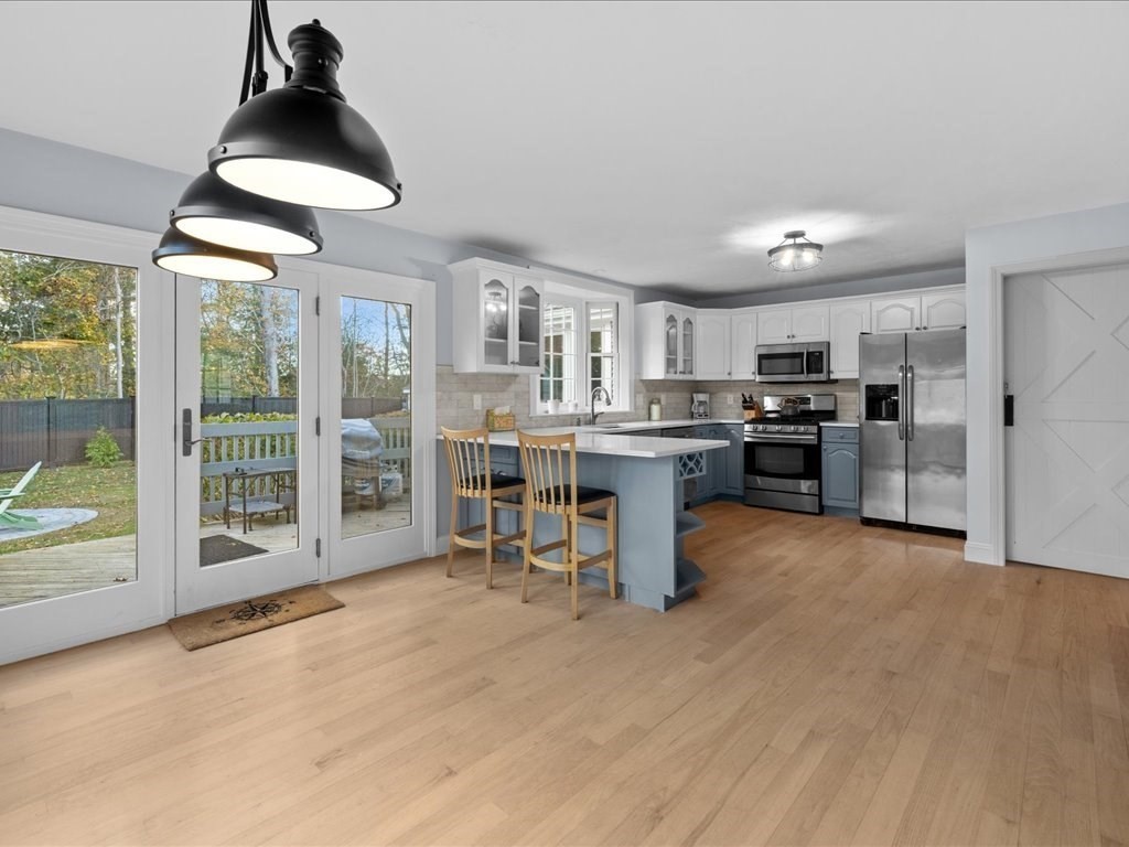 Introducing this gorgeous, newer cape just 2 miles from Mashpee Commons & tucked away serenely just one short block from fully recreational John's Pond - with private beach steps away! Though offering that relaxing "vacation" feel, this is not just a beach house w/some water views. Enjoy year-round livabiilty & versatility for a variety of family needs..with a first floor bedroom and IN-LAW option. The house can function as a 4 bed, 2 bath home, or it can instead be split into a 3bed 1 bath main house plus a separate 1 bed/1 bath unit ...including its own entrance, laundry, sunroom/office, and brand new kitchen/family room! The entire house feels open, inviting, light & bright w/numerous windows, updated kitchens and baths, and a full basement with add'l potential and lots of storage. If you want something that feels newer, sits in a fabulous location, that promises an amazing summer experience, and that also provides for both current and future family needs...please come see!