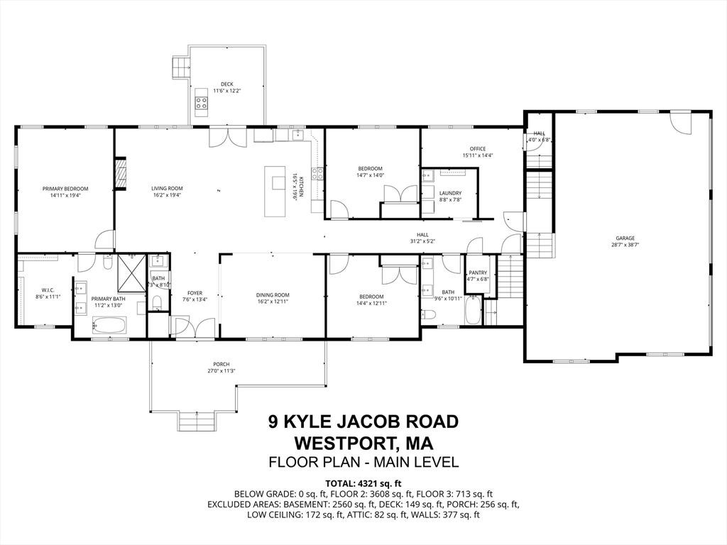 Nestled in beautiful Westport, MA, this stunning executive ranch presents an exceptional opportunity to own a modern, spacious home, filled with high end finishes and amenities. Built in 2017, it offers contemporary living with a wealth of space and desirable features including three bedrooms, two and a half bathrooms, laundry room, bonus room, and a thoughtfully designed open concept living space that features a stunning chef's kitchen, living room with fireplace, and expansive dining area. It's the perfect home to accommodate everyday living and entertaining guests. The convenience of a heated three car garage ensures ample room for vehicles and storage, adding to the practicality of this impressive home. The large wooded yard offers a sense of privacy and space to enjoy the outdoors, providing a tranquil setting for relaxation or recreation. This is truly the home you've been waiting for!