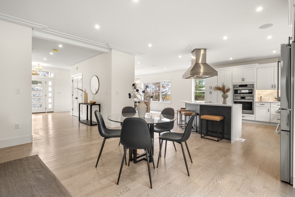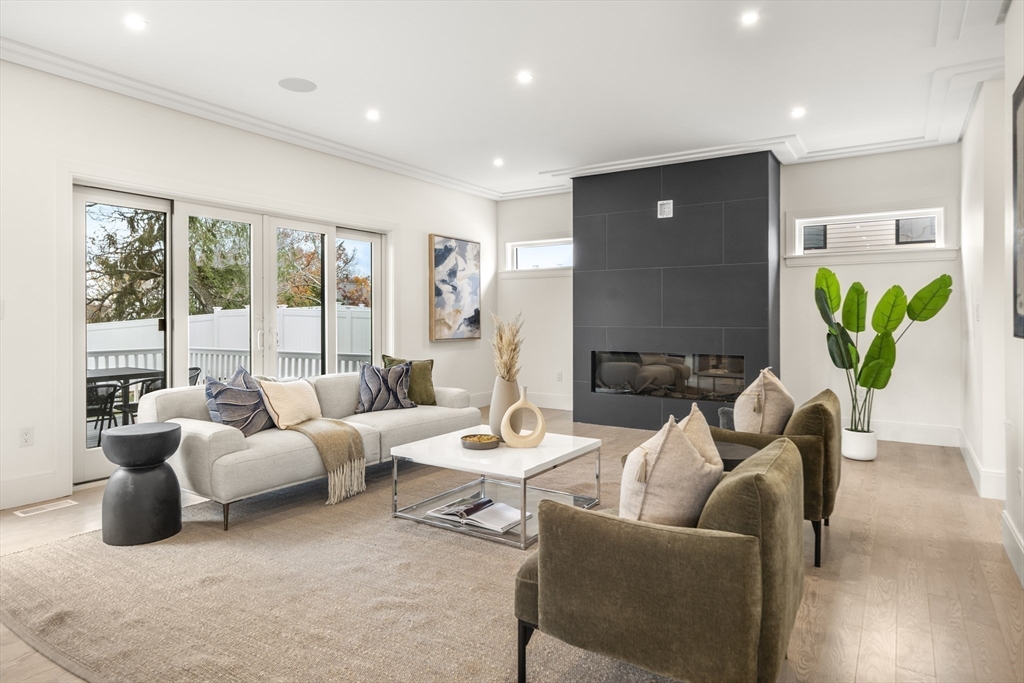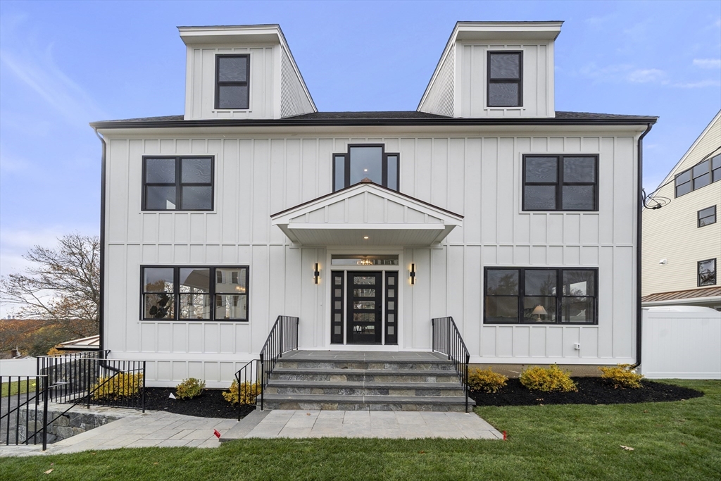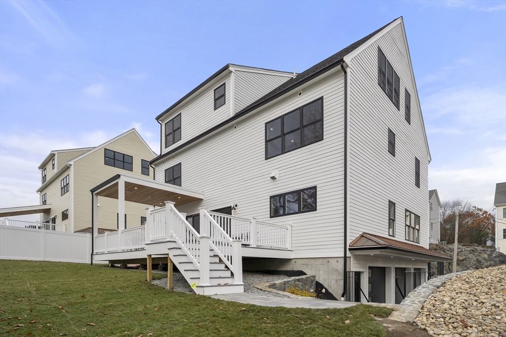 EXCEPTIONAL NEW CONSTRUCTION - 5BR - 4.5BA - COLONIAL. Styled in a modern palette, this house makes a statement in all the right ways. Gorgeous tree top view overlooking Melrose all the way to the Boston skyline! Welcome home to premium craftsmanship, high efficiency systems, and upgrades throughout. 400 AMP electric service. Wired for E-car charging inside your 3 bay - epoxy coat finished - garage. Ceiling mounted - indoor/outdoor - 14 speaker - 7 zone sound system. Custom built wet-bar w/ built in beverage center. Custom stair rails through 4 finished levels. RADIANT HEAT FLOORING in the primary BA. Dual walk-in closets for the primary suite. 2nd floor laundry w/ sink. Spacious eat-in kitchen. Double Anderson sliders. Huge covered deck complete with overhead lighting and speakers. 3rd floor living suite w/ full bath, bedroom, study and great room. HOME OFFICE. HOME GYM. This is a special location and rare opportunity. Schedule your private tour today.
