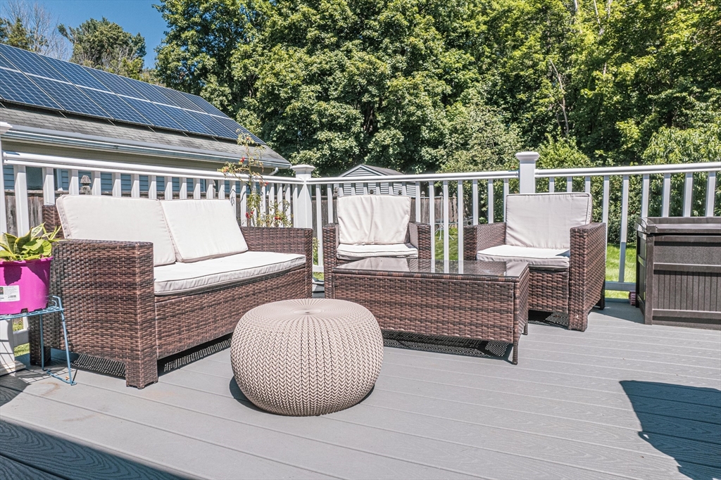 PRIME SOUTH MAIN STREET ANDOVER LOCATION! This beautiful 3-bedroom, 2.5-bath ranch combines charm, comfort, and convenience in a highly desirable setting. The open-concept living, dining, and kitchen areas feature gleaming hardwood floors and a cozy fireplace, ideal for everyday living and entertaining. The updated kitchen impresses with quartz countertops, stainless steel appliances, custom cabinetry, and direct access to a newer deck overlooking a private backyard. The partially finished lower level adds valuable living space with a family room, office, full bath, laundry area, ample storage, and walkout access to a 1-car garage. Recent updates include a new roof, furnace, windows, and central air, making this home truly move-in ready. Just minutes from Routes 125 & 93, shops, and Andover’s vibrant downtown. DON’T MISS THIS OPPORTUNITY TO MAKE THIS LOVELY HOME YOURS!